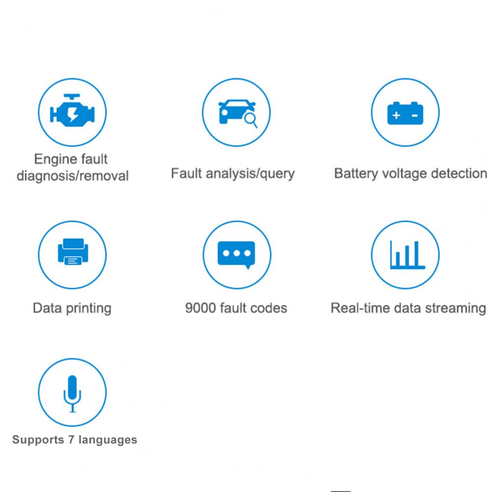 It is the diagnostic scanner that is a tool for check engine, it includes read vehicle information, read, clear fault code information, read data stream information, data stream playback function, view/delete fault code, data stream, USB printing function.