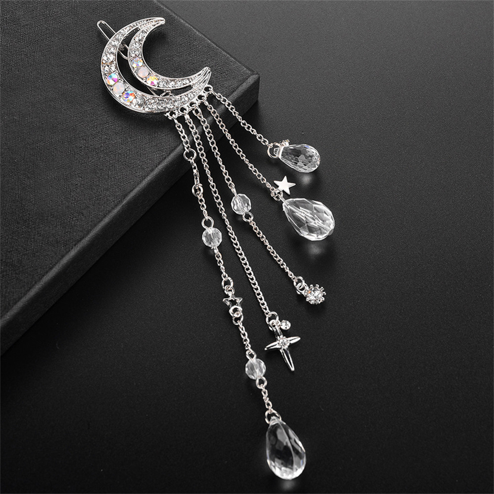 Особенности: Форма Луны, инкрустированные стразы, Висячие бусины с кисточками, аксессуар для волос
