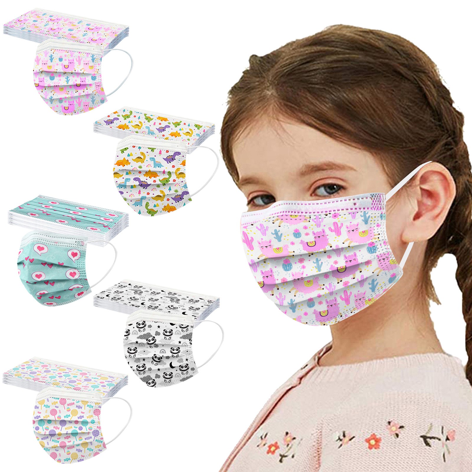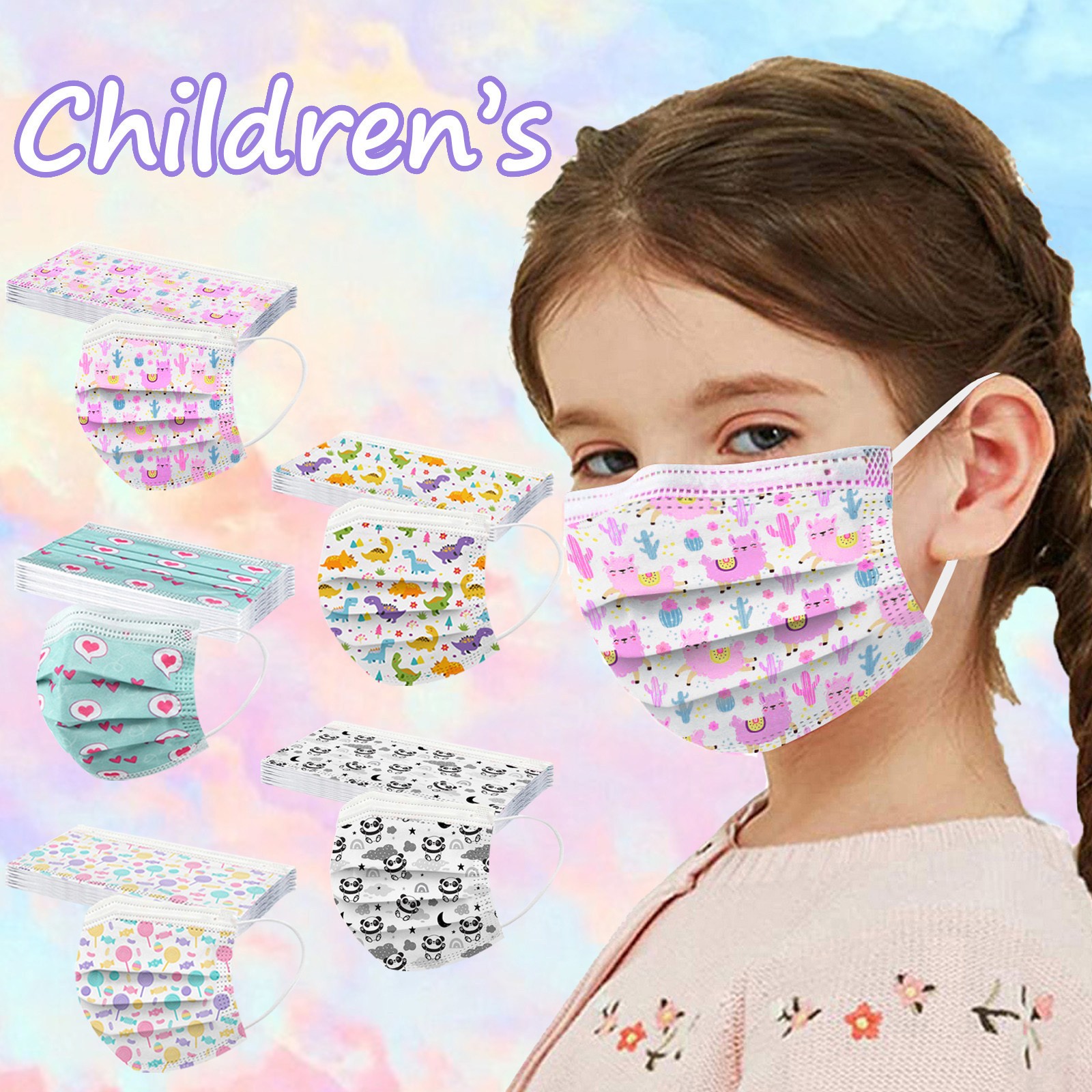 50PC Kids Children's Mask Disposable Face Mask Industrial 3Ply Ear Loop Mask