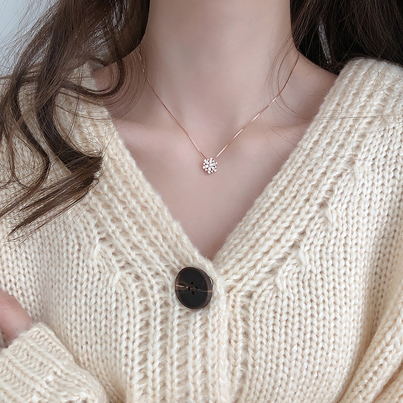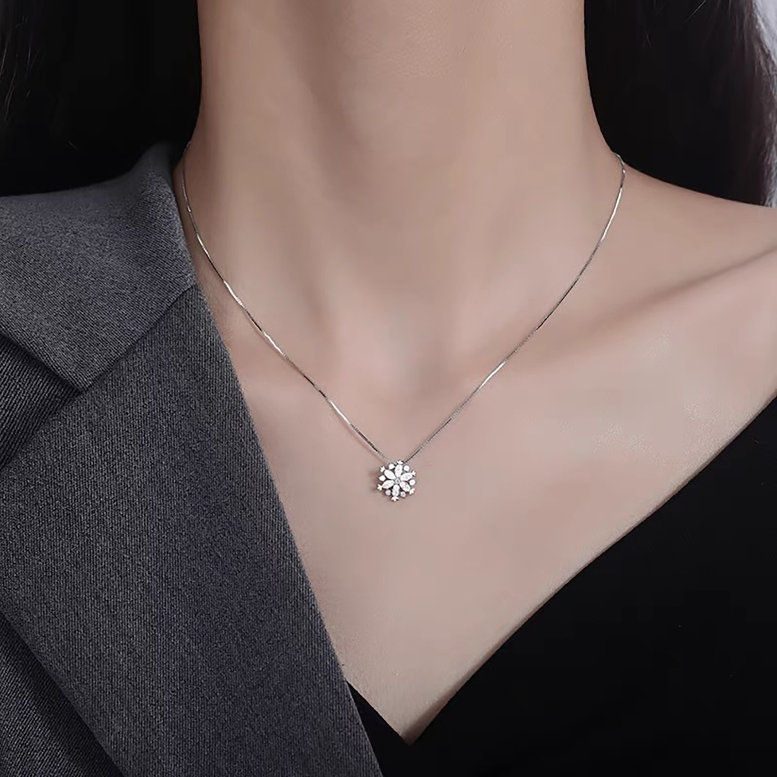 Снежинка Кулон ожерелье ключицы цепь ювелирные изделия Снежинка Кулон