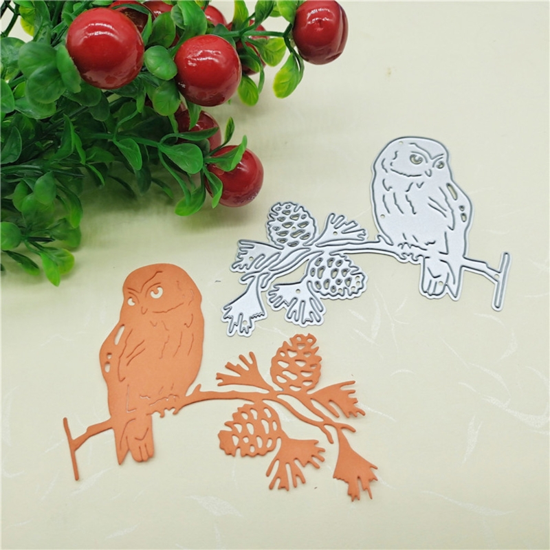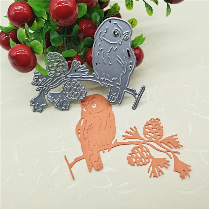 F1CC Сова на ветках Листья 3D тиснение металла резки штампы трафарет для скрапбукинга "сделай сам" Альбом бумаги шаблон открытки