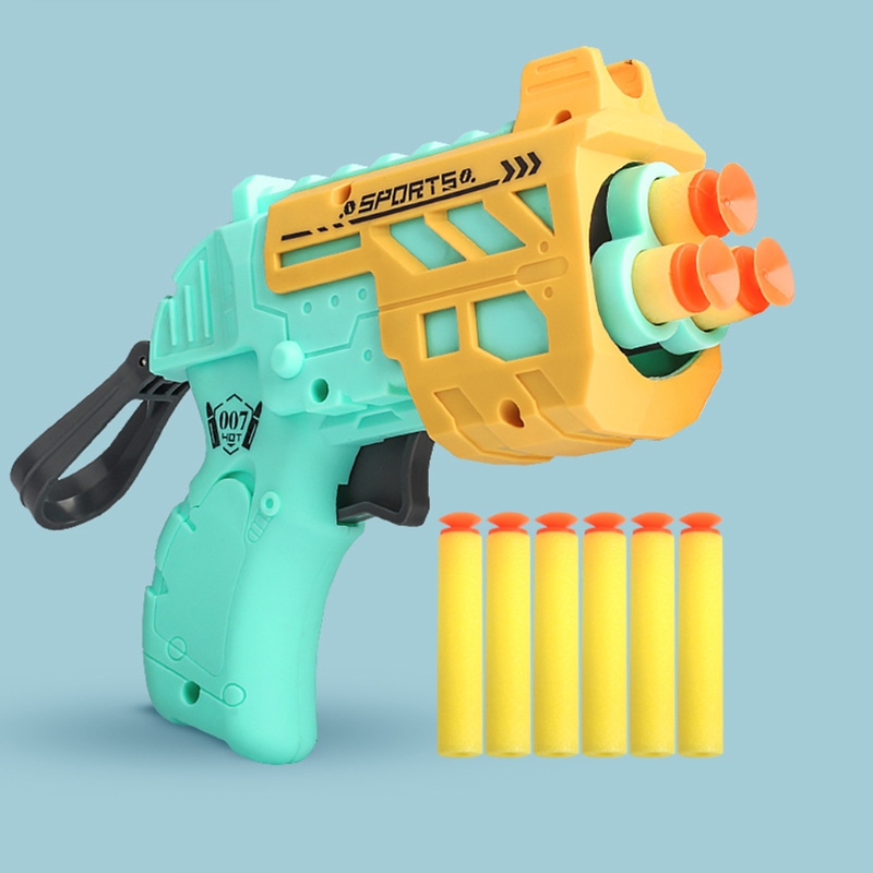 Дизайн с питанием от воздуха: дизайн аэродинамики делает игрушку реалистичной, нажимает на спусковой механизм, чтобы питаться от воздуха и бластеров пули EVA, не требуется батарея для пистолетов, ручная Вращающаяся головка, легко управлять с большим притяжением внимания ребенка и наслаждаться игровым временем.