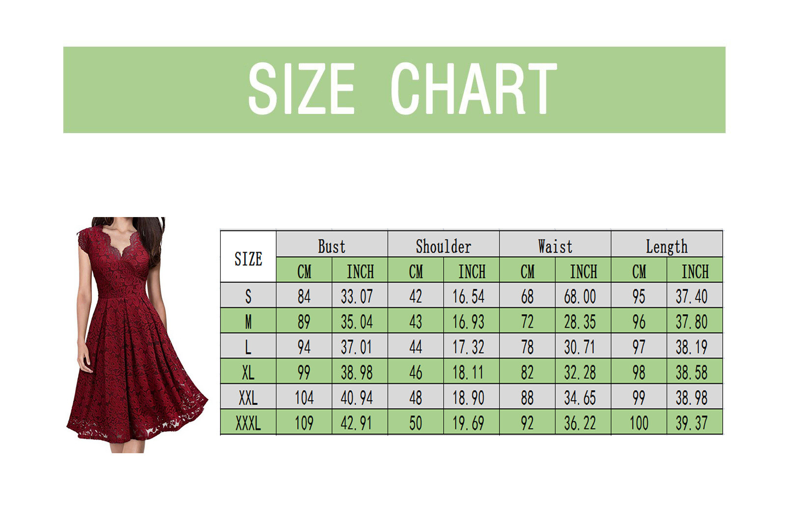 Что вы получаете: 1 шт. женское платьеРазмеры Бюст Плечо Талия Длина S 84 см/33,07'' 42 см/16,54'' 68 см/26,77'' 95 см/37,40'' М 89 см/35,04'' 43 см/16,93'' 72 см/28,35'' 96 см/37,80'' L 94 см/37,01'' 44 см/17,32'' 78 см/30,71'' 97 см/38,19'' XL 99 см/38,98'' 46 см/18,11'' 82 см/32,28'' 98 см/38,58'' XXL 104 см/40,94'' 48 см/18,90'' 87 см/34,25'' 99 см/38,98'' XХХL 109 см/42,91'' 50 см/19,69'' 92 см/36,22'' 100 см/39,37''