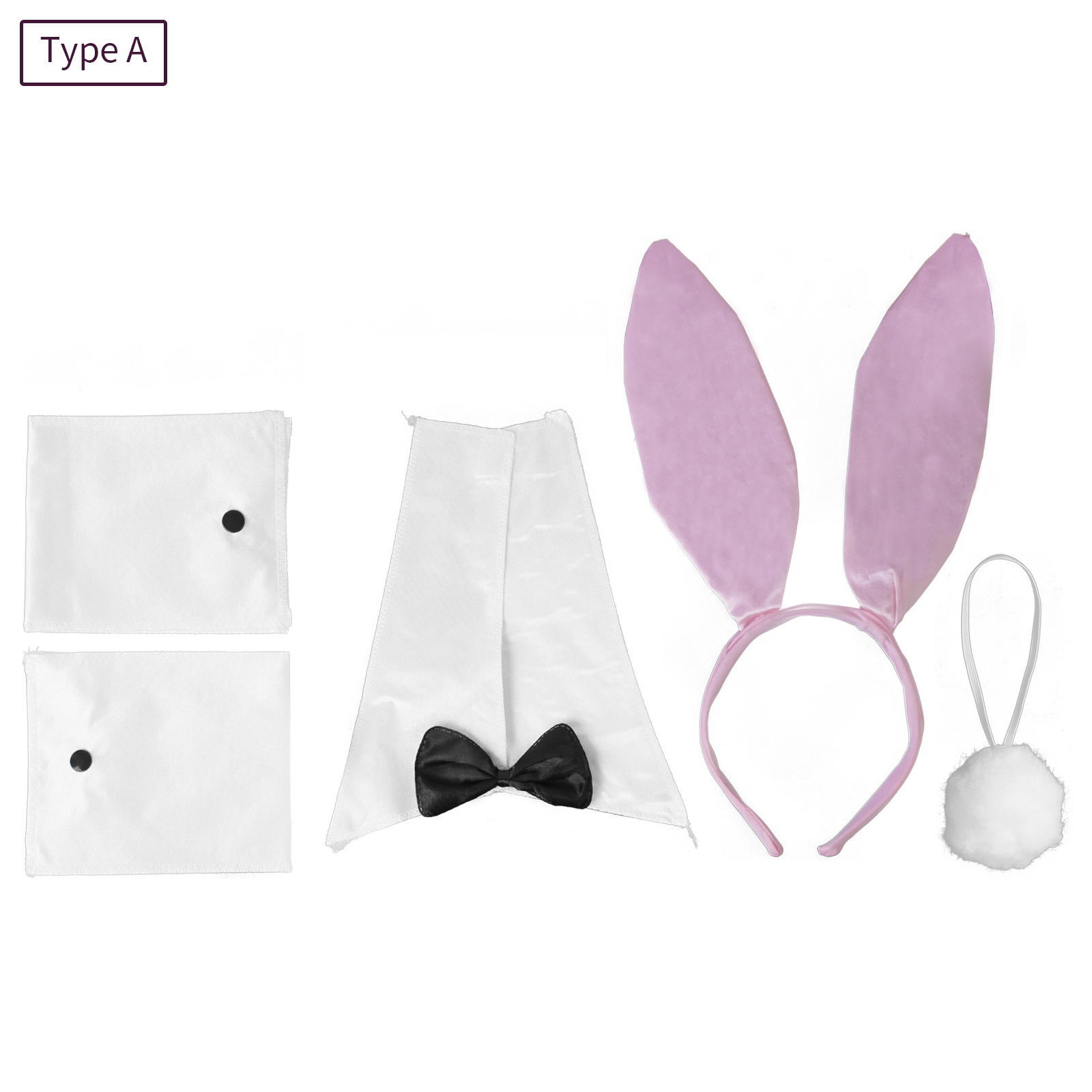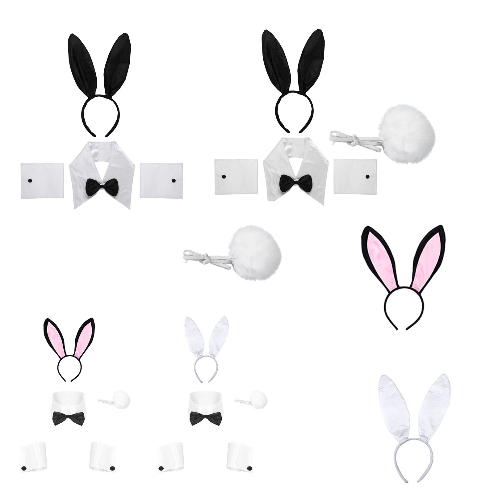Женский аксессуар с кроликом, набор ободок с кроличьими ушками, воротник, галстук-бабочка, костюм с манжетами и кроличьим хвостом на Хэллоуин, Рождественский костюм, вечерние костюмы для косплея.