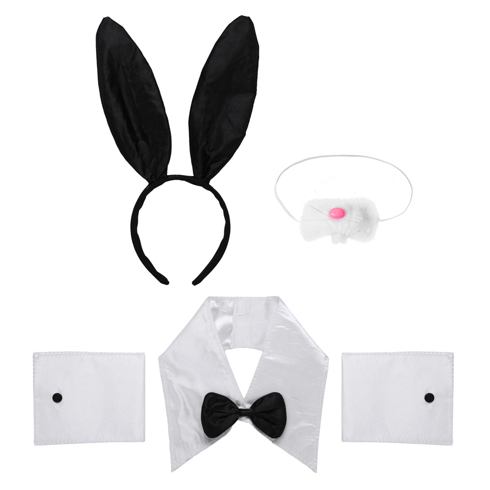 Женский аксессуар с кроликом, набор ободок с кроличьими ушками, воротник, галстук-бабочка, костюм с манжетами и кроличьим хвостом для Хэллоуина, Рождественский костюм, вечерние костюмы для косплея