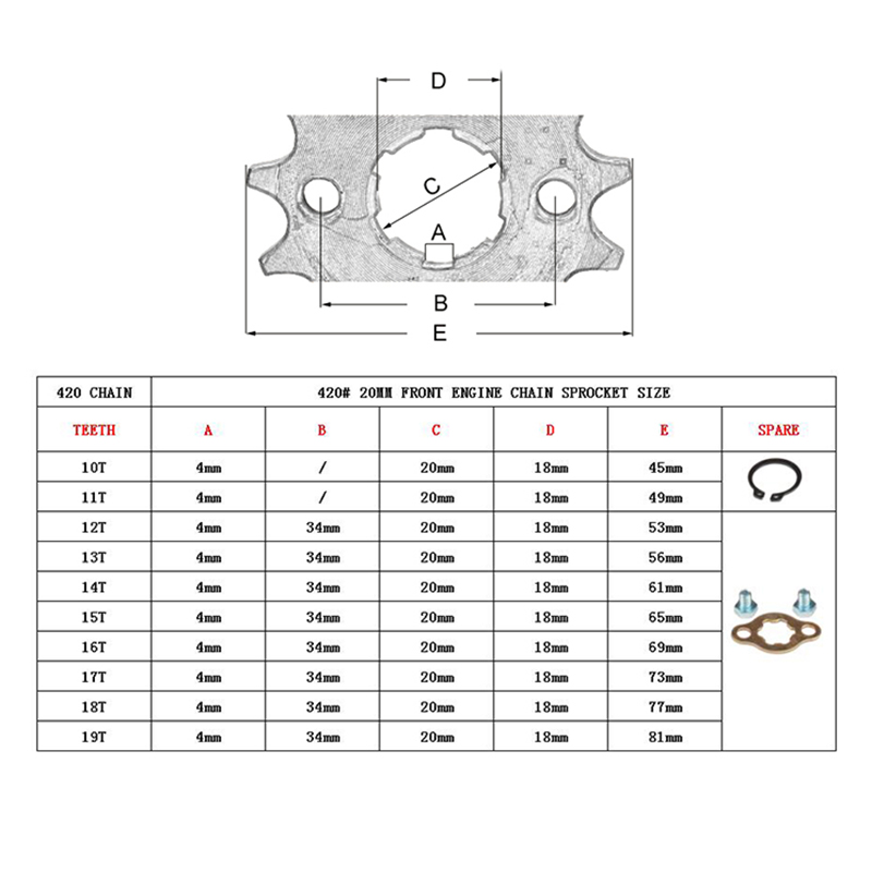 Передняя Звездочка с 10 по 19 зубьев-подходит для цепи 420 или 420H