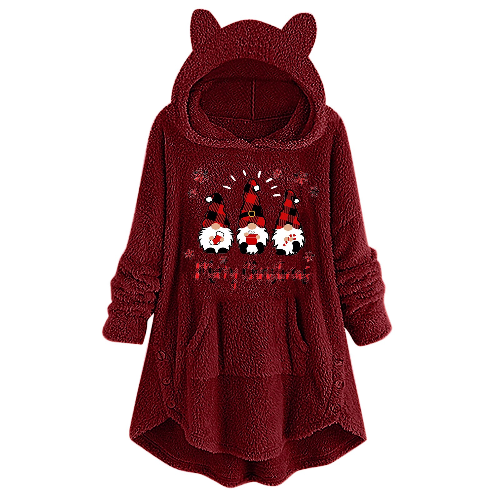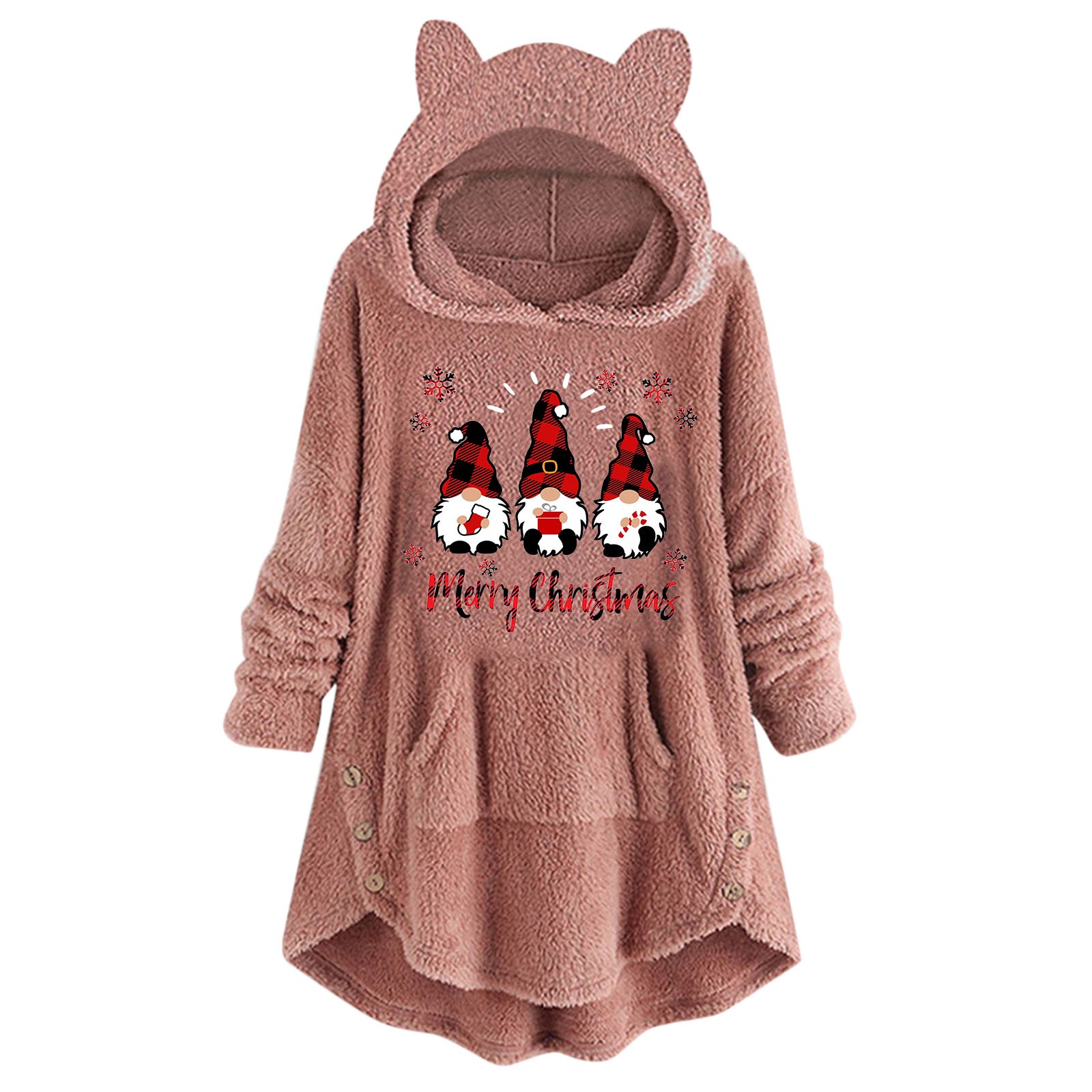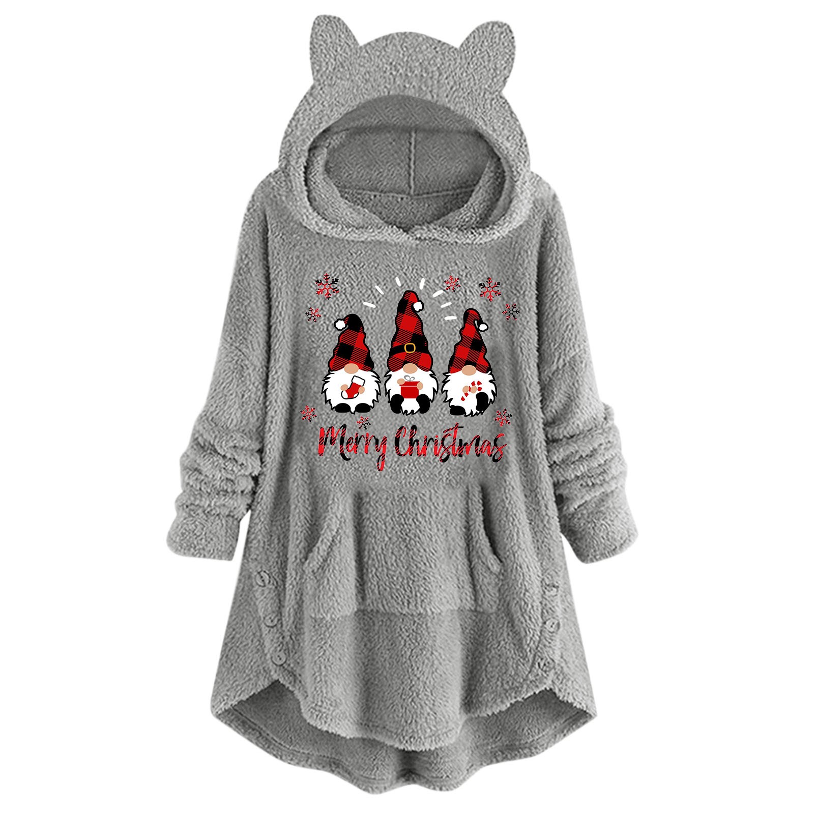 Милые Рождественские толстовки с принтом гнома, женские пуловеры с капюшоном в виде кота, зимние теплые флисовые Свободные толстовки с карманом