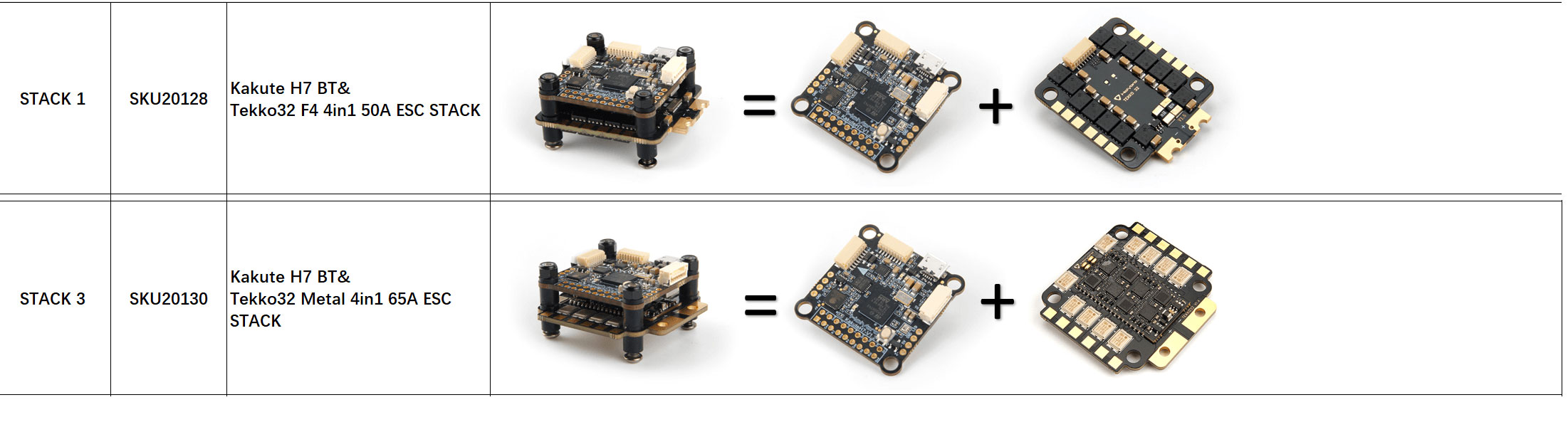 SKU20128 Kakute H7 BT & Tekko32 F4 4in1 50A ESC стек