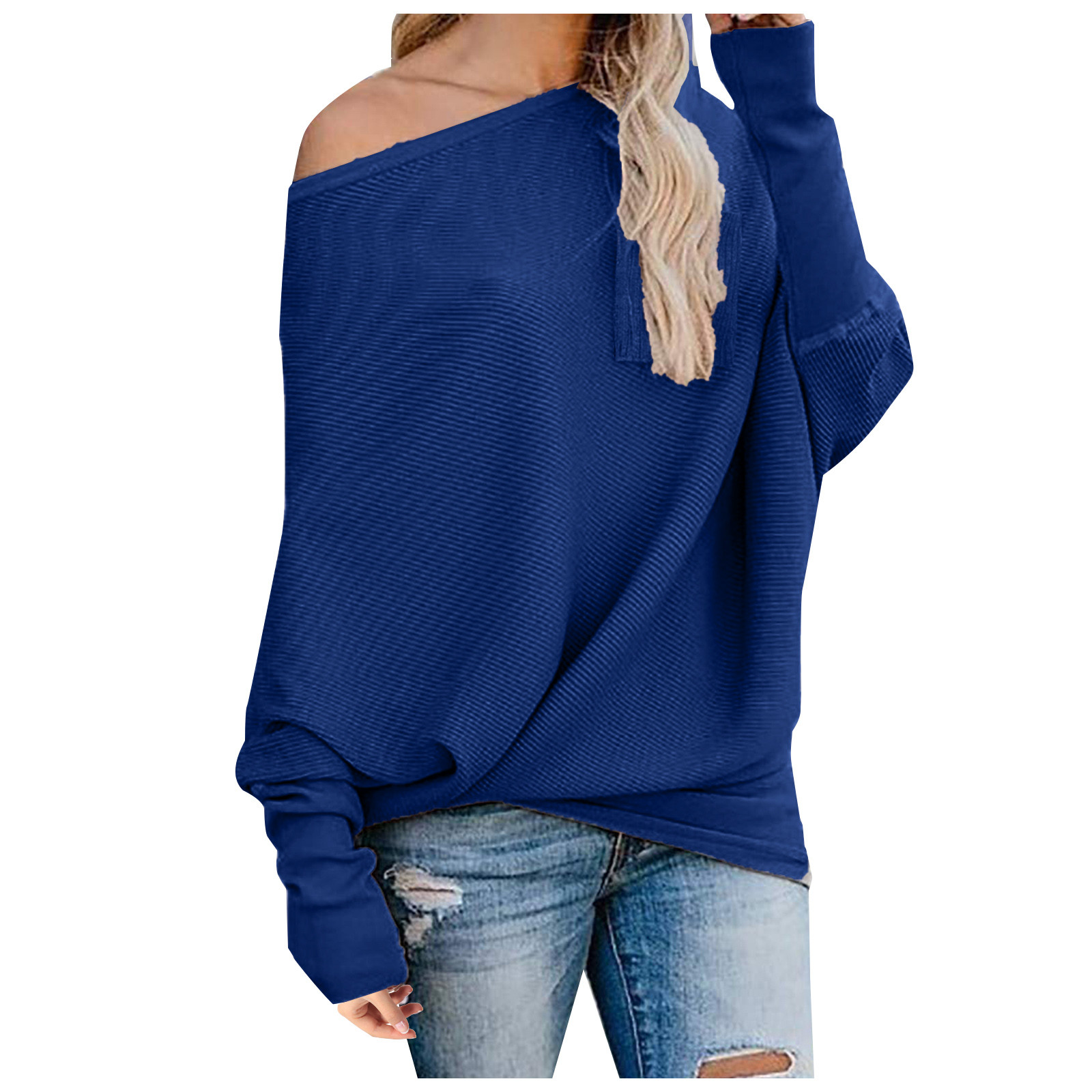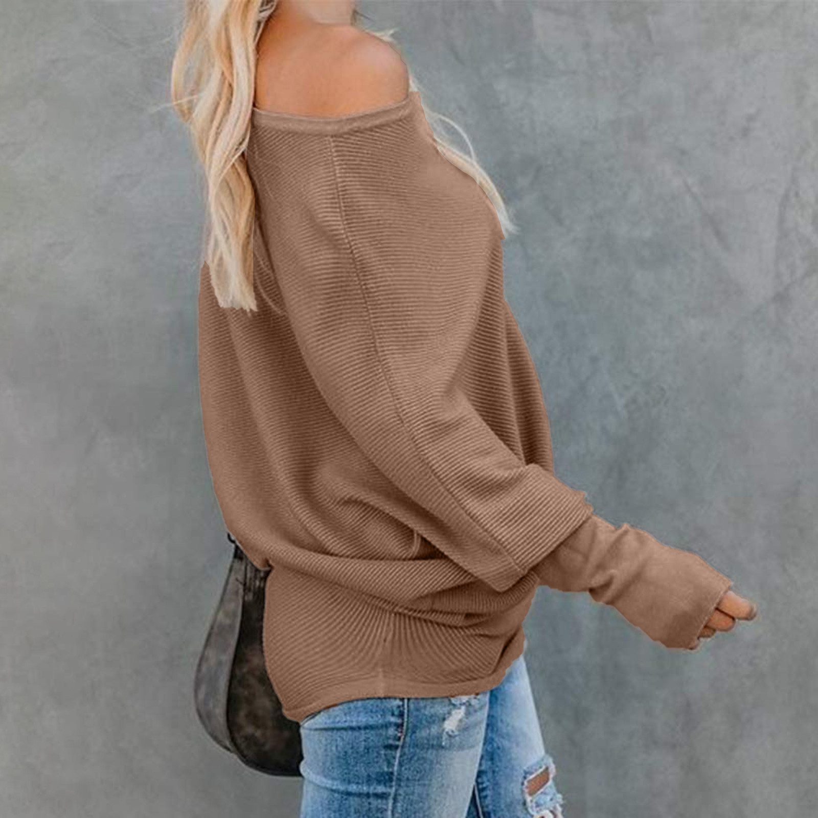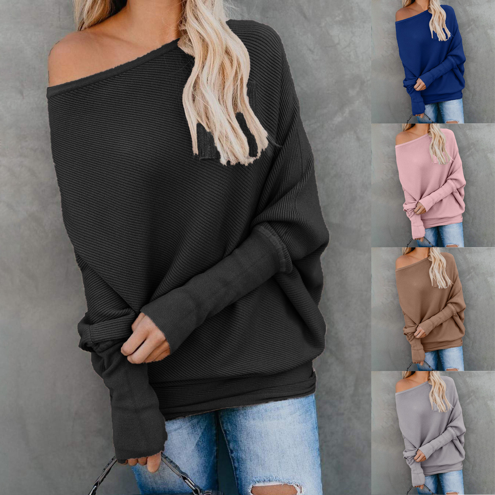 Женская Повседневная модная свободная однотонная Сексуальная прострочка на одно плечо
