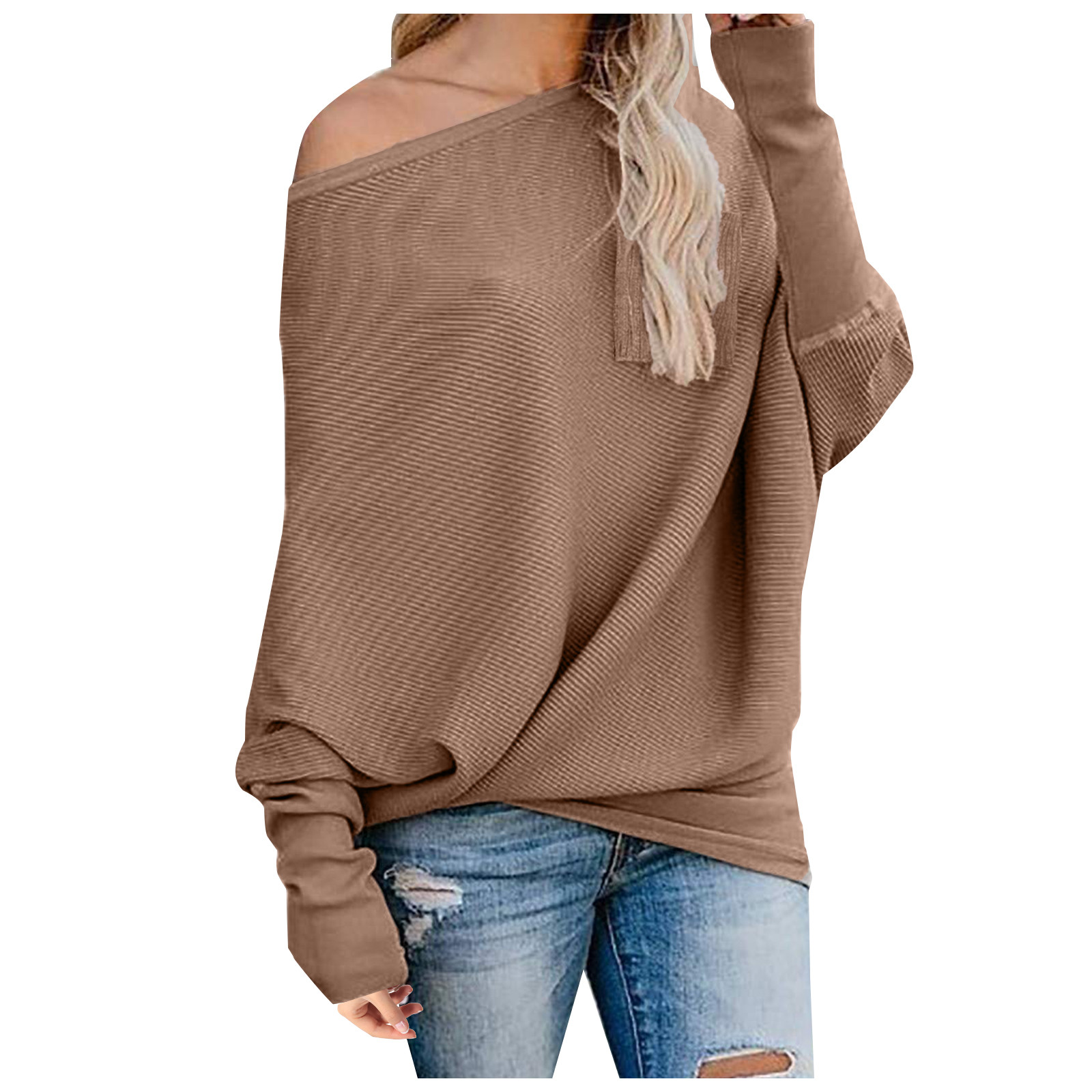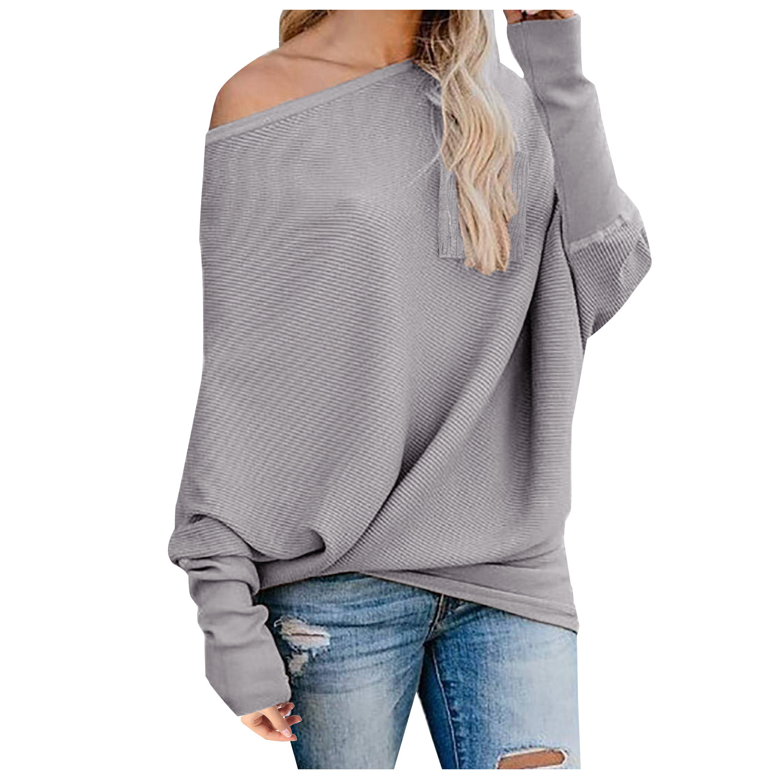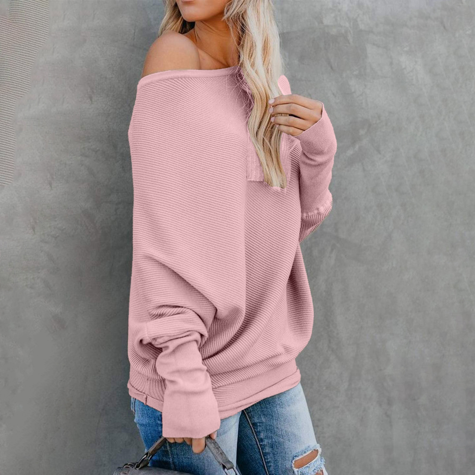 Женская Повседневная модная свободная однотонная Сексуальная прострочка на одно плечо