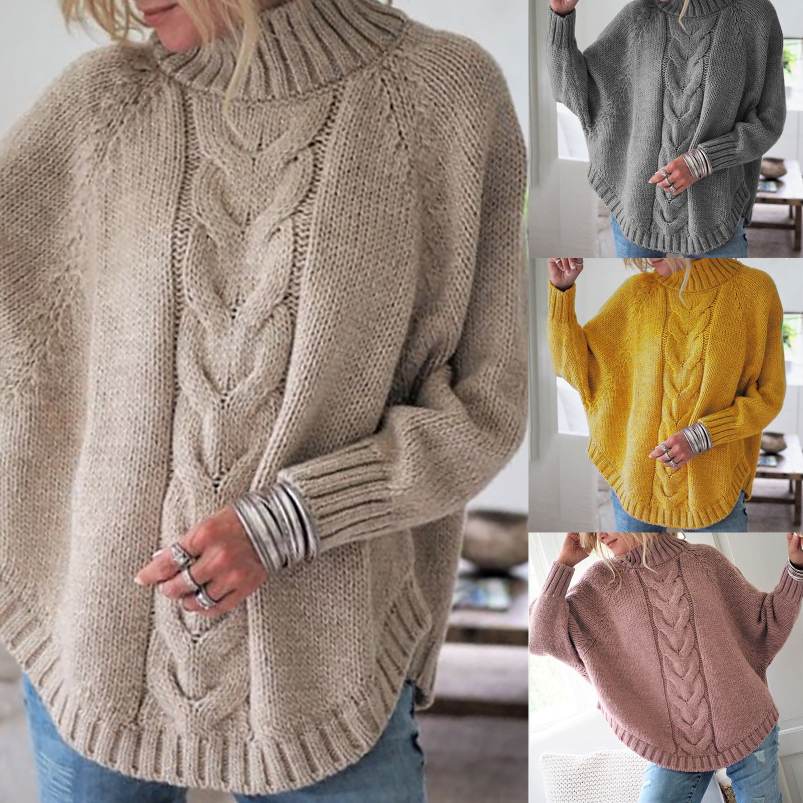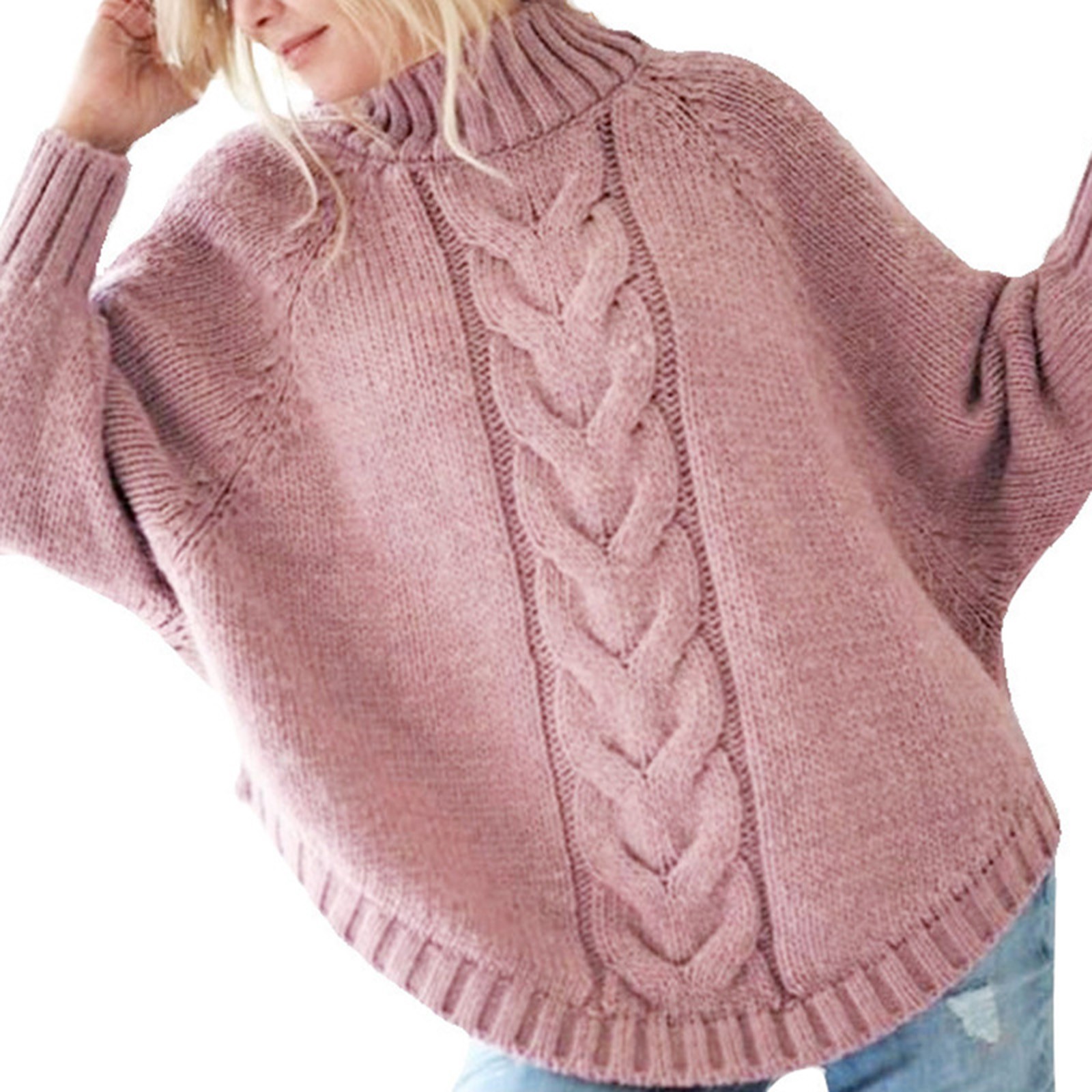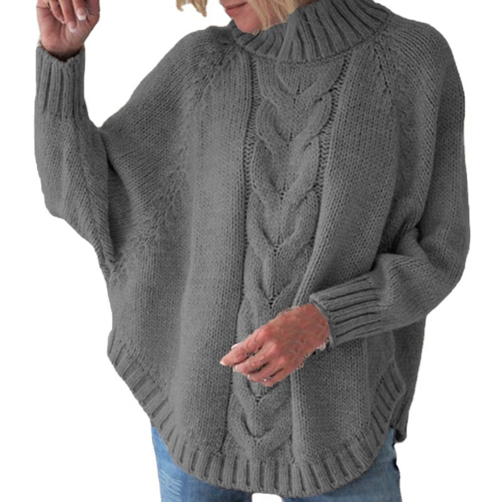 Женский Однотонный свитер с длинным рукавом и круглым вырезом, рукав «летучая мышь», вязаный свитер размера плюс