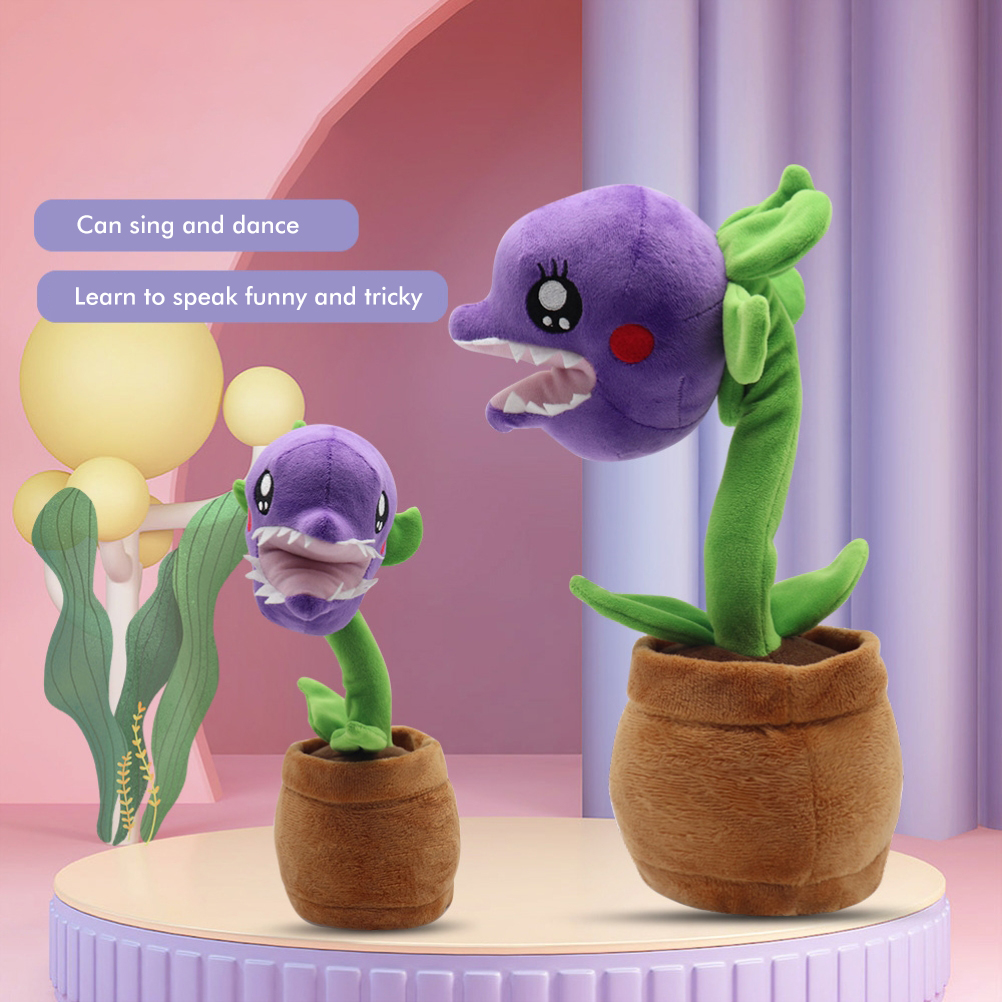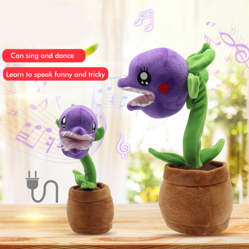 Электрическая плюшевая игрушка в виде гриба с красочными светодиодными лампами, может спеть танцевальная запись, научиться говорить, плюшевая кукла пираньи, детский подарок на Рождество, день рождения