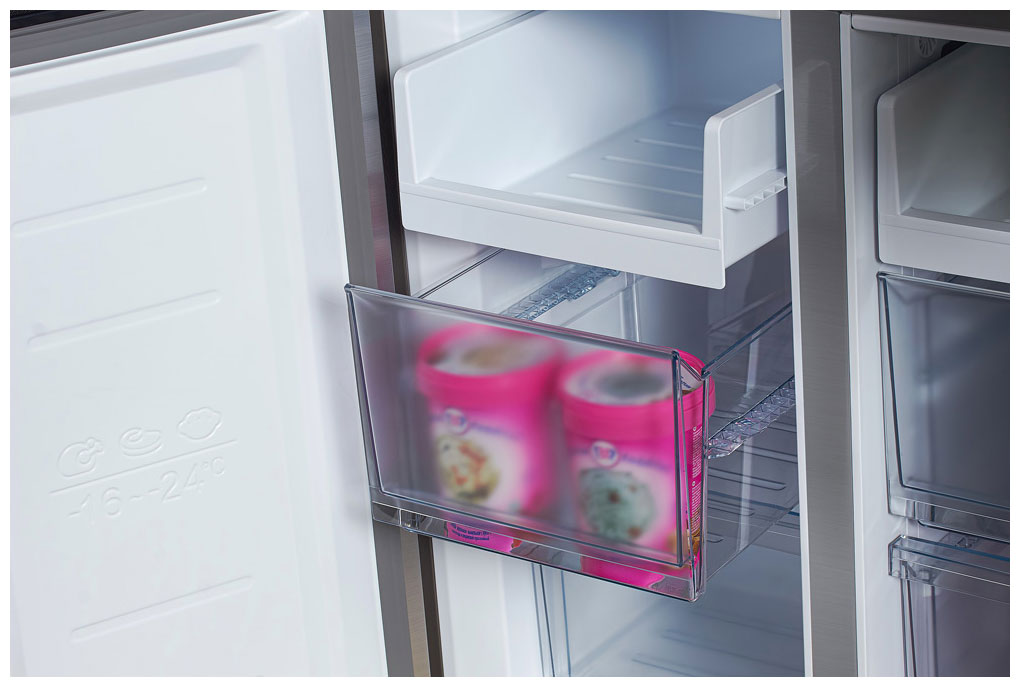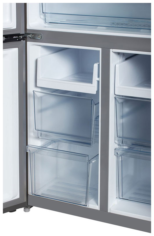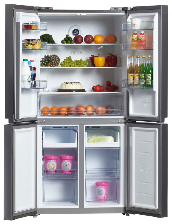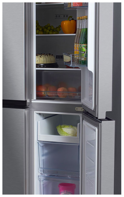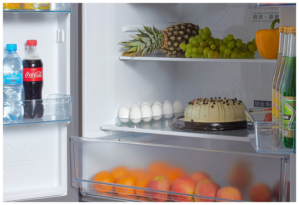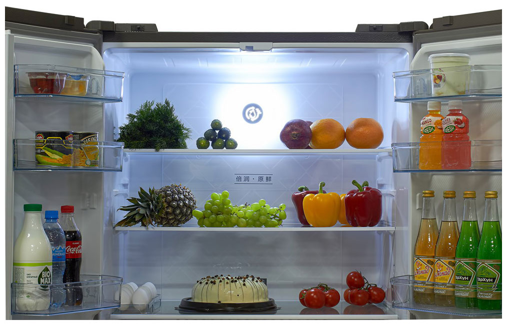 Благодаря максимальному открытию дверей обеспечивается полный доступ ко всему объема холодильного отделения удобно доставать или размещать кастрюли и блюда с приготовленной пищей.