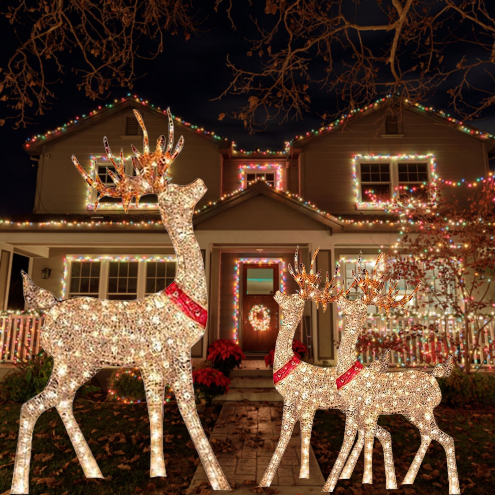 🔥[Применимые случаи]: Используйте эти красивые светящиеся рождественские украшения оленя, чтобы добавить блеск на лужайку-с стоячим оленем.