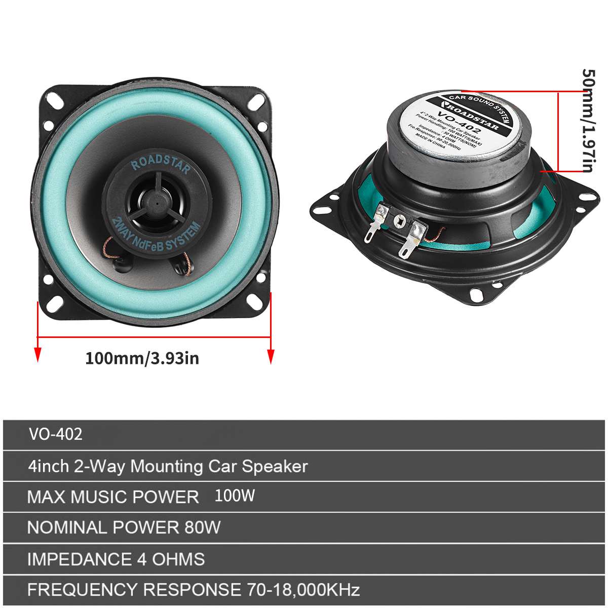 VO-402 4-дюймовый 2-дюймовый автомобильный путь, Hi-Fi, концентрации громкоговоритель 100 Вт 4 Ом автомобиля Универсальный двери громкоговоритель Авто Радио стерео аудио музыкальный громкоговоритель