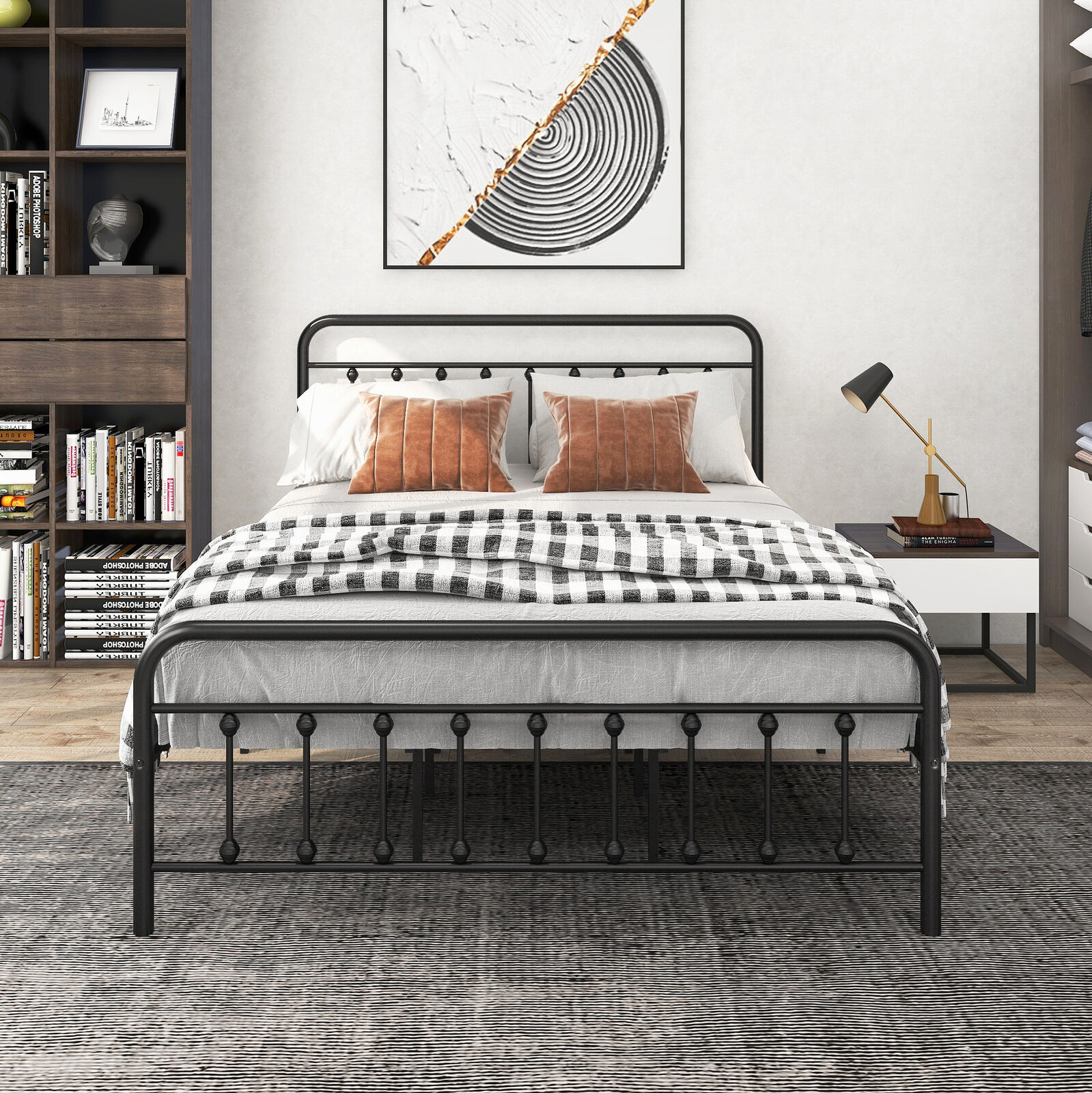 60,02 "кровать королевского размера классическая металлическая платформа для кровати с винтажным изголовьем и подножкой, бесшумная мебель для спальни