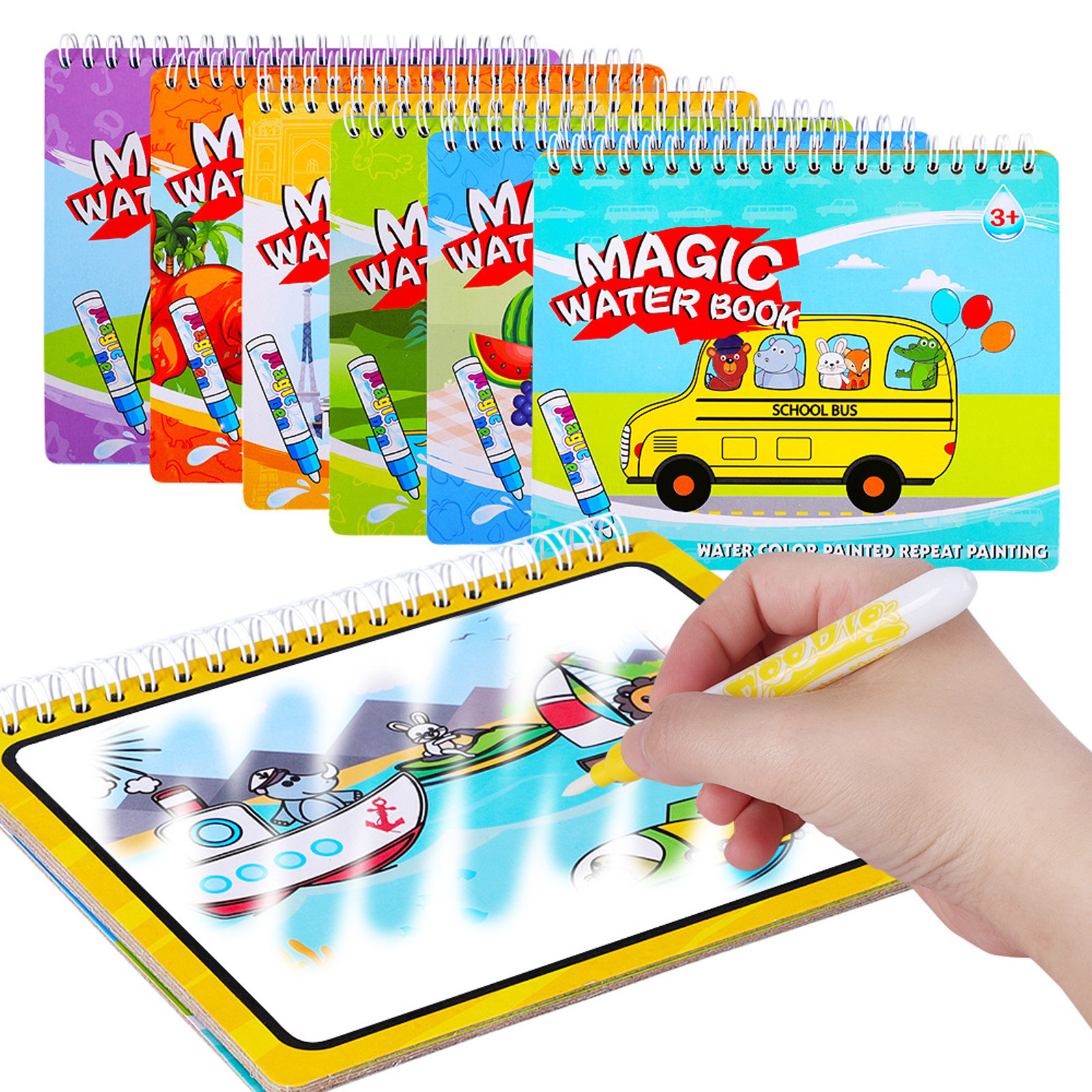 Высококачественные материалы: волшебная Акварельная книга для картин изготовлена из высококачественной бумаги, безопасная и Экологически чистая, плотная бумага не сломается, не размазывается, легко пишется и рисуется, простота в использовании Повторное использование: волшебная книга с изображением автоматически выцветает и может быть использована повторно. Почерк автоматически исчезает после того, как он высохнет, а затем вы можете рисовать снова и снова, а не просто время, это очень подходит для повторной практики. [Льготная посылка] посылка включает в себя 1 книгу, ручку и несколько вариантов: книгу мира динозавра, книгу подводного мира, номер животного мира, транспортную книгу, райскую книгу для гурманов, путешествуйте по всему миру, так что вы можете взять его с собойПростота в использовании: простой в использовании, просто используйте чистую воду, она не будет окрашивать дом и детей; Просто Отвинтите наконечник ручки, Налейте чистой водой и затяните его, а затем вы можете покрасить. Дизайн листа позволяет гибко поворачивать страницы
