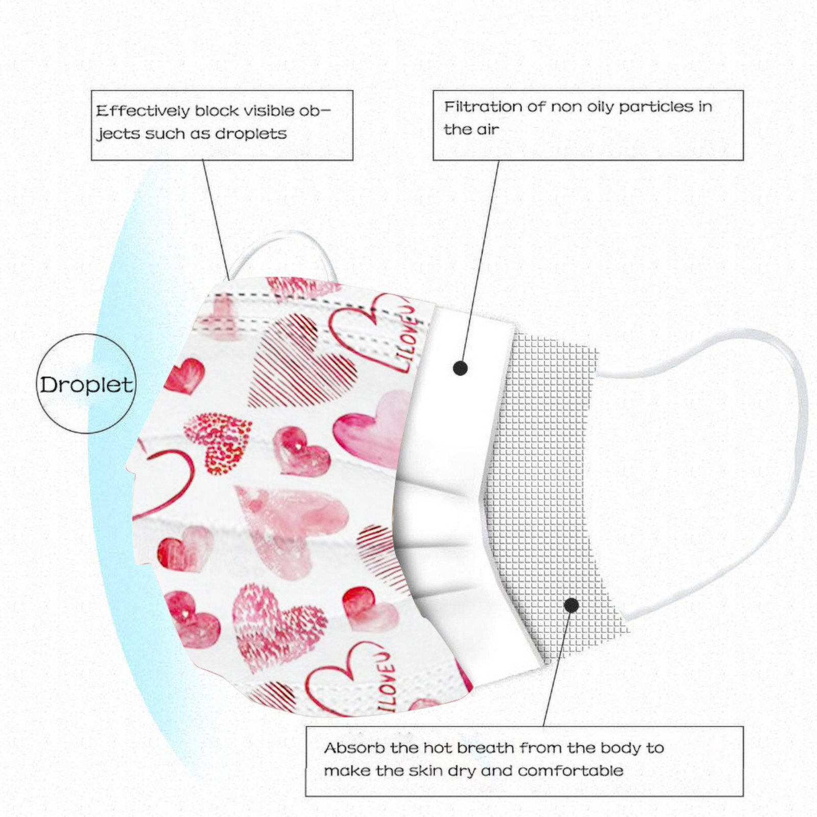 Дизайн, когда вы носите его, он легко помещается в лицо. Эластичный
