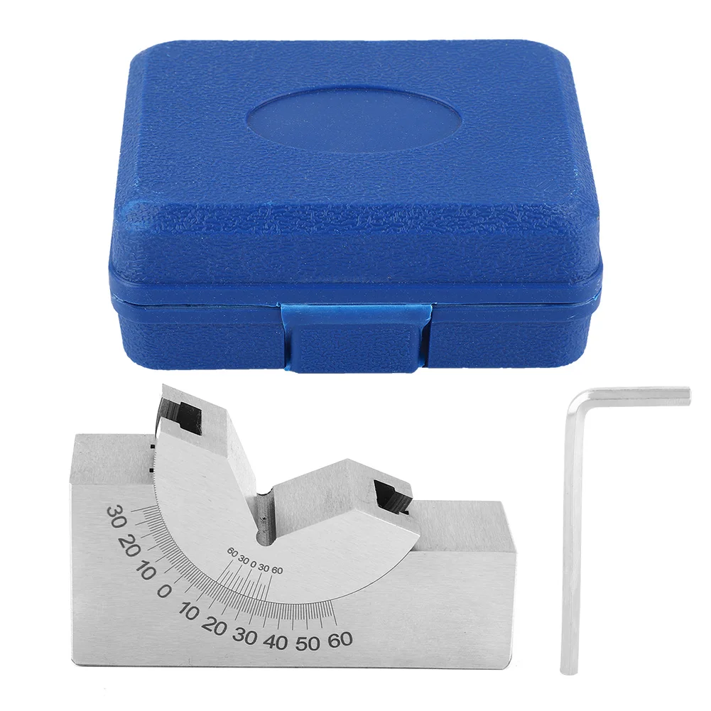 Made of premium Stainless steel, surface hardened,sturdy and durable Application: In the milling machine, planer, drill press with adjustable angle grinder and regulations on the blade, crossed with other fixtures or clamping the workpiece after the workpiece processing, such as processing slope, slant-hole drilling and the like. It can be a cursor indicates stepless tilt adjustment angle, and then be secured with screws, used to create a variety of fixed angle processing, testing of workpieces. Nickel plated, rust parallelism and verticality precision grinding of each working face to 0.01mm. This Angle V Block features high accuracy and is easy to operate