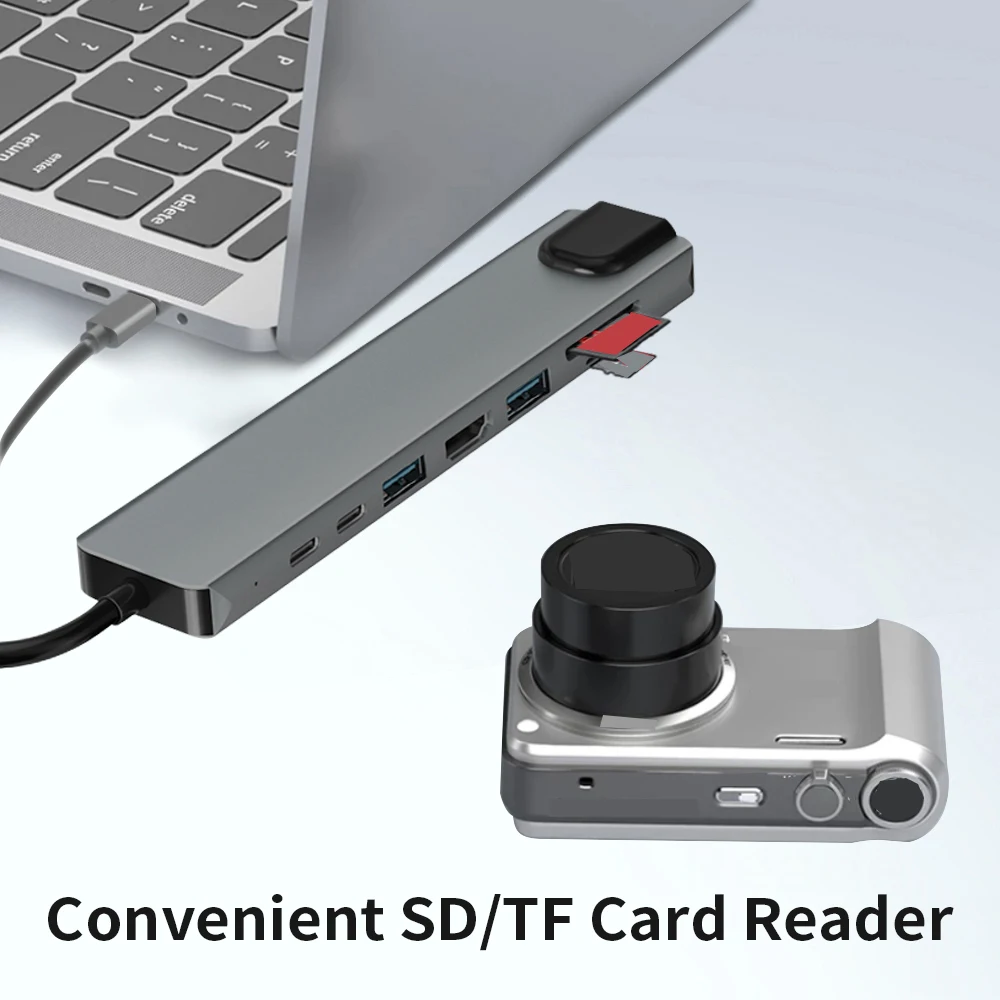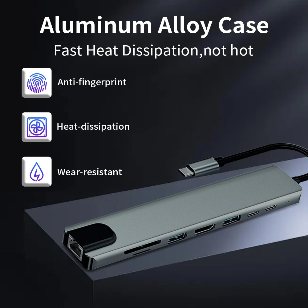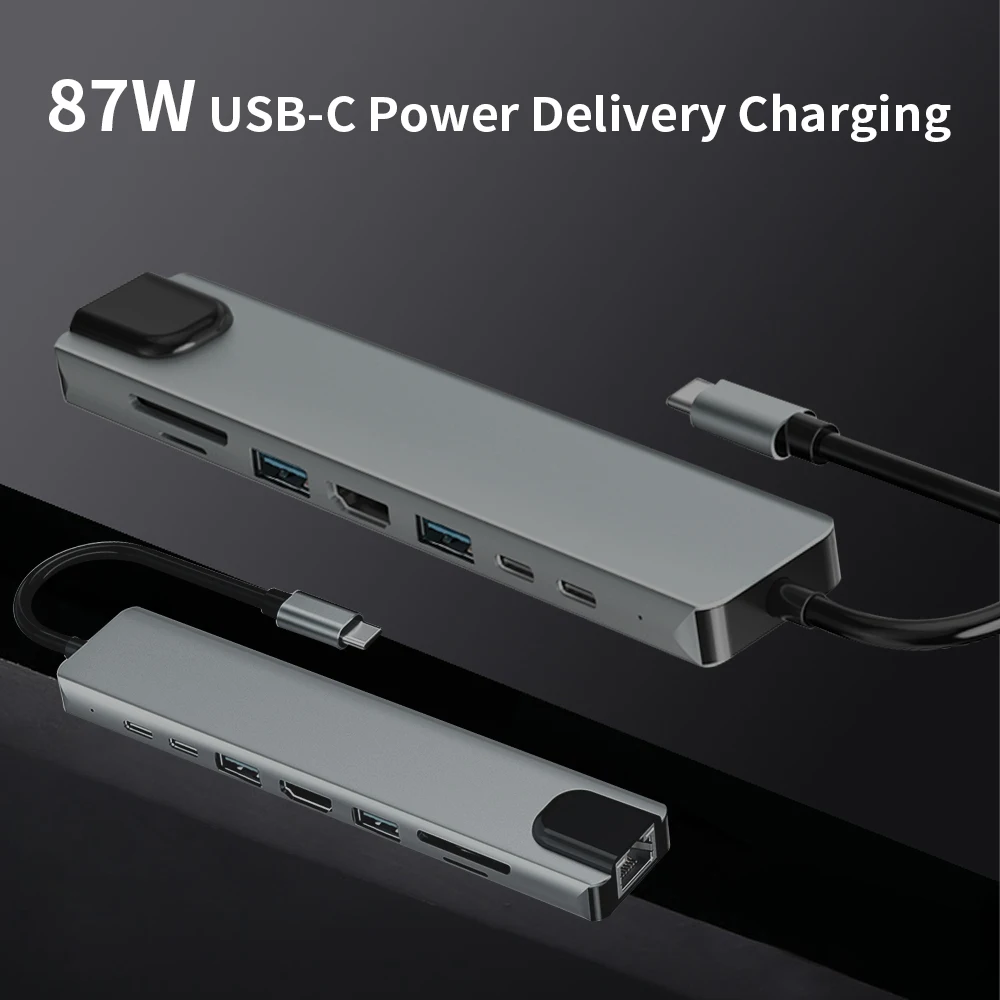 Многопортовый адаптер usb-c с портом fast Ethernet/RJ-45 LAN, Type C 3. 0 порт передачи данных и 87 Вт PD порт зарядки, USB 3. 0 + 2.0 портов s, 4K HDTV видео выход. Устройство для чтения карт Micro SD и TF, которое поможет вам решить 8 проблем в 1 хабе.