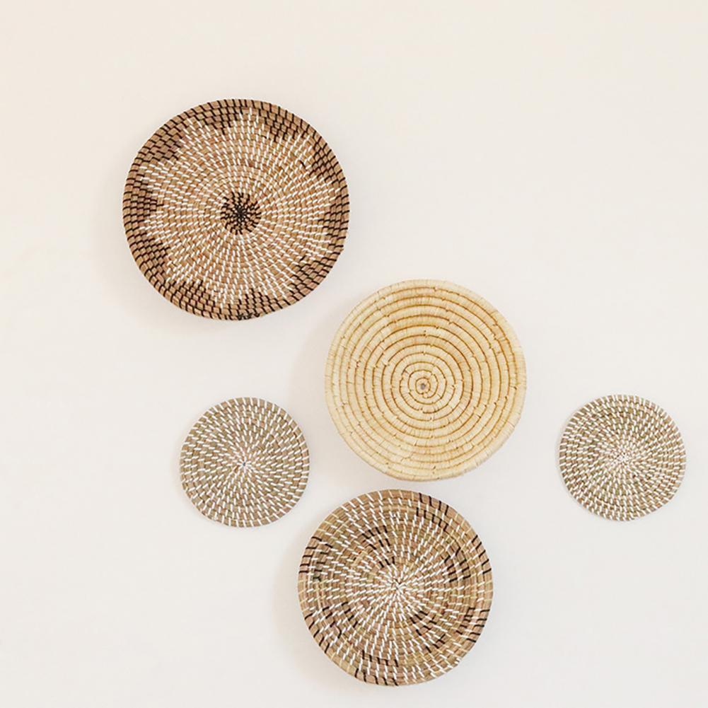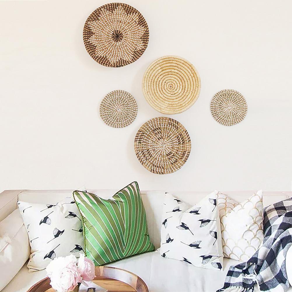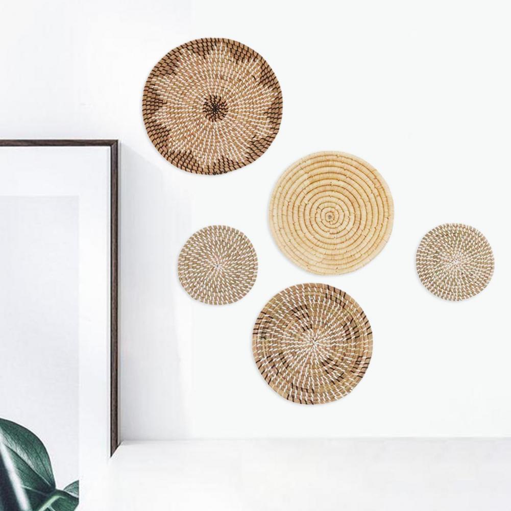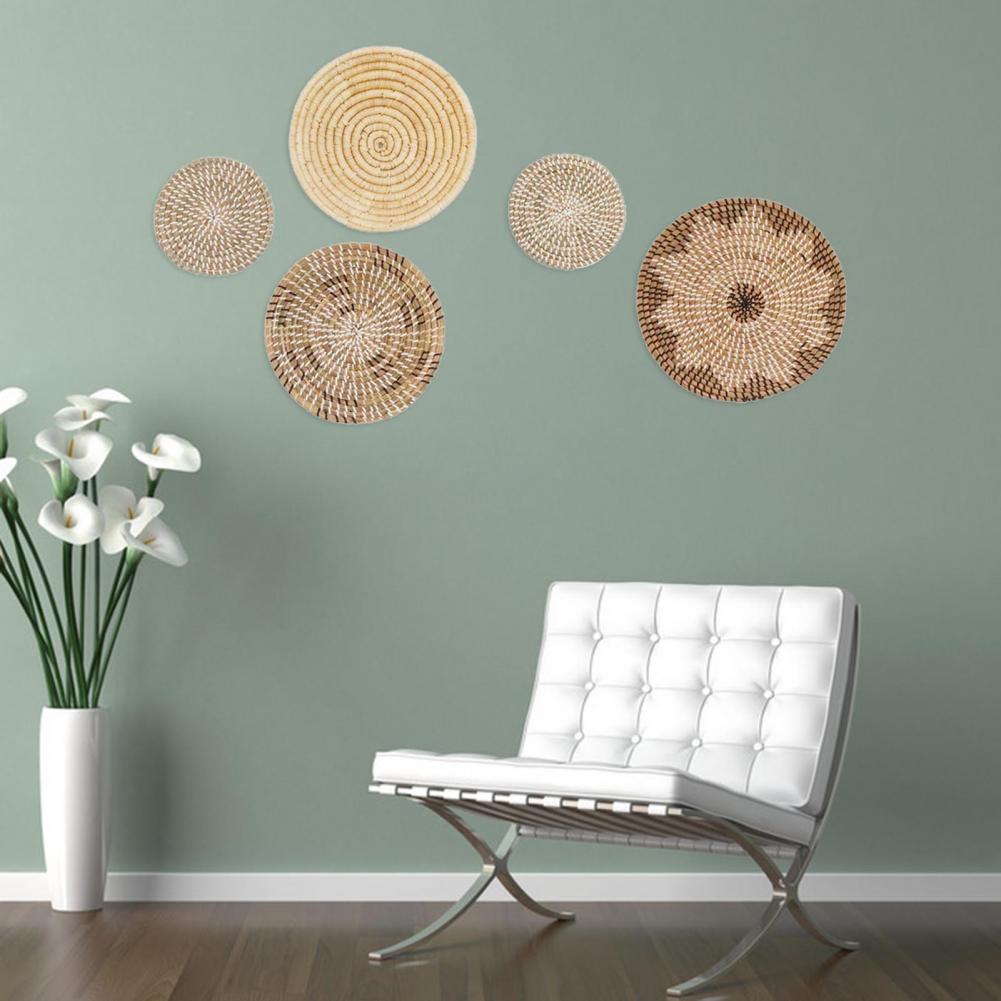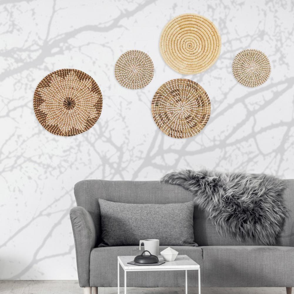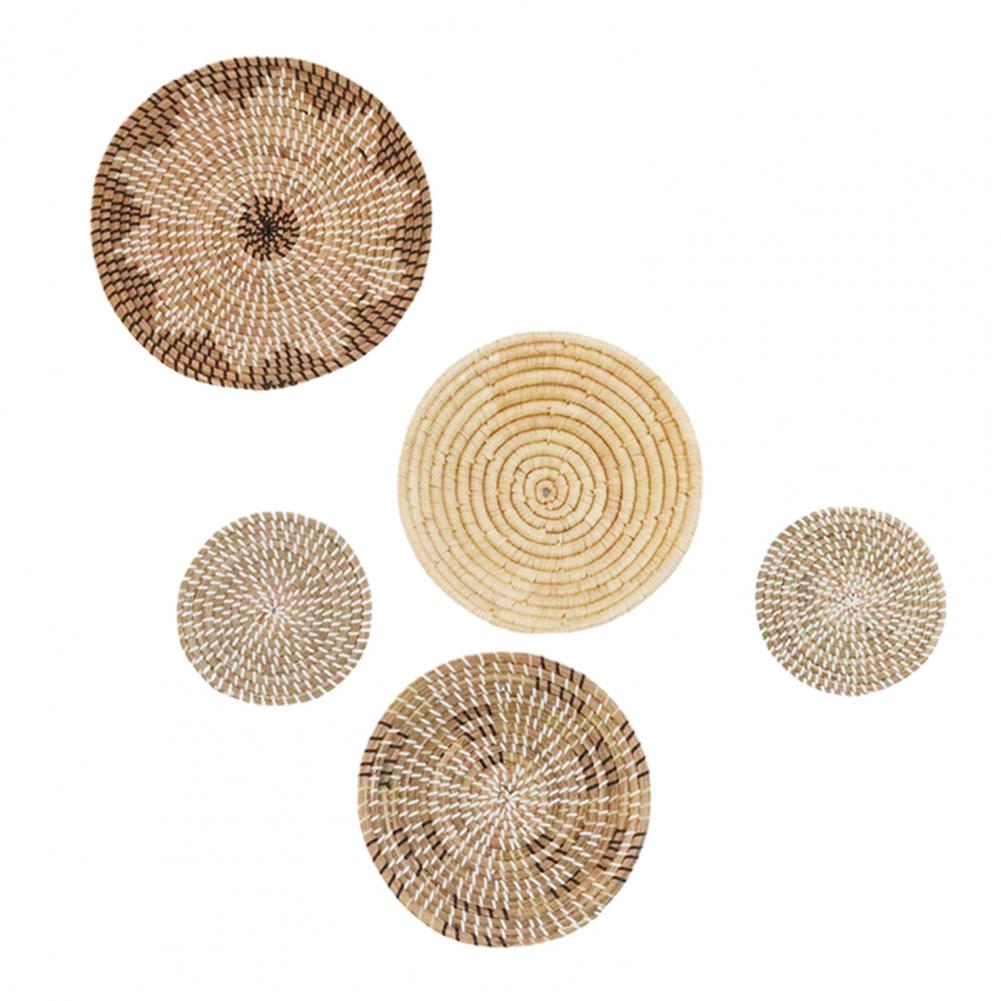 Подвесная настенная корзина ручной работы Декор (набор из 5) Круглая тканая корзина Бохо домашний декор подносы для спальни/кухни/гостиной