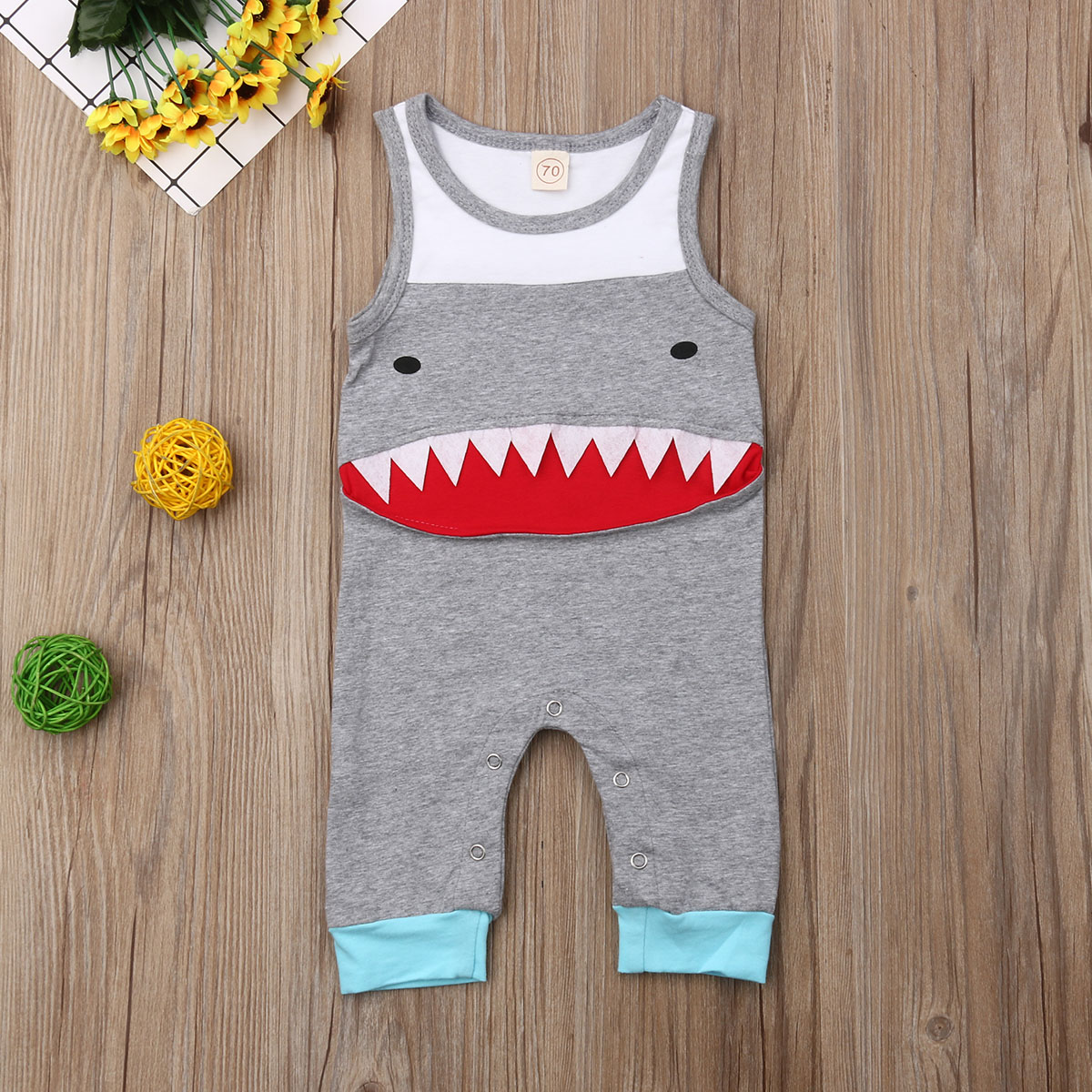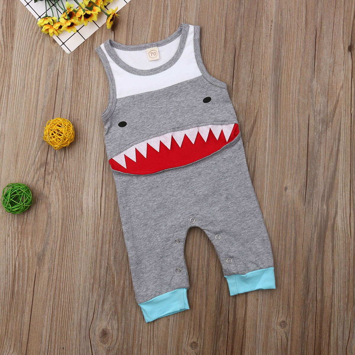 Newest Fashion Baby Boys Shark Romper Jumpsuit !!