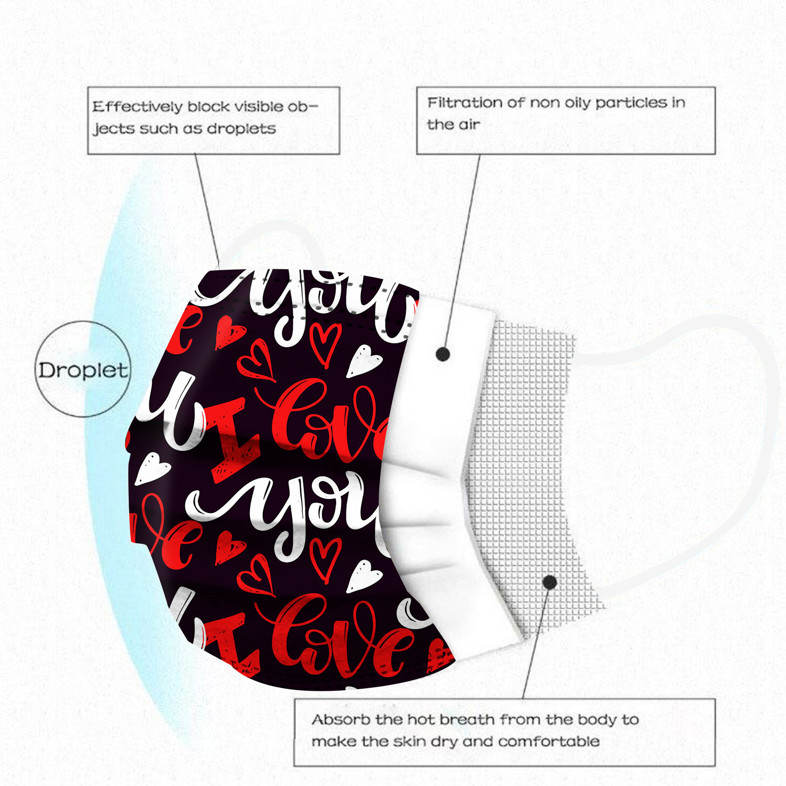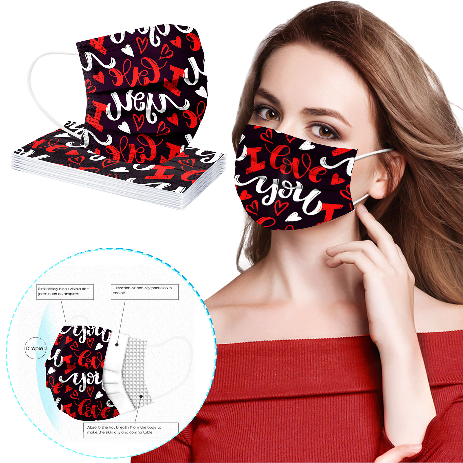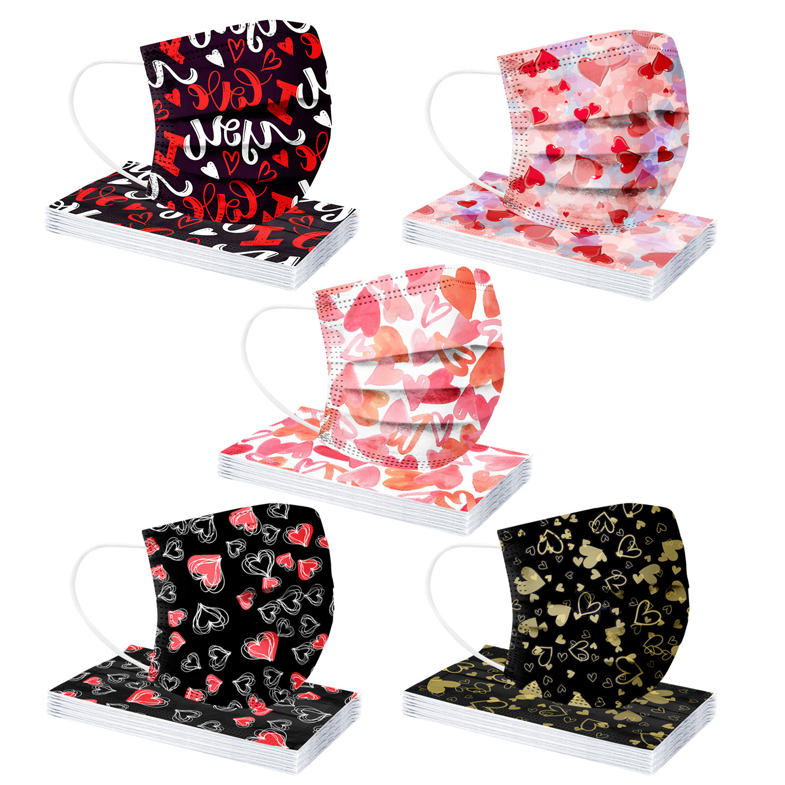 Одноразовая маска на День святого Валентина для взрослых, маски на День святого Валентина с дизайном, милые бумажные маски, полная защита лица
