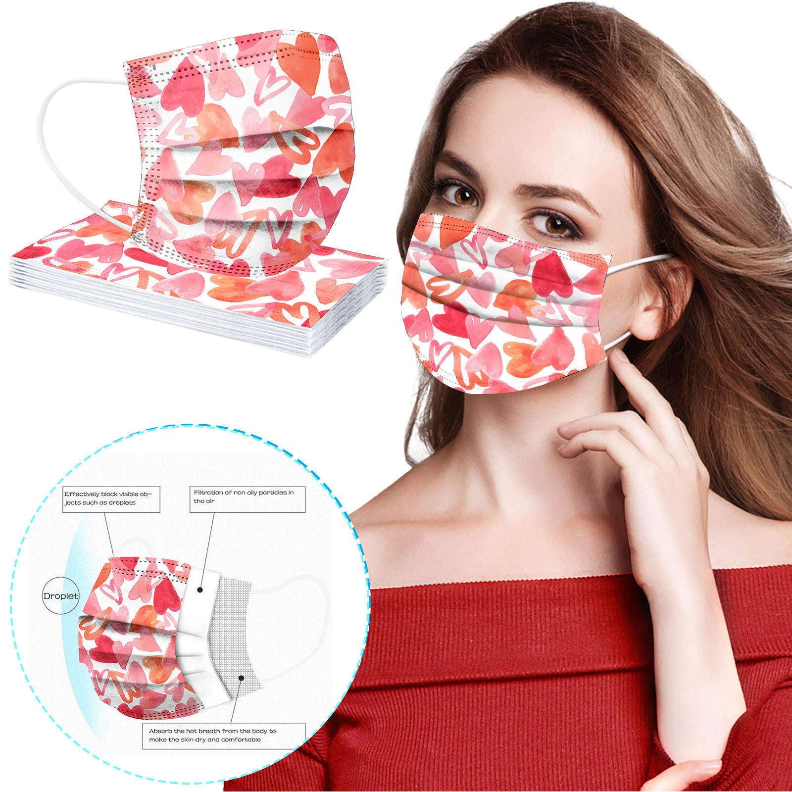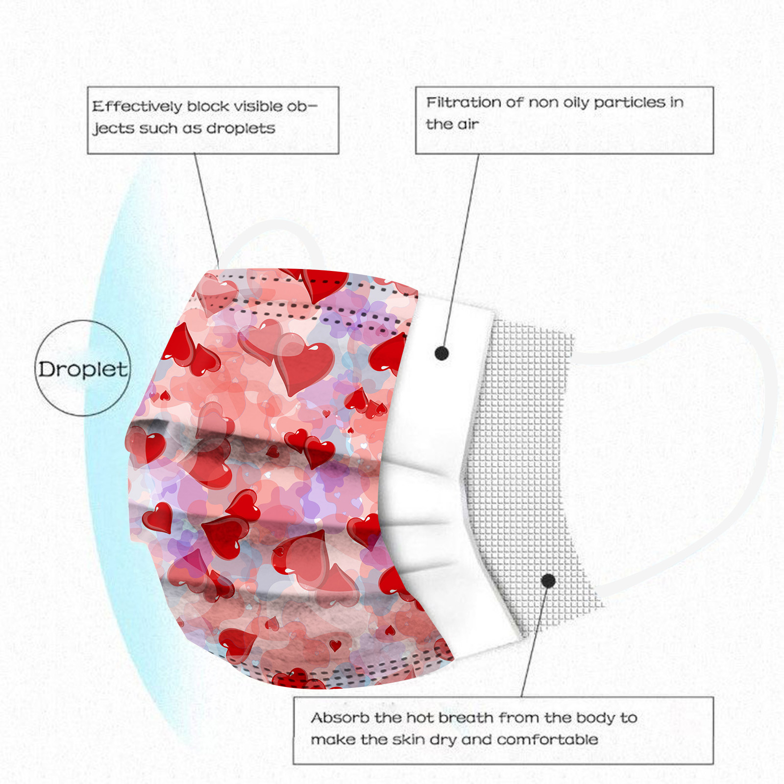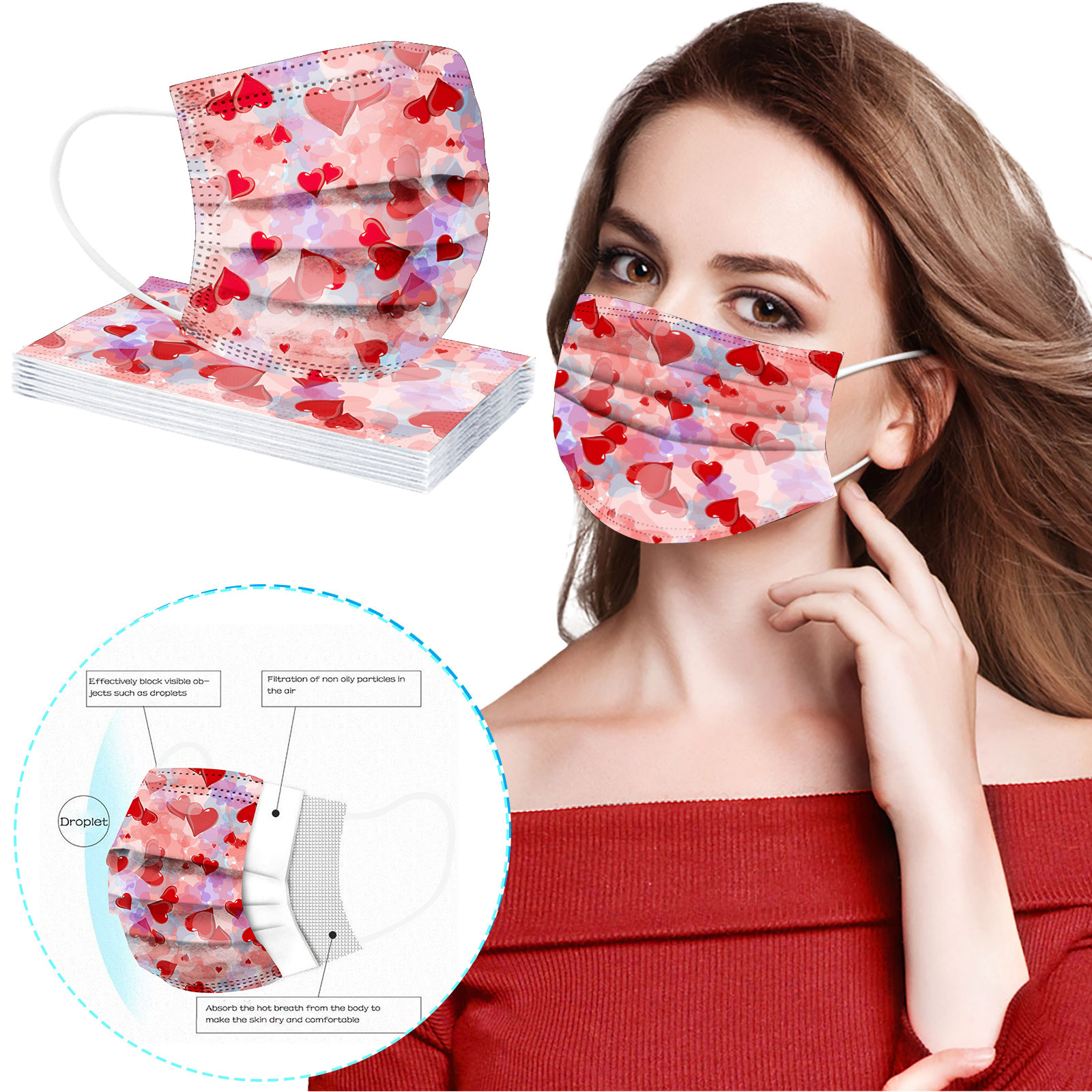 Одноразовая маска на День святого Валентина для взрослых, маски на День святого Валентина с дизайном, милые бумажные маски, полная защита лица