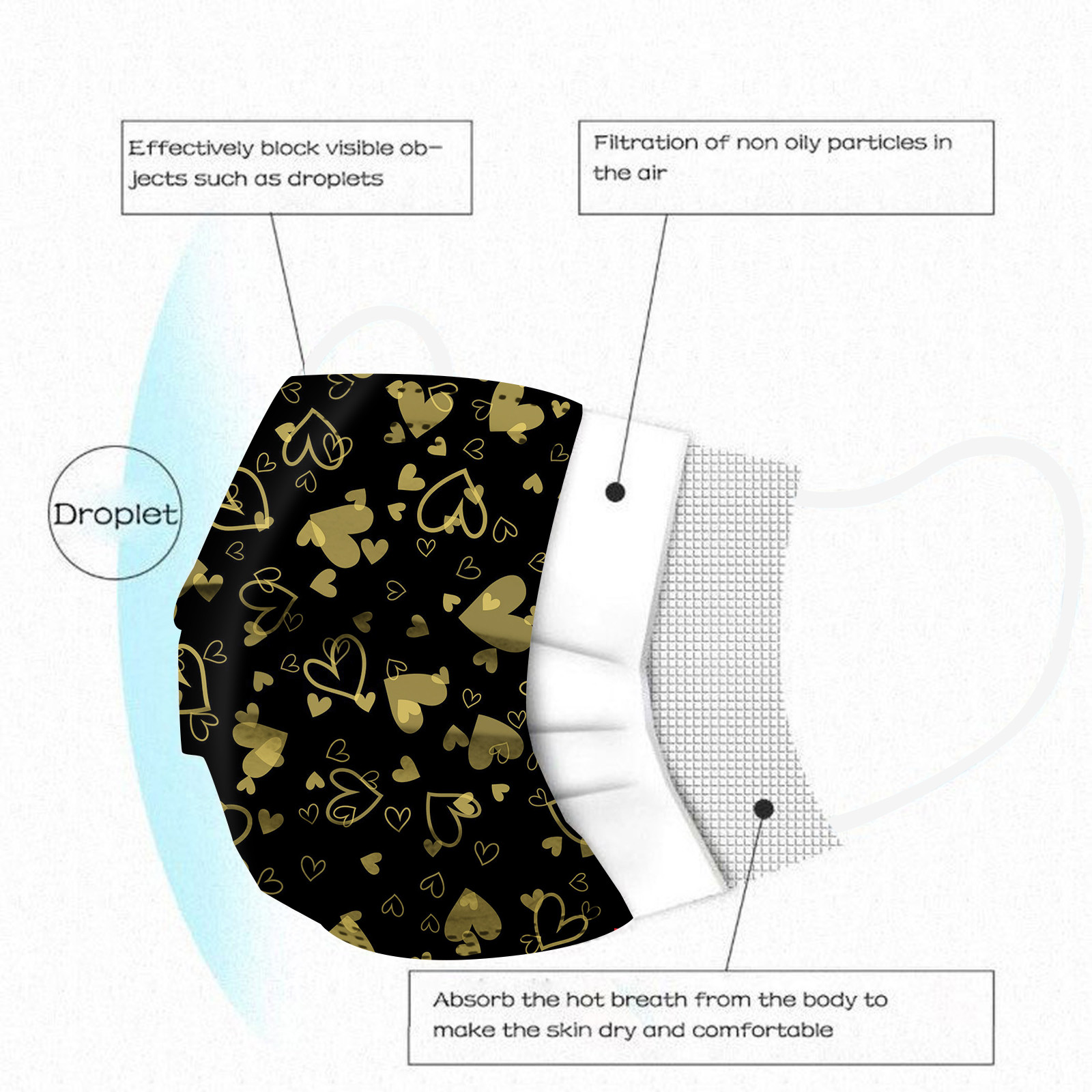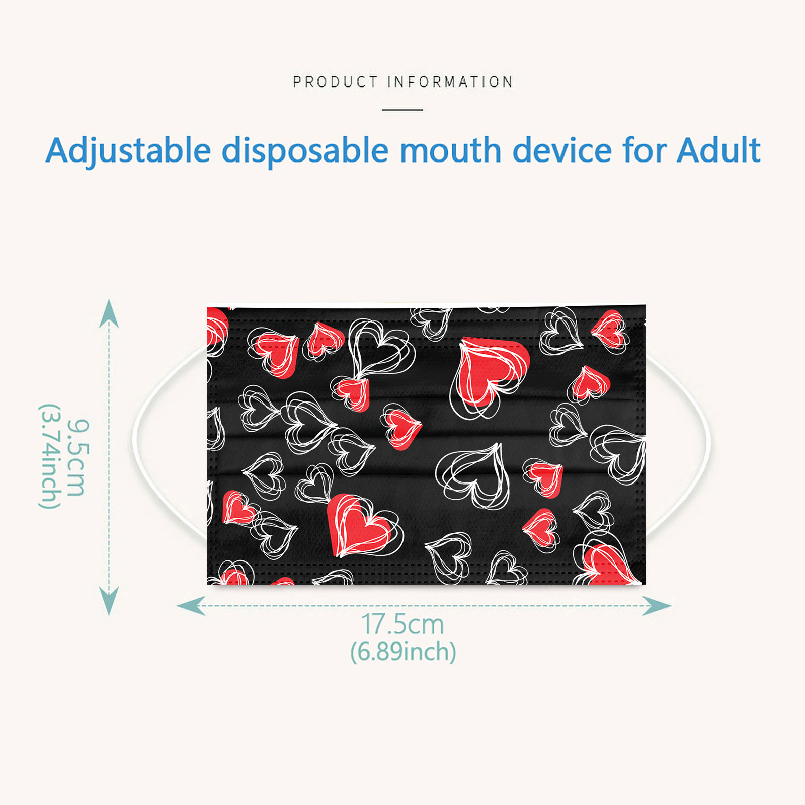Одноразовые и удобные: Одноразовые Чехлы могут защитить вас, рот и лицо. Мягкий, удобный, прочный и дышащий, изготовлен из высококачественных материалов, не повредит кожу и хорошо защищает лицо. Вы можете положить его в карман и носить с собой. Идеально подходит для хранения кошельков, рюкзаков, спортивных сумок или даже для того, чтобы спрятаться в карманах! Подходит для продавцов, офисов, школ и приемных мест. Удобный инструмент, который подходит Размеры: 17,5x9,5 см, подходит для большинства людей, подходит для взрослых, обувь для мужчин и женщин. Он достаточно широкий, чтобы защитить нос, рот и лицо. Удобные и дышащие. Идеальный дизайн Valentines: с регулируемой линией носа, складки расширяются, чтобы полностью покрыть нос и рот. В нем также используются удобные сверхэластичные крючки для ушей, поэтому вам не придется беспокоиться о сжатии ушей. Дышащие материалы и милые рисунки на День святого Валентина делают его практичным и стильным. Переносица на верхней части защитного чехла может быть настроена на соответствие. Идеально подходит. Легкие, с эластичными Ушными крючками, удобные и легко надеваются и снимаются. 3 защитных слоя: одноразовые маски для лица ко Дню Святого Валентина изготовлены из нетканого и расплавленного материала, не раздражающего, мягкого и удобного, что обеспечивает комплексную защиту. Светильник и Воздухопроницаемость: регулируемый переносице и эластичная Ушная петля обладают достаточно эластичностью, чтобы сделать тонкое уплотнение, предназначенное для максимального комфорта, эти маски обеспечивают полное покрытие носа и рта и позволяют работать и свободно работать. Эластичная Застежка на ушную петлюХарактеристика: