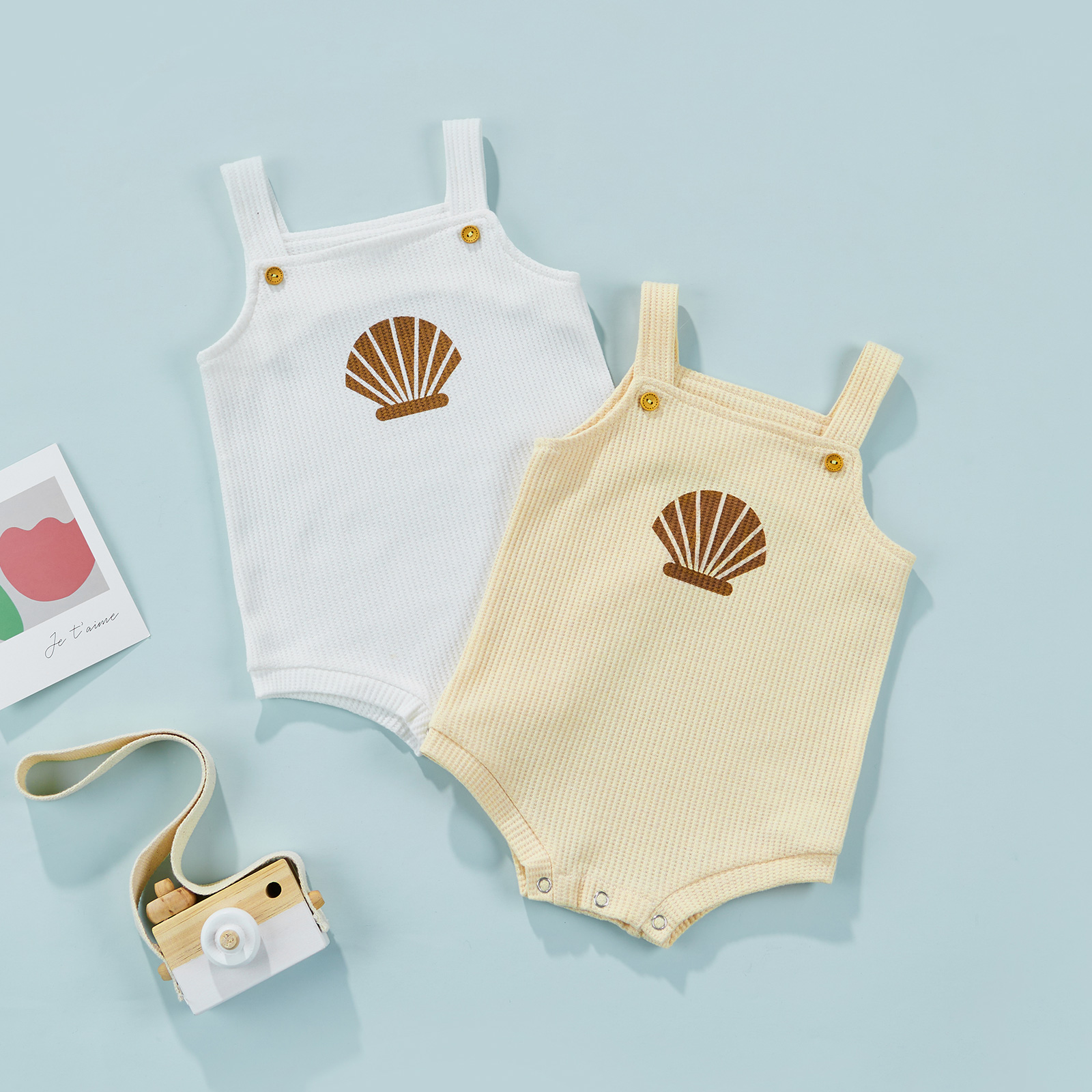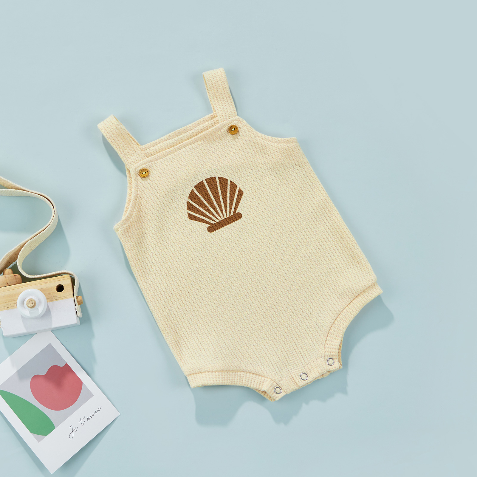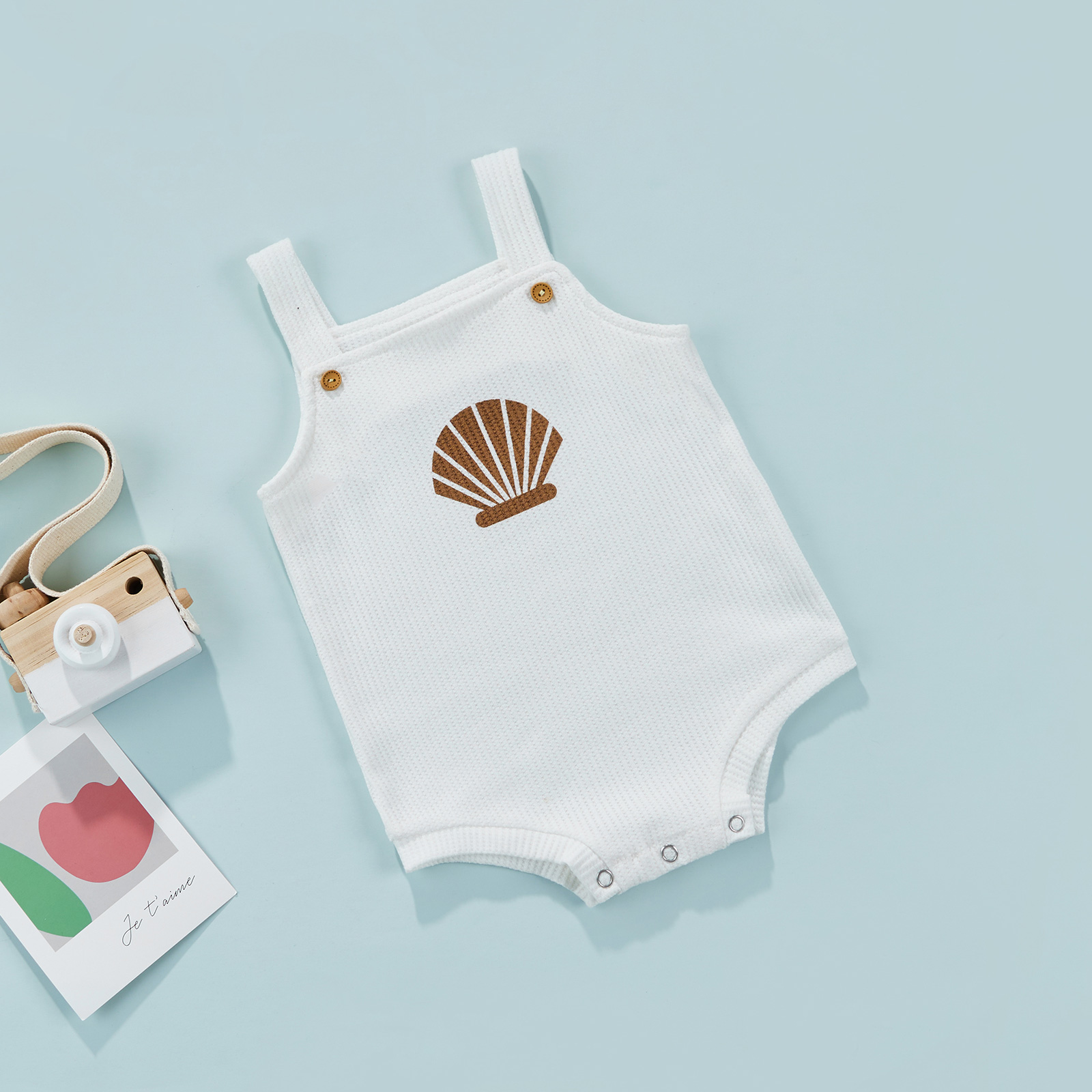 Детский летний детский комбинезон; Боди без рукавов с принтом в виде ракушки и с бретельками