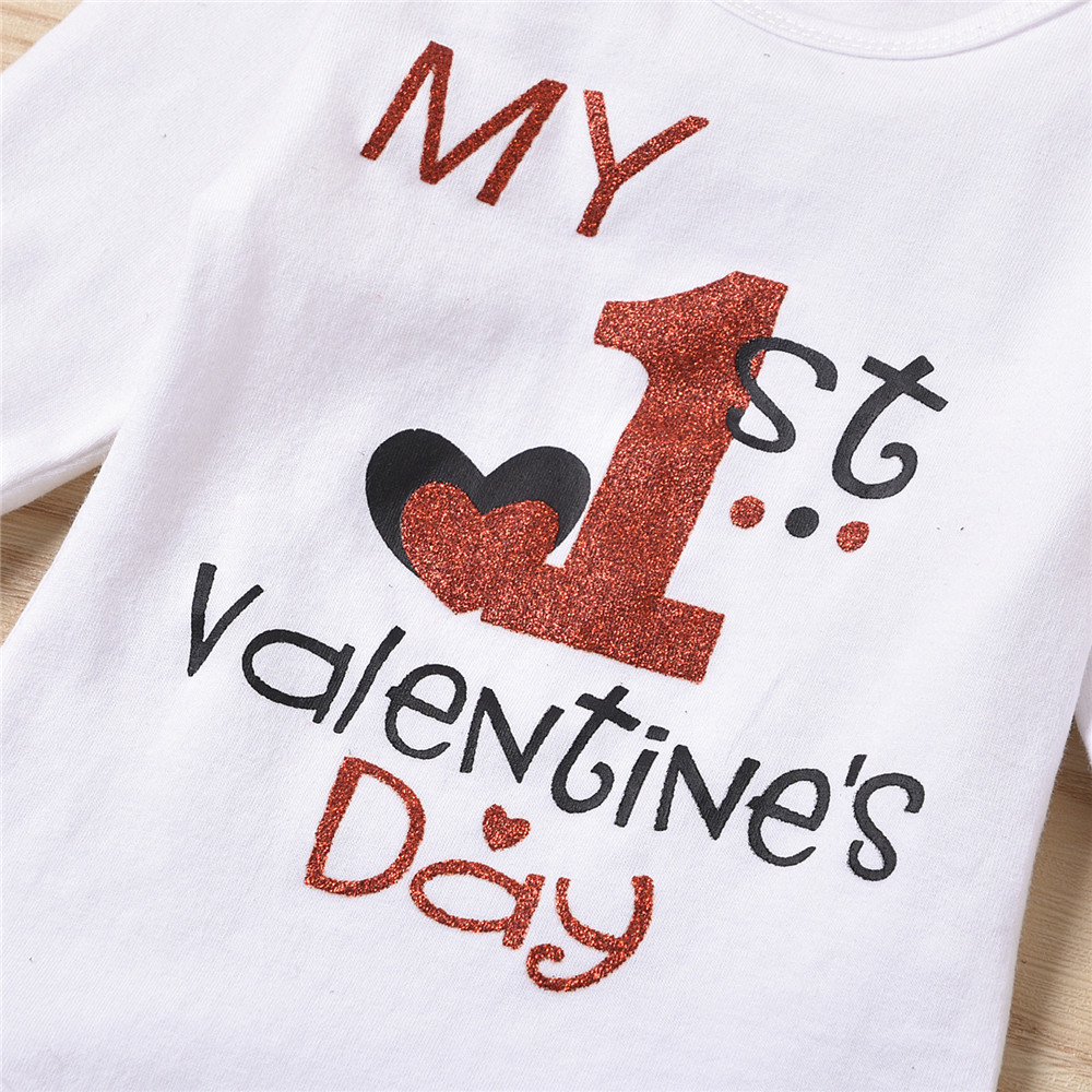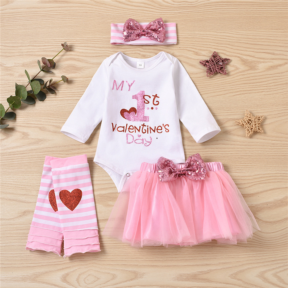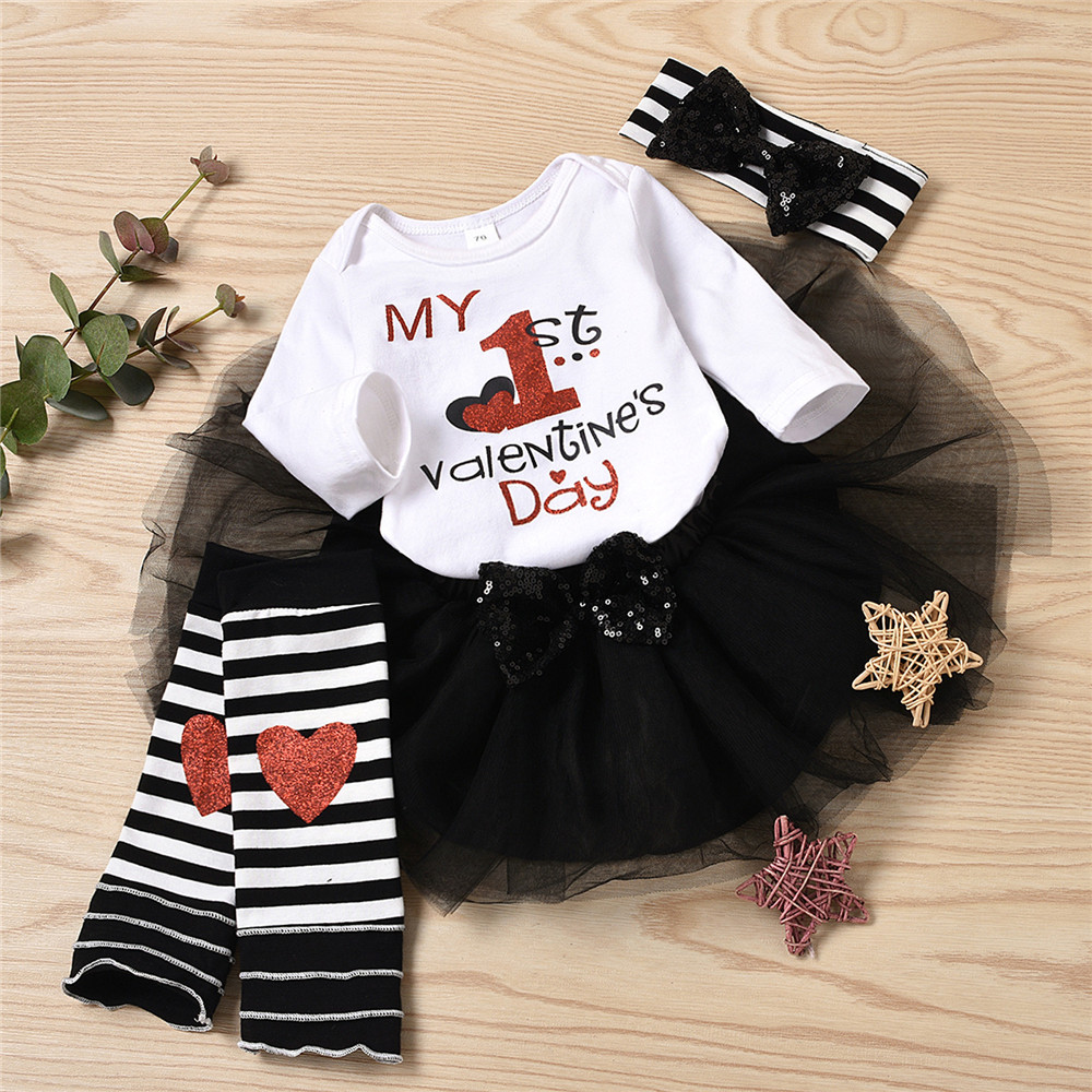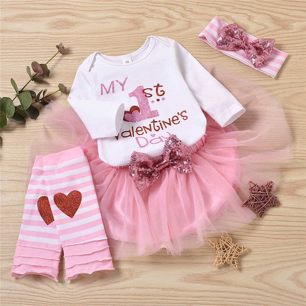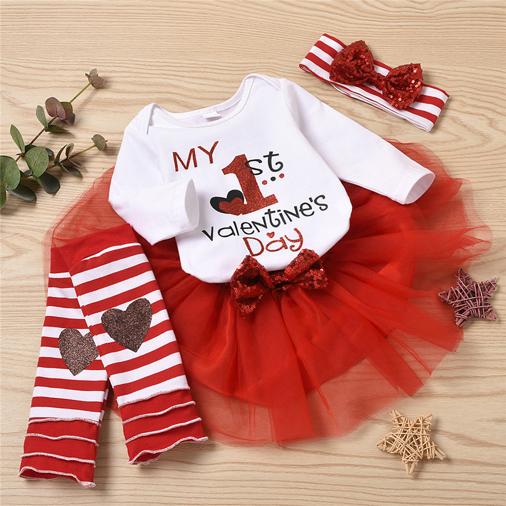 Комплект одежды на День святого Валентина для маленьких девочек, комбинезон с буквенным принтом, фатиновая юбка-пачка, повязка на голову, гетры, праздничный костюм для новорожденных 0-12 месяцев