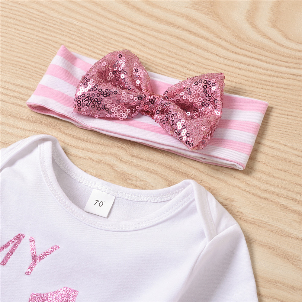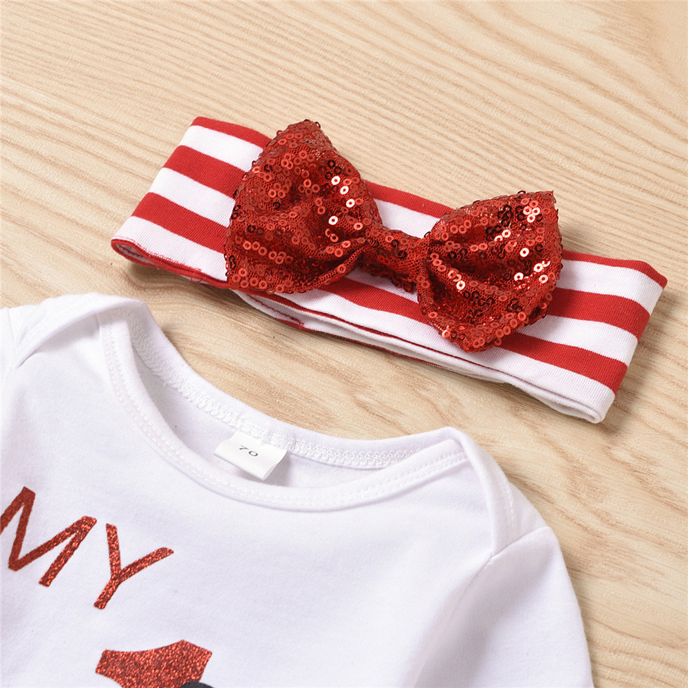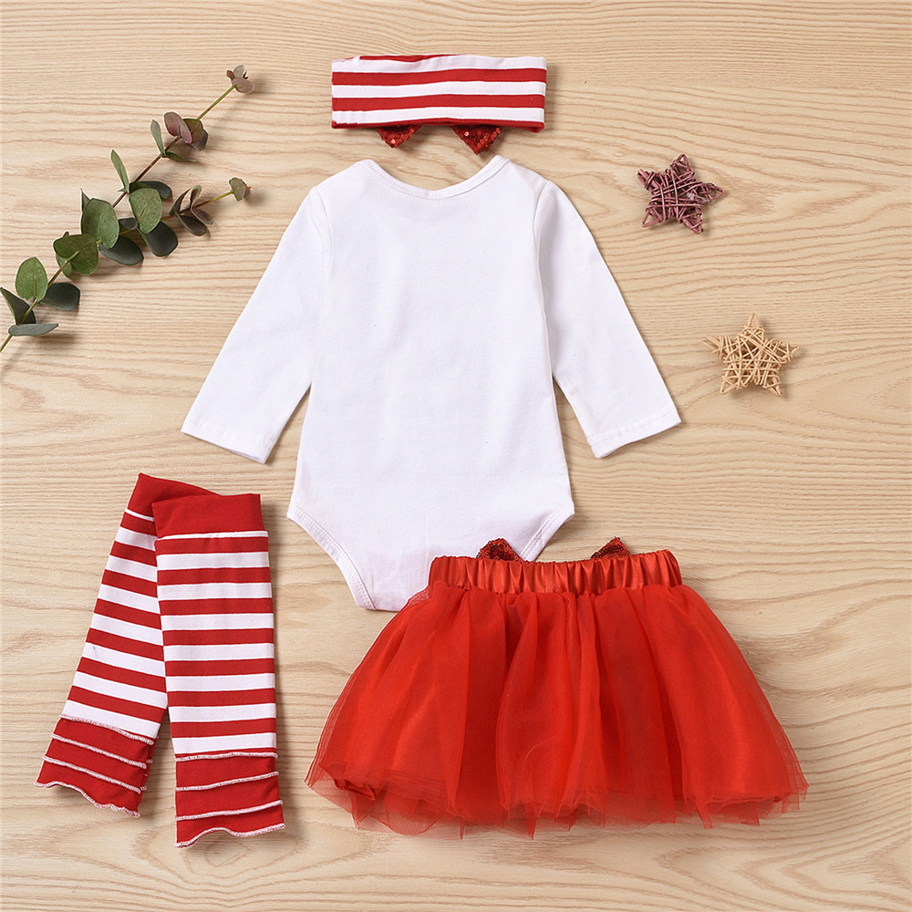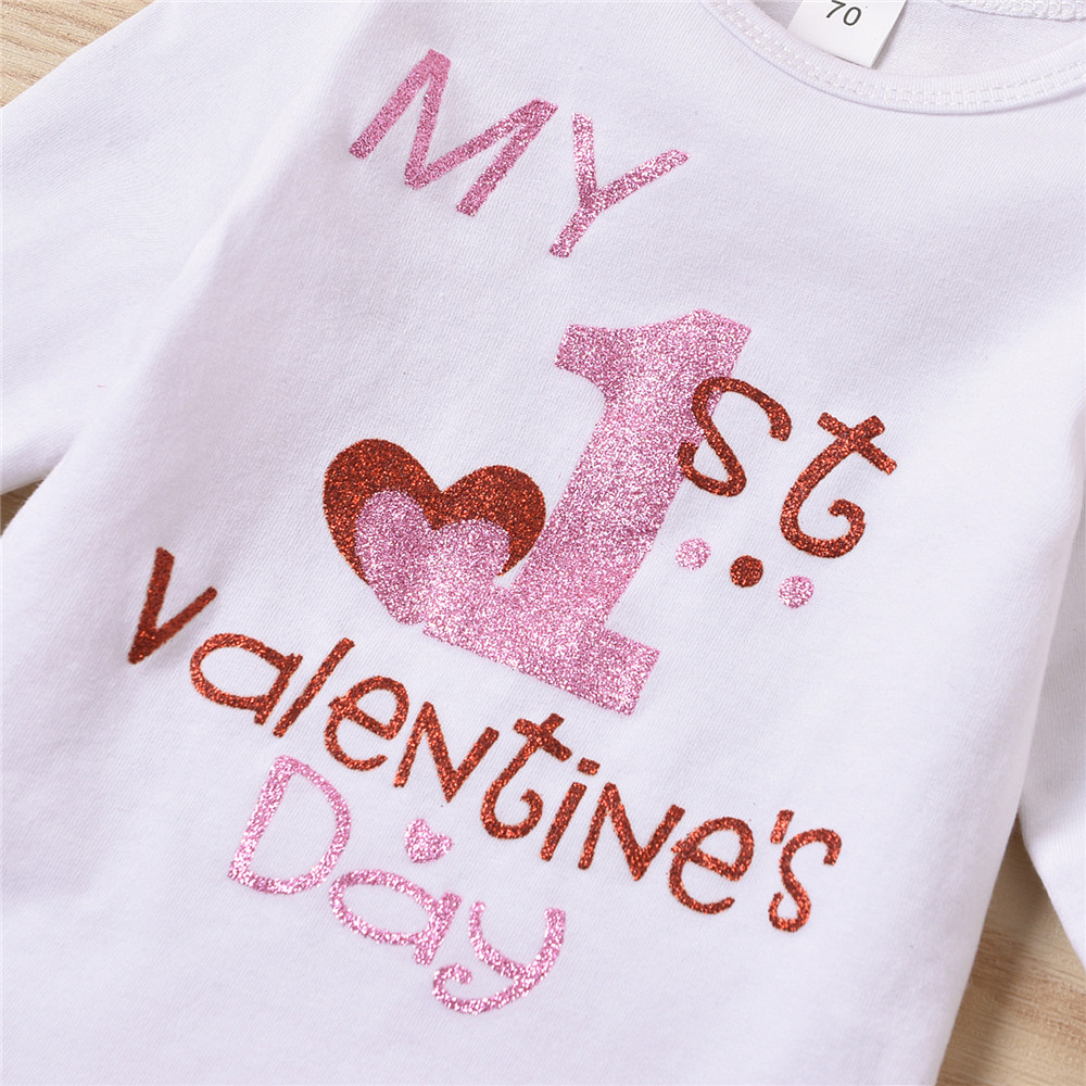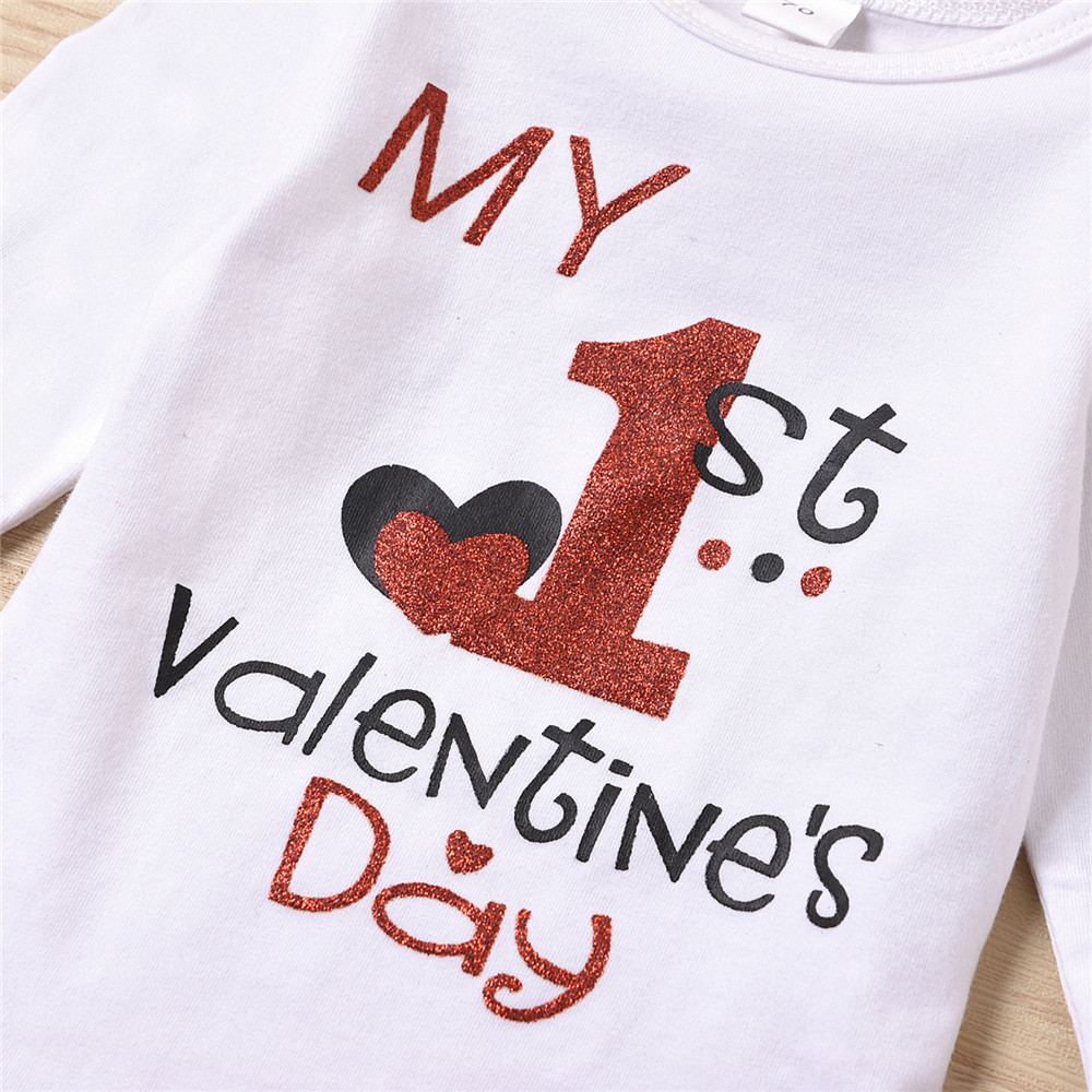 Комплект одежды на День святого Валентина для маленьких девочек, комбинезон с буквенным принтом, фатиновая юбка-пачка, повязка на голову, гетры, праздничный костюм для новорожденных 0-12 месяцев