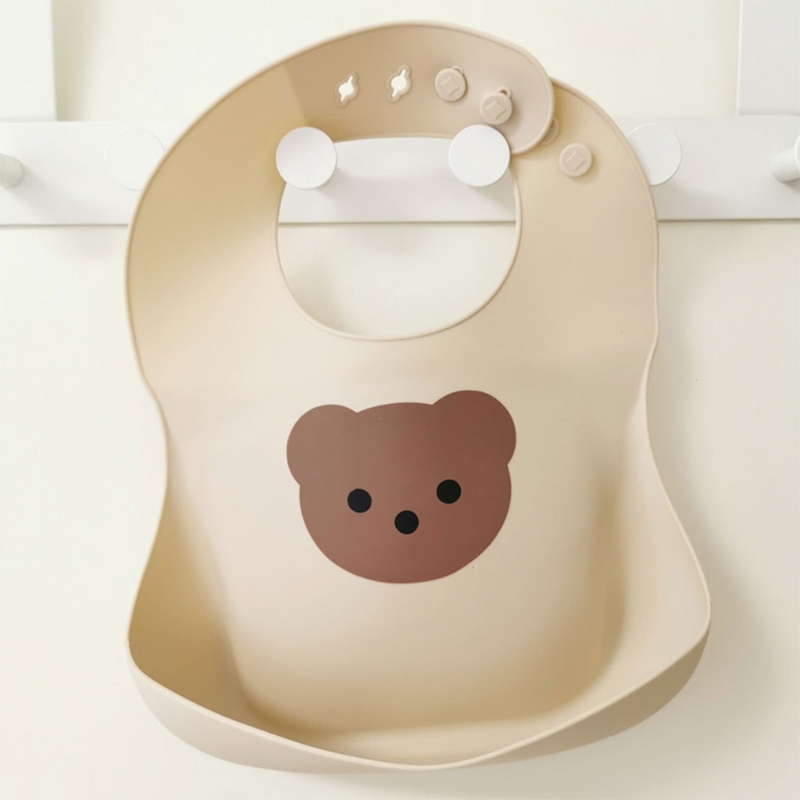 K5DD детский пищевой силиконовый водонепроницаемый нагрудник с принтом медведя, фартук для кормления с карманом, регулируемая посуда