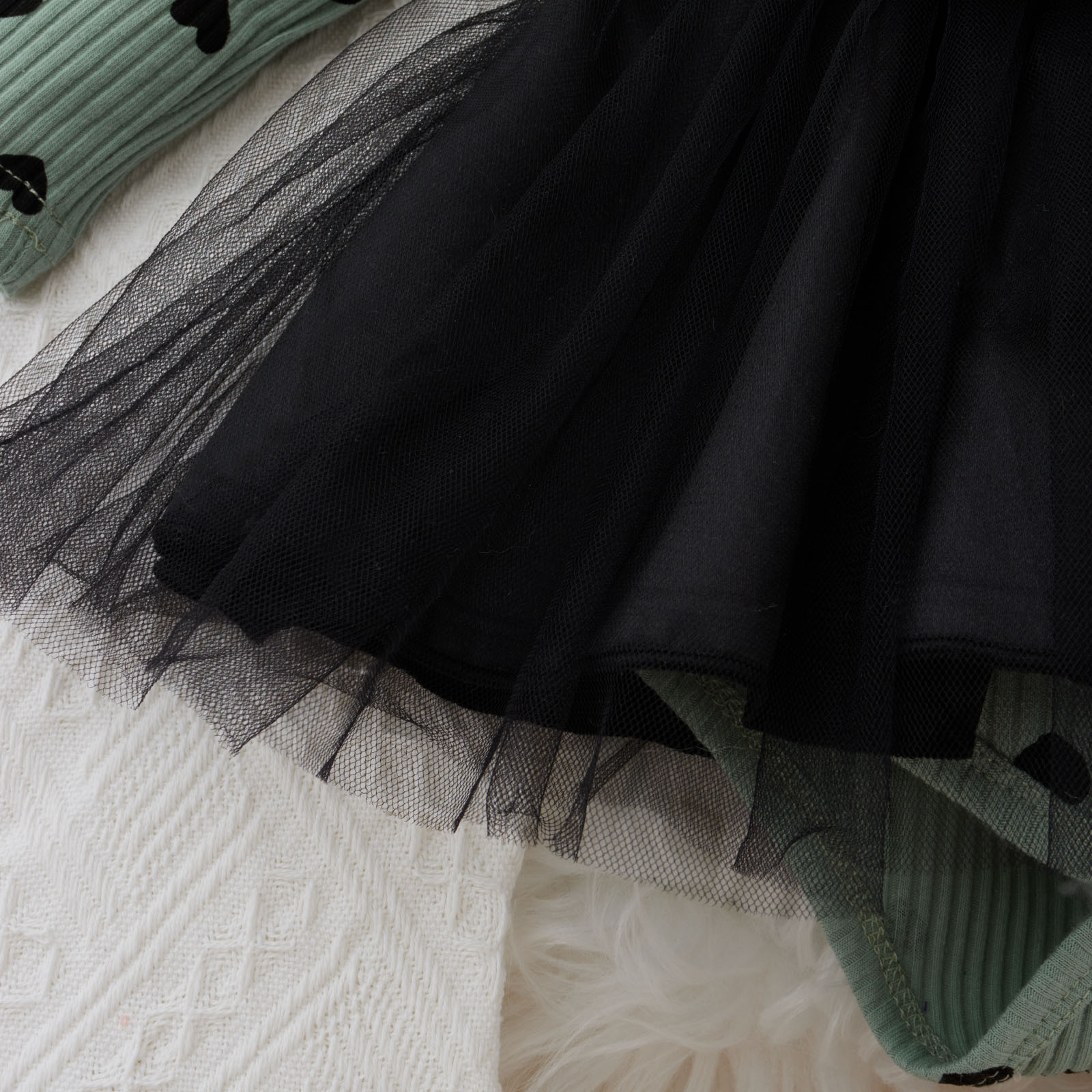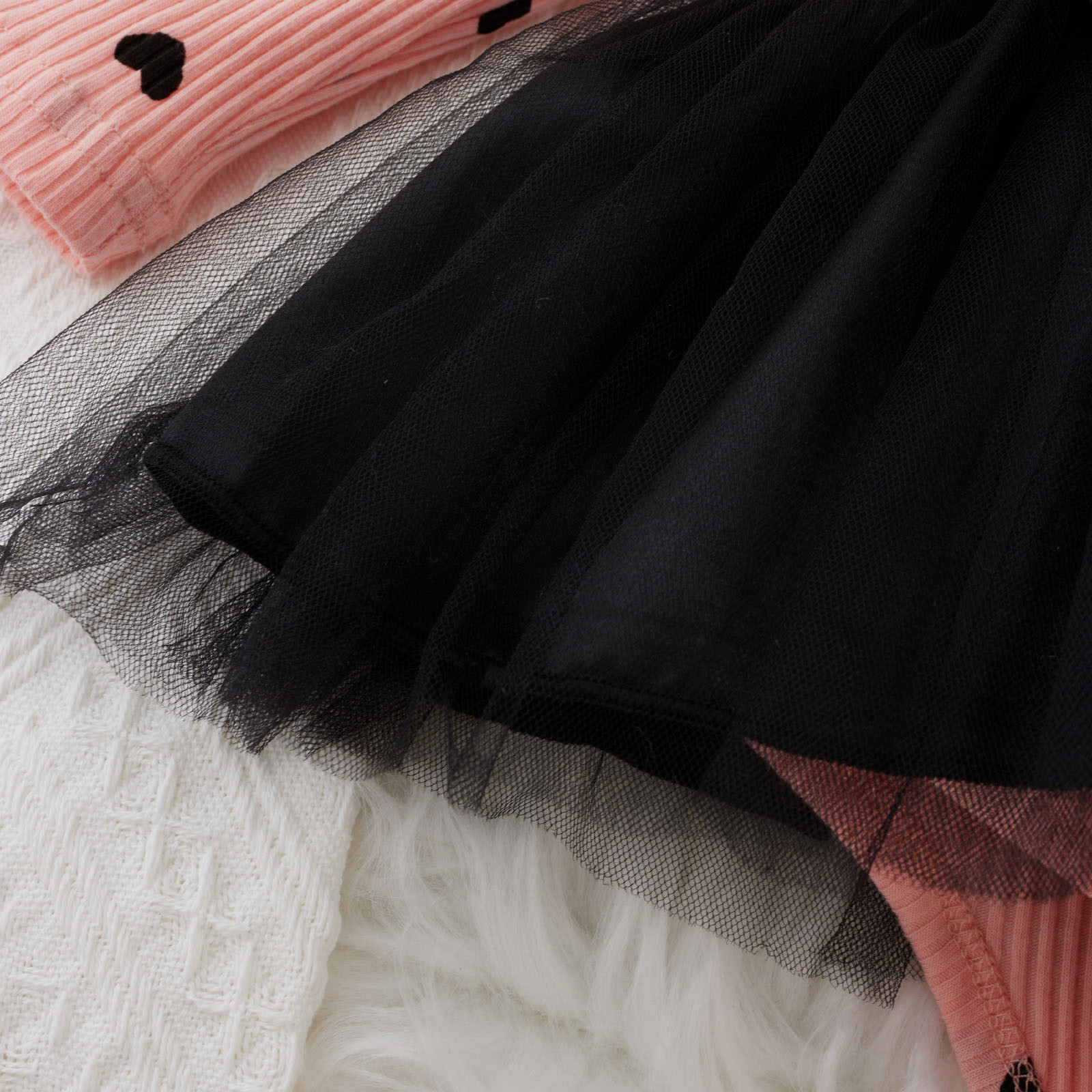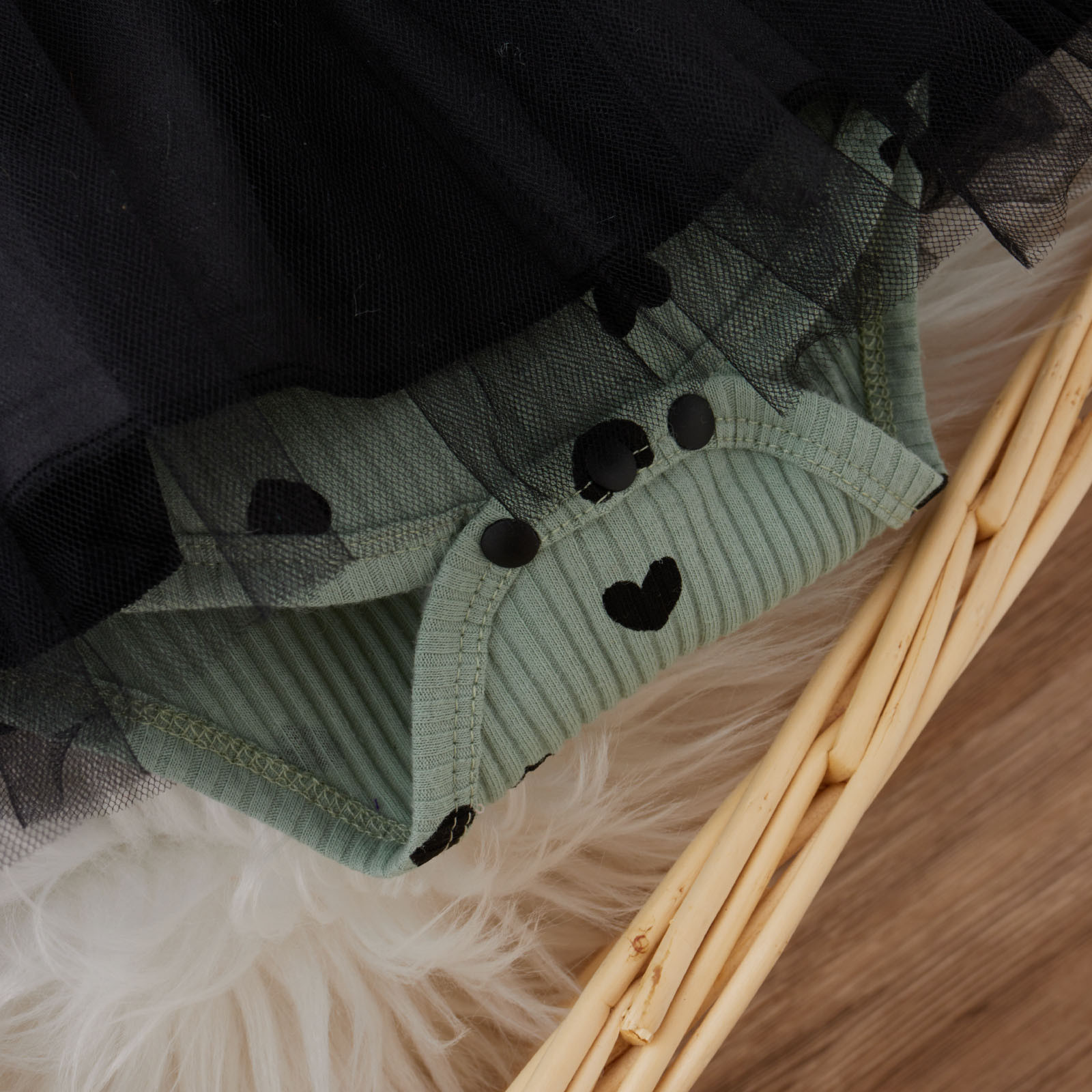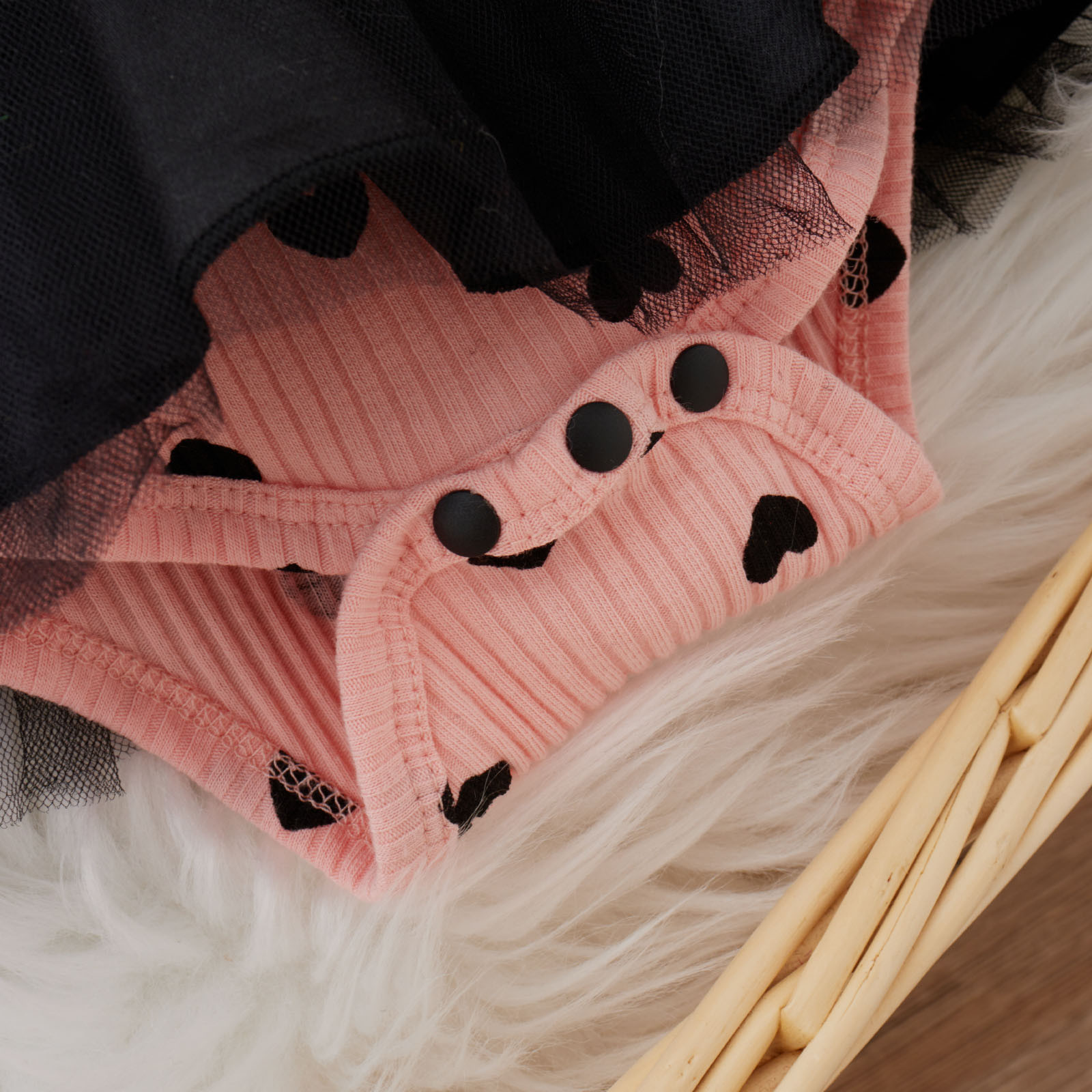 Детское фатиновое платье-боди с длинными рукавами и принтом в виде сердечек и бантом для маленьких девочек; Комбинезон с повязкой на голову