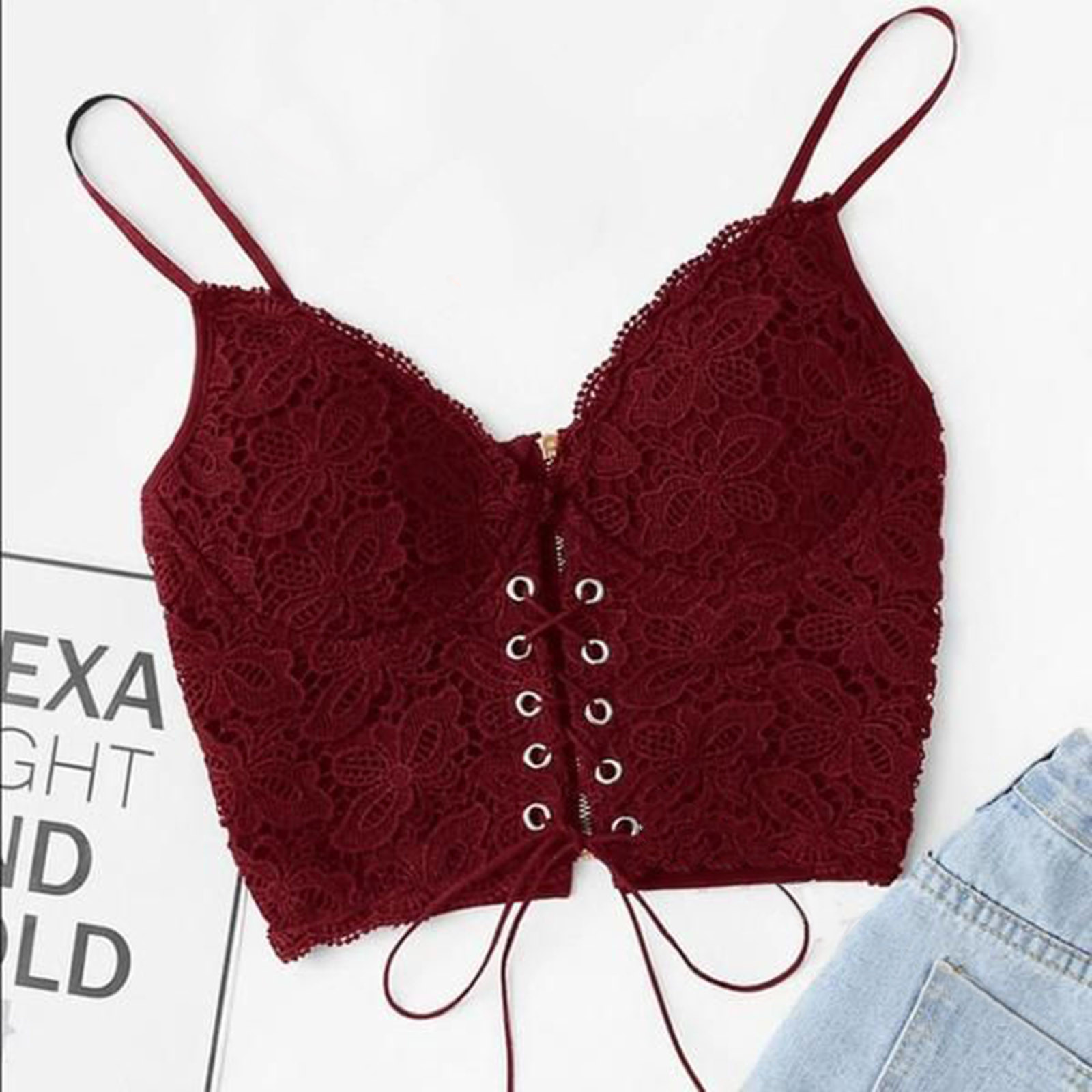 Женская укороченная майка на бретельках без рукавов с застежкой-молнией на спине