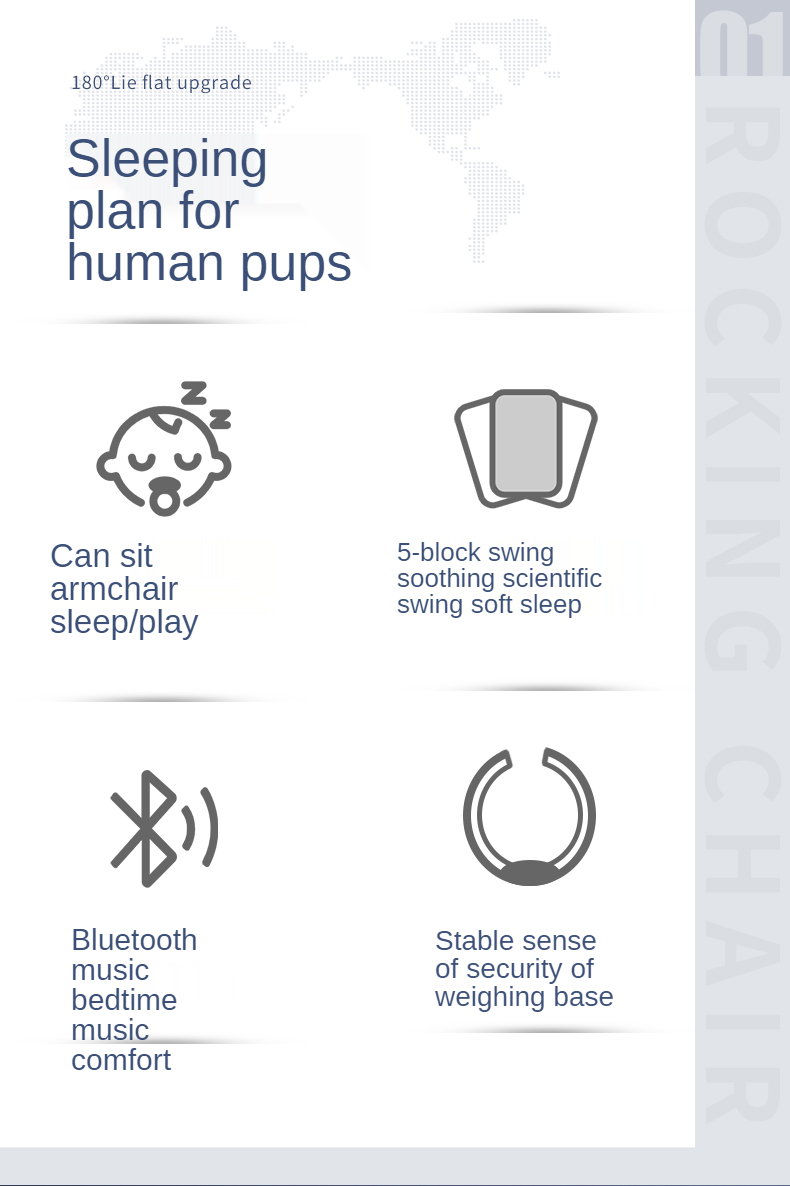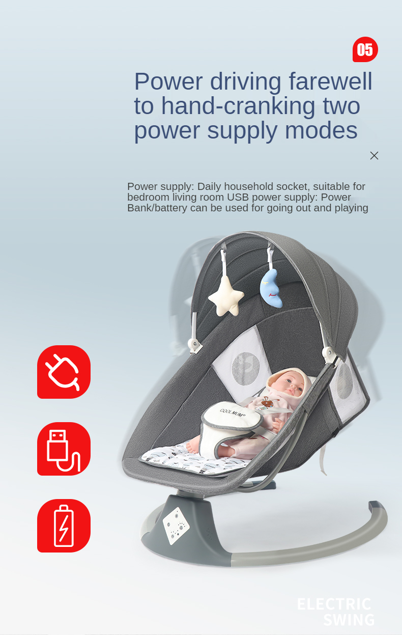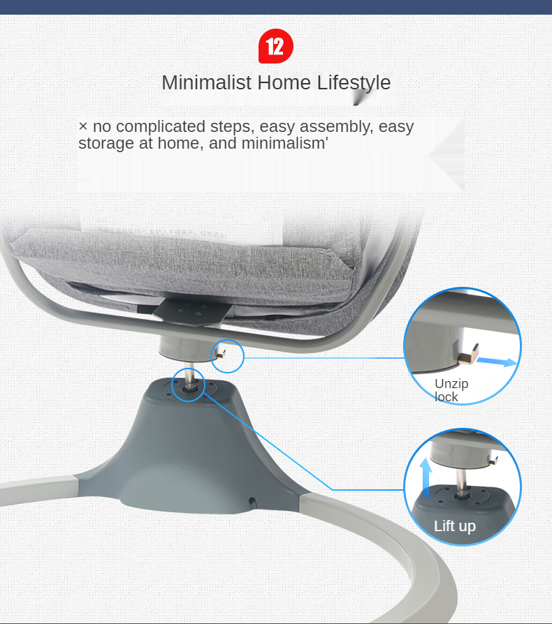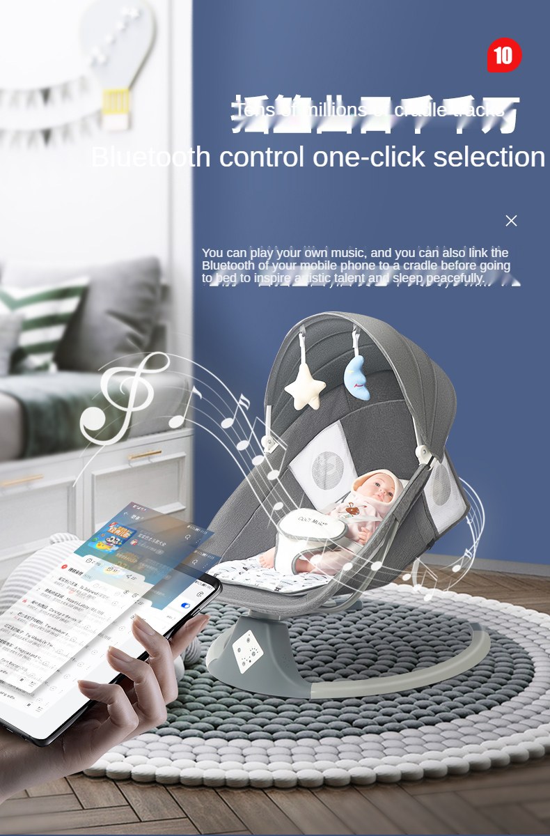 Кресло-качалка имеет много колыбельных, благодаря функции Bluetooth, вы можете воспроизводить любимую музыку вашего ребенка на свой мобильный телефон.