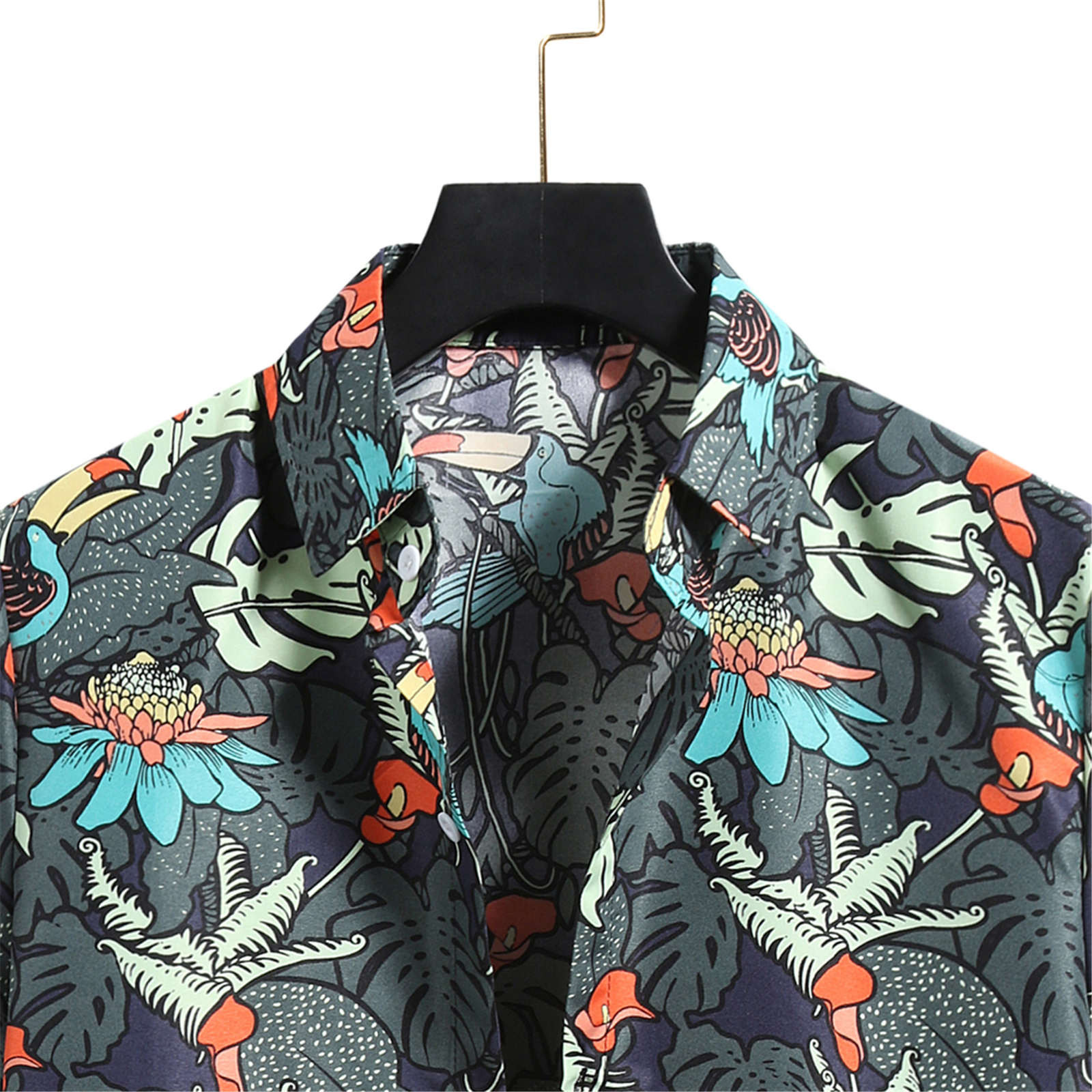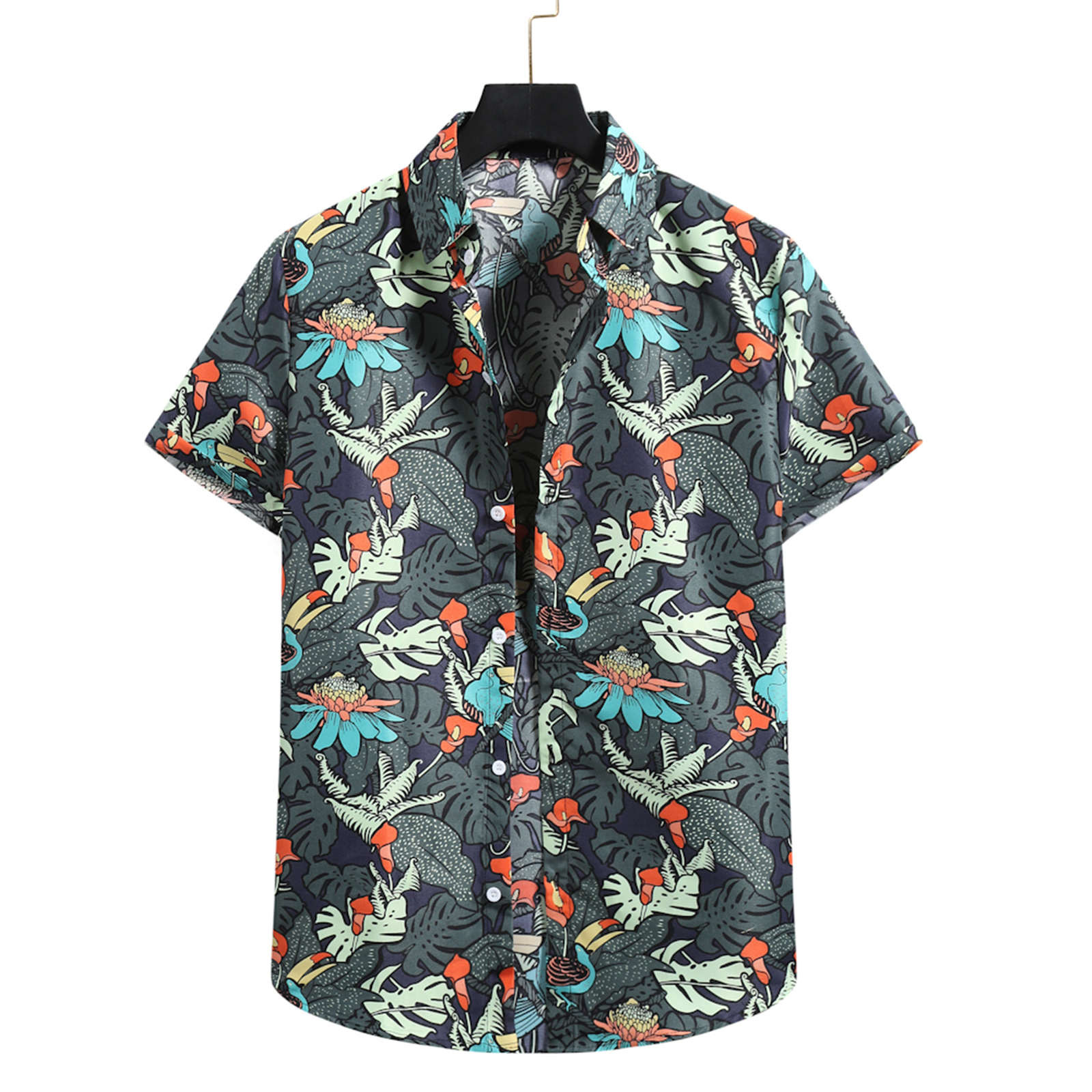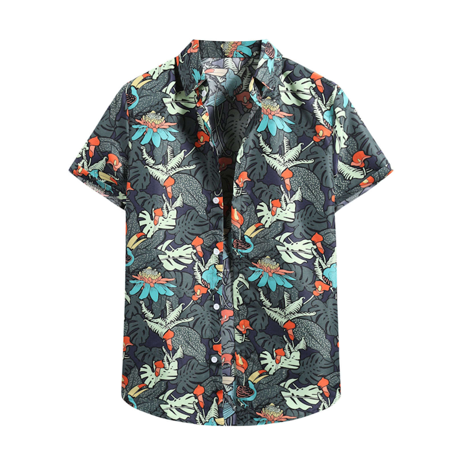 Мужской кардиган с коротким рукавом Гавайская пляжная Цветочная рубашка мужская водолазка