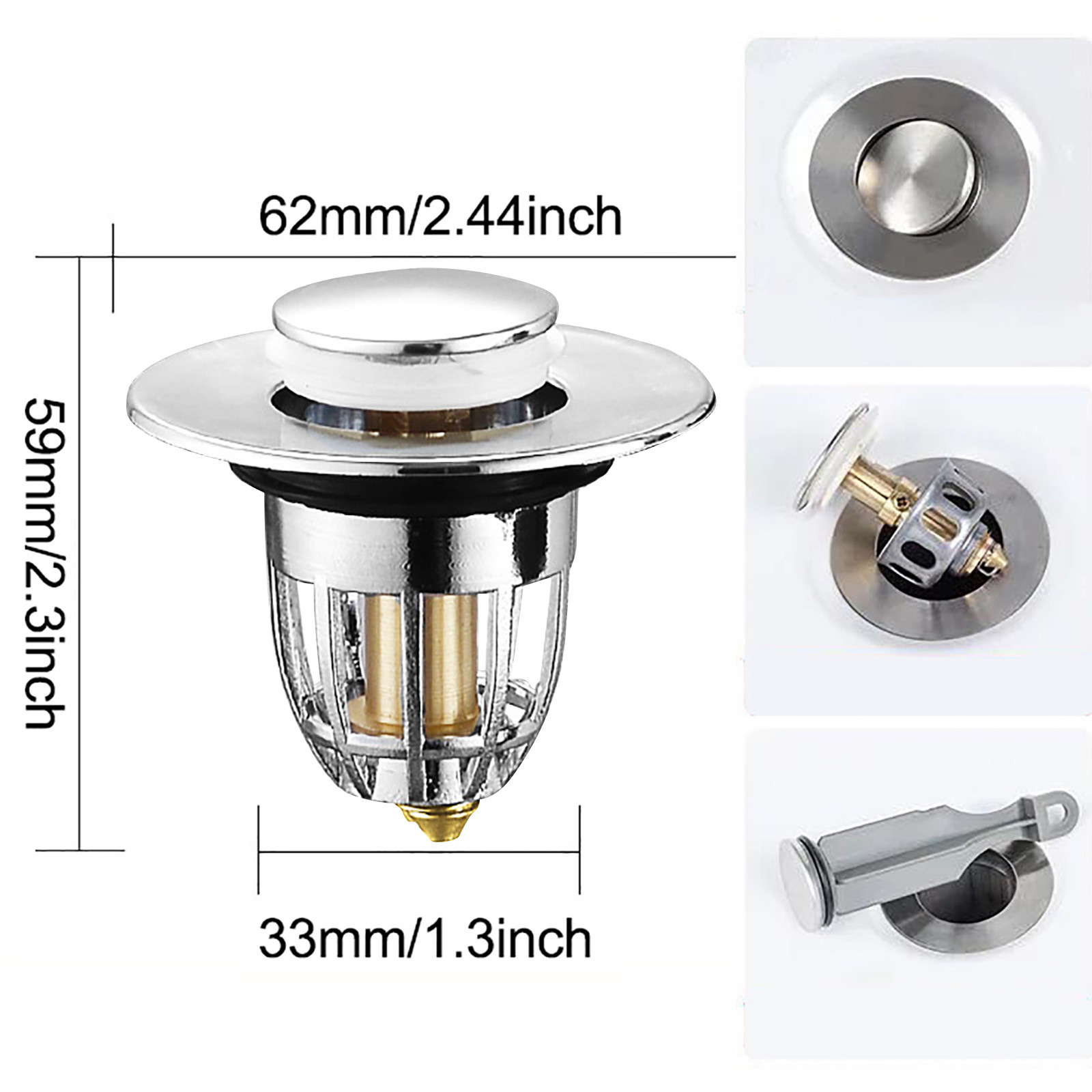 Обновленный Дизайн-пробка для раковины ванной комнаты более удобна и полезна, чем обычная стопор для раковины. Обновленная всплывающая сливная вилка для раковины имеет корзину с защитой от засорения внутри, которая может остановить канализацию от застревания волосков.