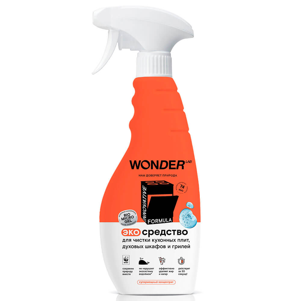 Супермощное, инновационное и безопасное для природы экосредство для чистки кухонных плит и духовых шкафов и грилей WONDER LAB 500мл разработано специально для чистки кухонных плит, духовых шкафов и грилей. Благодаря инновационной формуле BIOMICROGEL® средство всего за 30 секунд эффективно удаляет застарелый жир и нагар! При этом - экологичное средство полностью смывается водой, не оставляя плёнок, царапин и разводов. Удивительный состав экосредства безопасен для природы и септиков.Инновационная формула не нарушает экосистему водоемов, так как не содержит синтетических, агрессивных компонентов. Экосредство эффективно удаляет жир и нагар и действует всего за 30 секунд! Полностью смывается водой и препятсвует повторному загрязнению. Супермощный концентрат! Мы любим природу и заботимся об окружающей среде, поэтому WONDER LAB не поддерживает тестирование на животных, а уникальная формула BIOMICROGEL® разлагается в природе на 98% за 1 день. Упаковка наших продуктов производится из многоразового материала, поэтому сдайте флакон на переработку в пунктах приема пластика в вашем городе. Экосредство безопасно для септиков! Сохраним природу вместе!Особенности:Разработано специально для быстрого удаления застывшего жира и нагара. Эффективно устраняет пригоревший жир и остатки пищи с металлических и стеклокерамических поверхностей. Описание Для быстрого эффекта при сильных загрязнениях стоит нанести средство на пригоревшую поверхность при помощи губки, чтобы образовалась активная пена, и оставить на несколько минут, после чего тщательно промыть водой. Состав Не содержит отдушек, агрессивных ПАВ. Без абразивных частиц. Полностью смывается водой. Технология Высокая эффективность экосредства основана на инновационной технологии BIOMICROGEL®, разработанной на основе растительных компонентов: крахмала, пектина и целлюлозы, которые получают из натуральных фруктов и овощей.BIOMICROGEL® разлагается в окружающей среде на 98 % за 24 часа, поэтому безопасен для всех членов семьи, природы и септиков. Мировая инновация! Технология запатентована в 74 странах.Состав:Вода >30%, каустическая сода 5-15%, микрогели полисахаридов (Biomicrogel®)