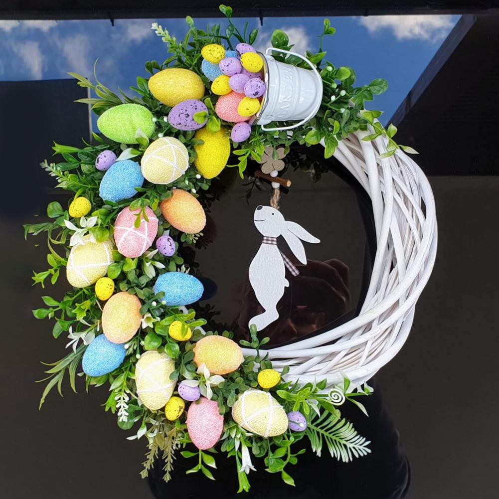 Принята искусственный цветок, красивое декоративное украшение "Кролик" и яркий цвет украшение пасхальные яйца, искусственный венок может использоваться в качестве красивый домашний декор, чтобы добавить больше веселый ссылка фестиваль атмосферу. И, конечно, это оставит вас глубоко, когда вы повесите на переднюю дверь.