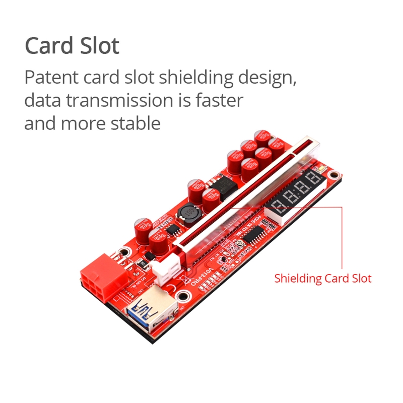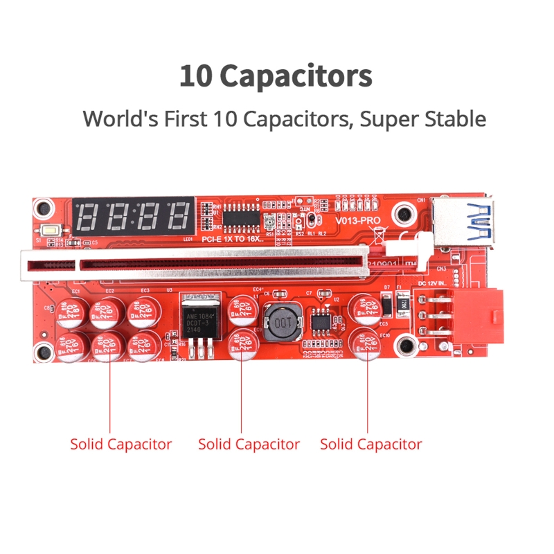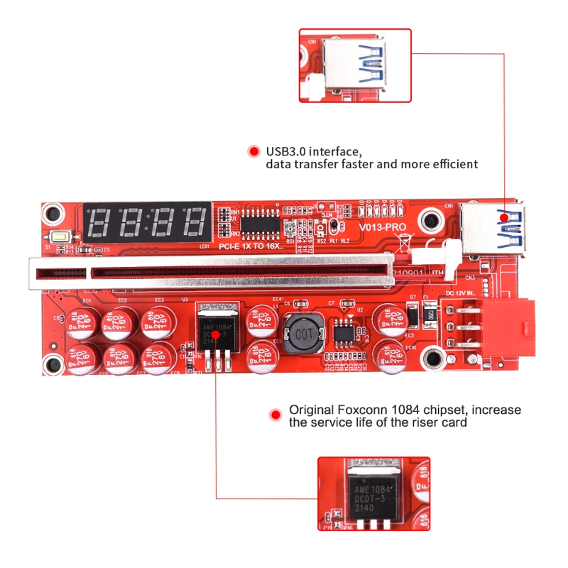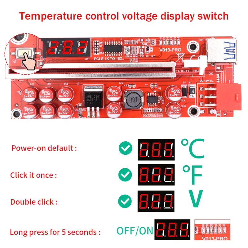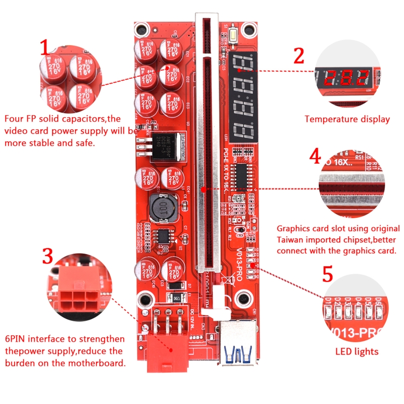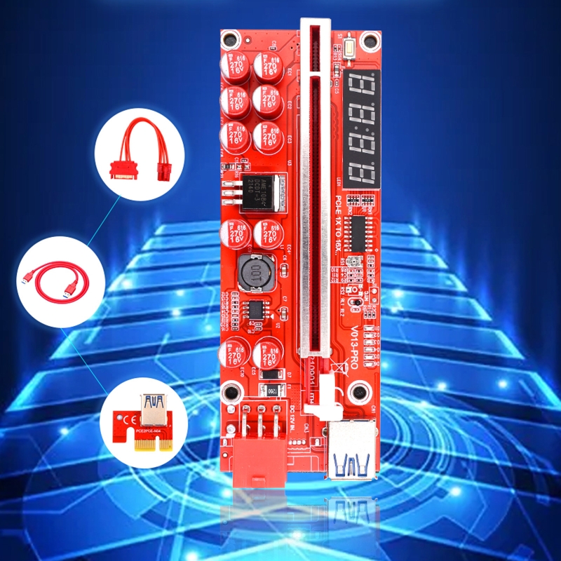 Видеокарта PCI-E Riser VER013 Pro GPU PCIE X1 to X16 USB3.0 6Pin кабель с дисплеем температуры для майнинга биткойнов