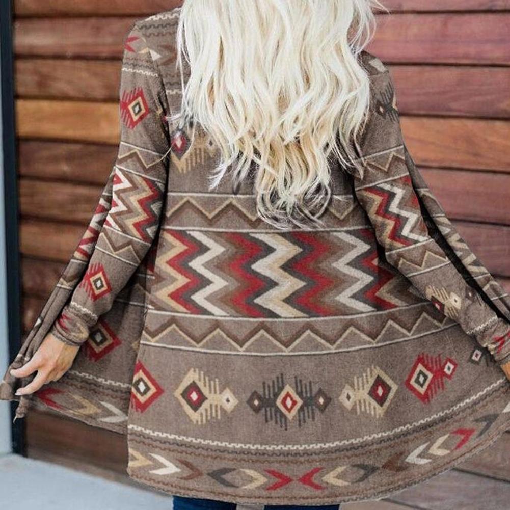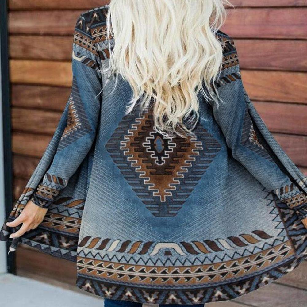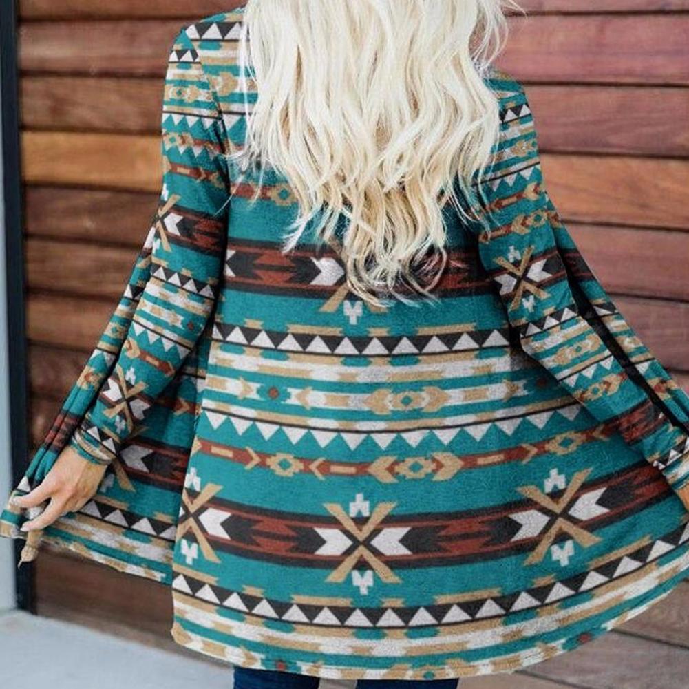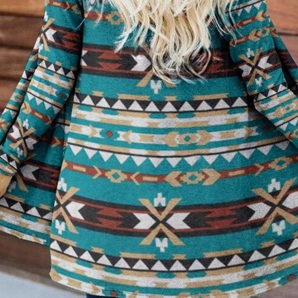 Ацтекский этнический принт Ретро Западный Повседневный Ацтекский Принт Рубашка с длинным рукавом Кардиган Топ пальто Зимний женский новый кардиган пальто