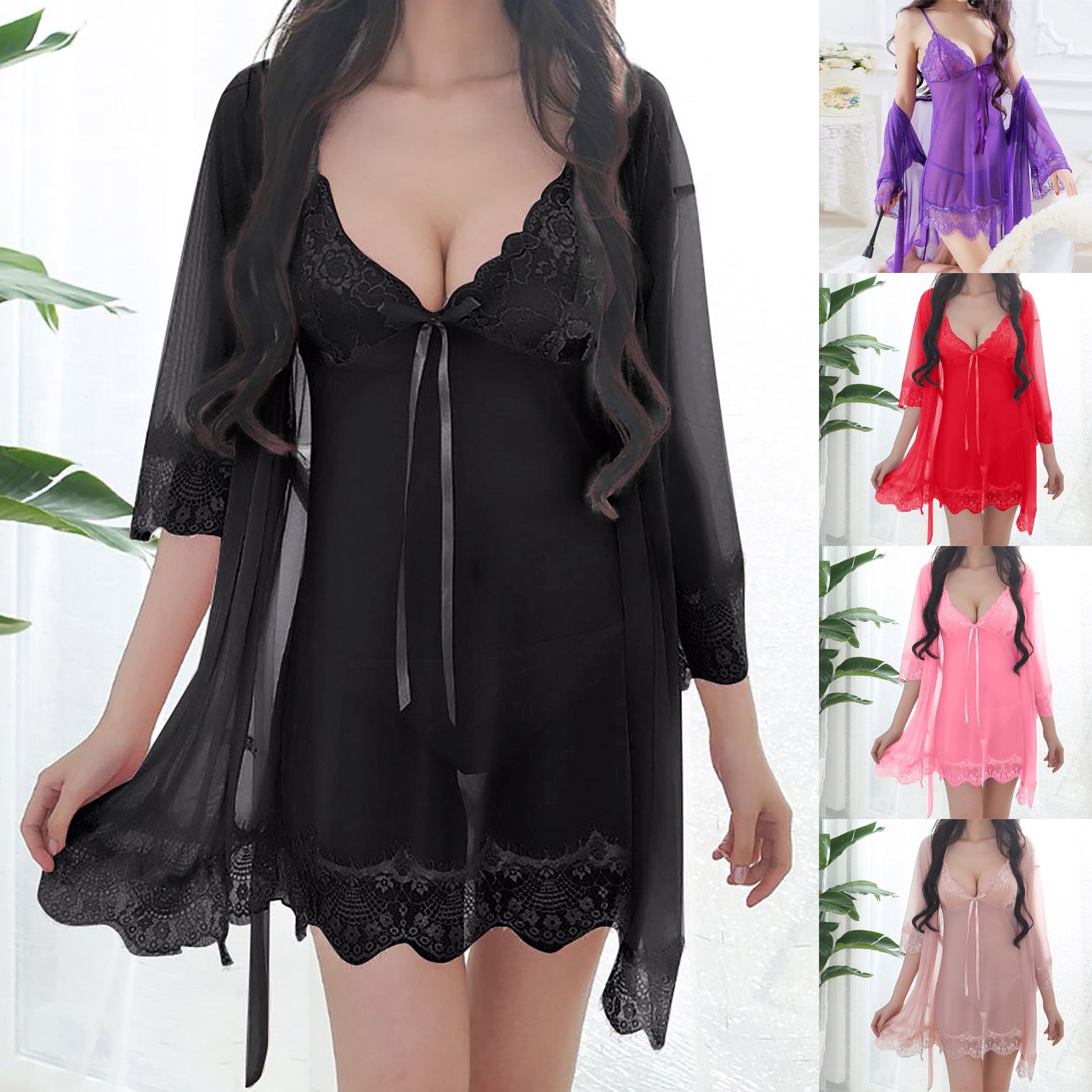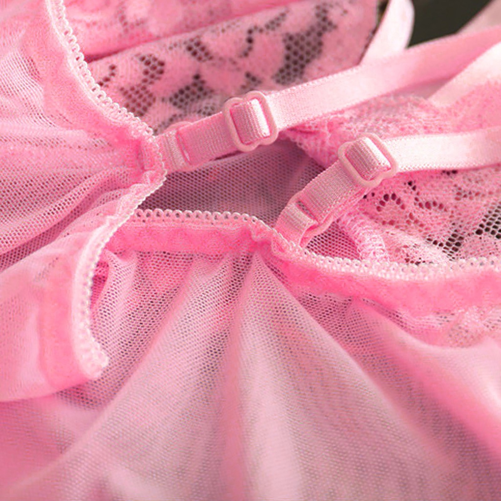 Беспроводная Пижама без оправы, кружевная ночная рубашка, шелковое нижнее белье, комплект ночного белья на подтяжках