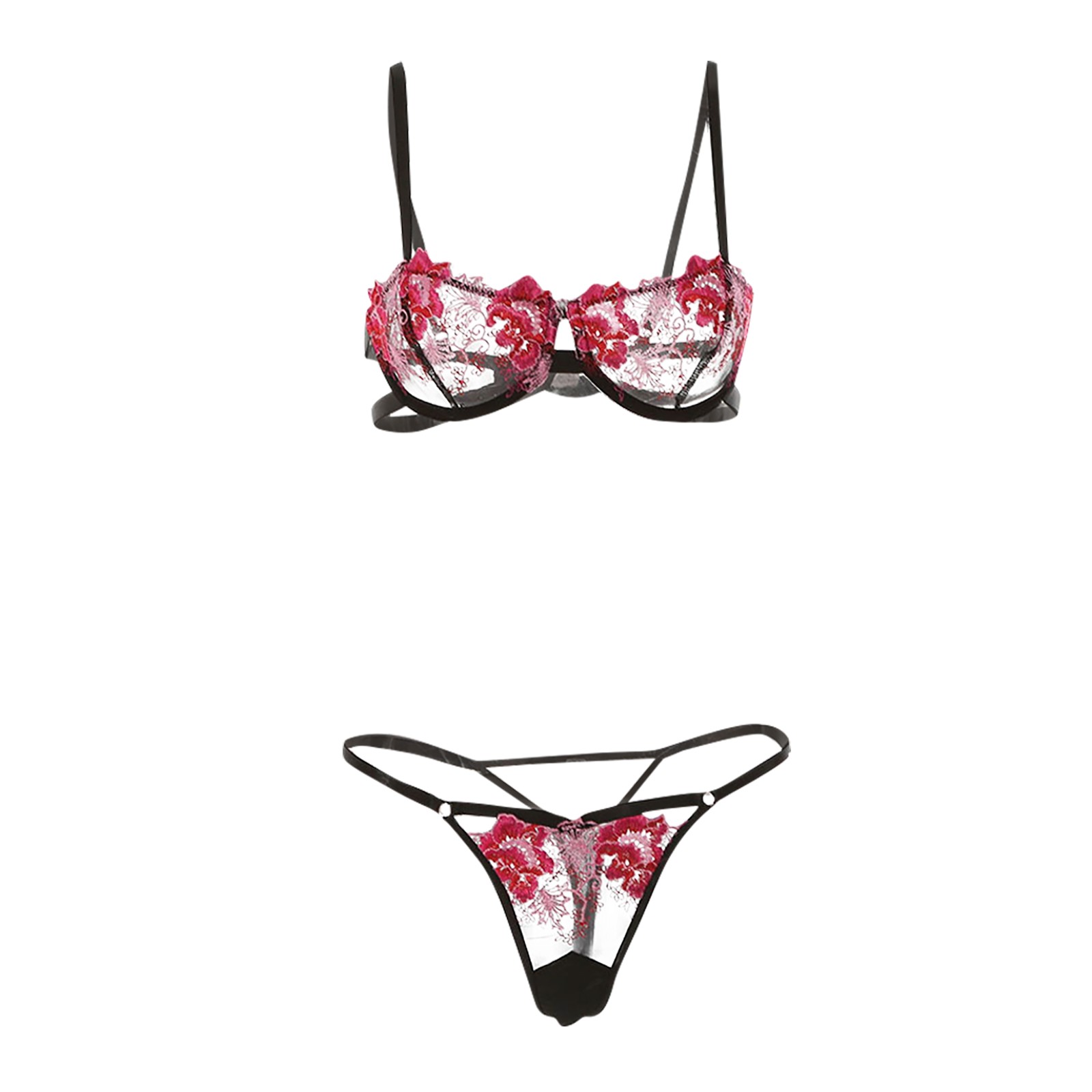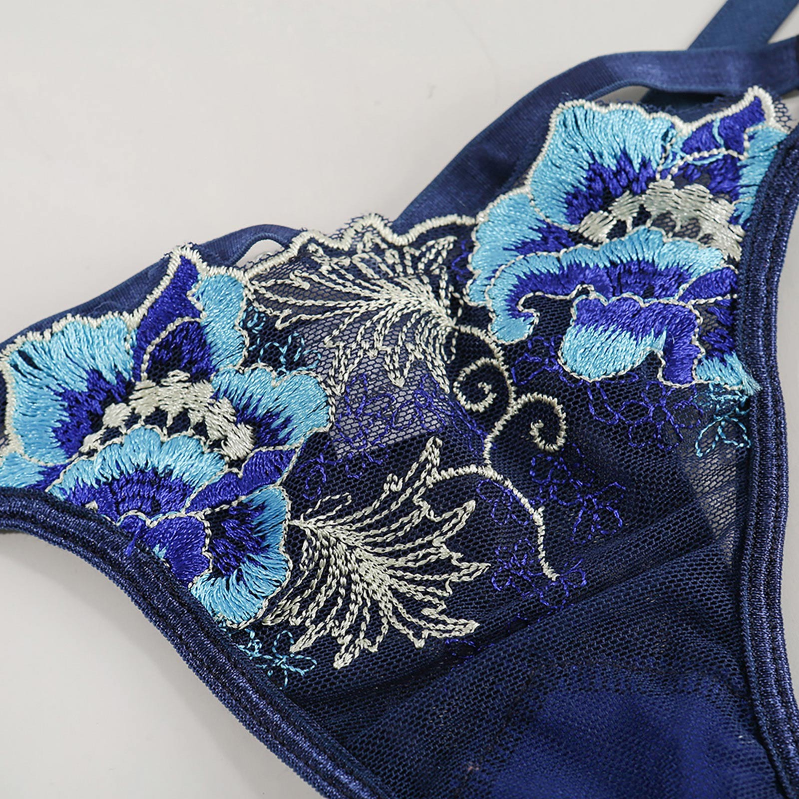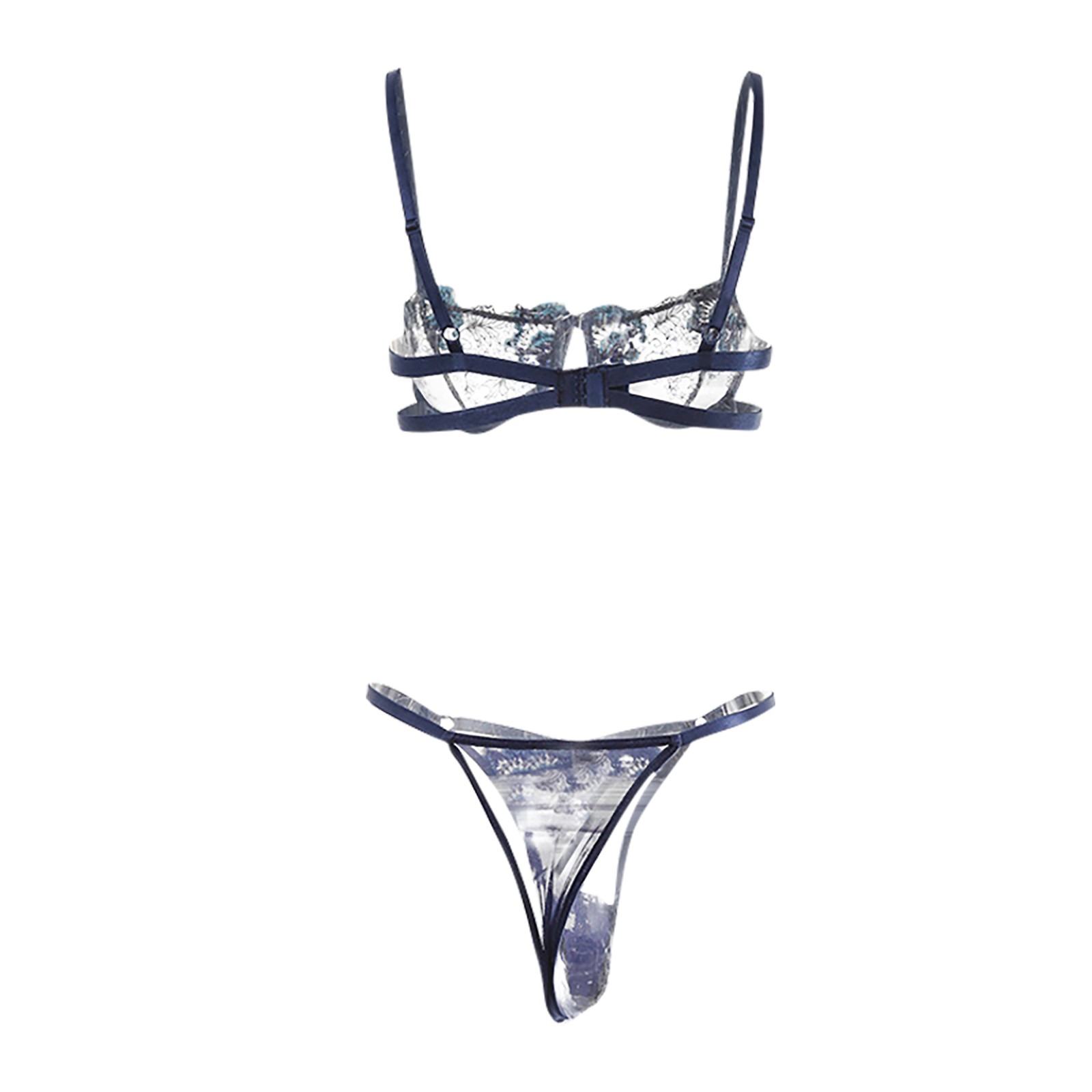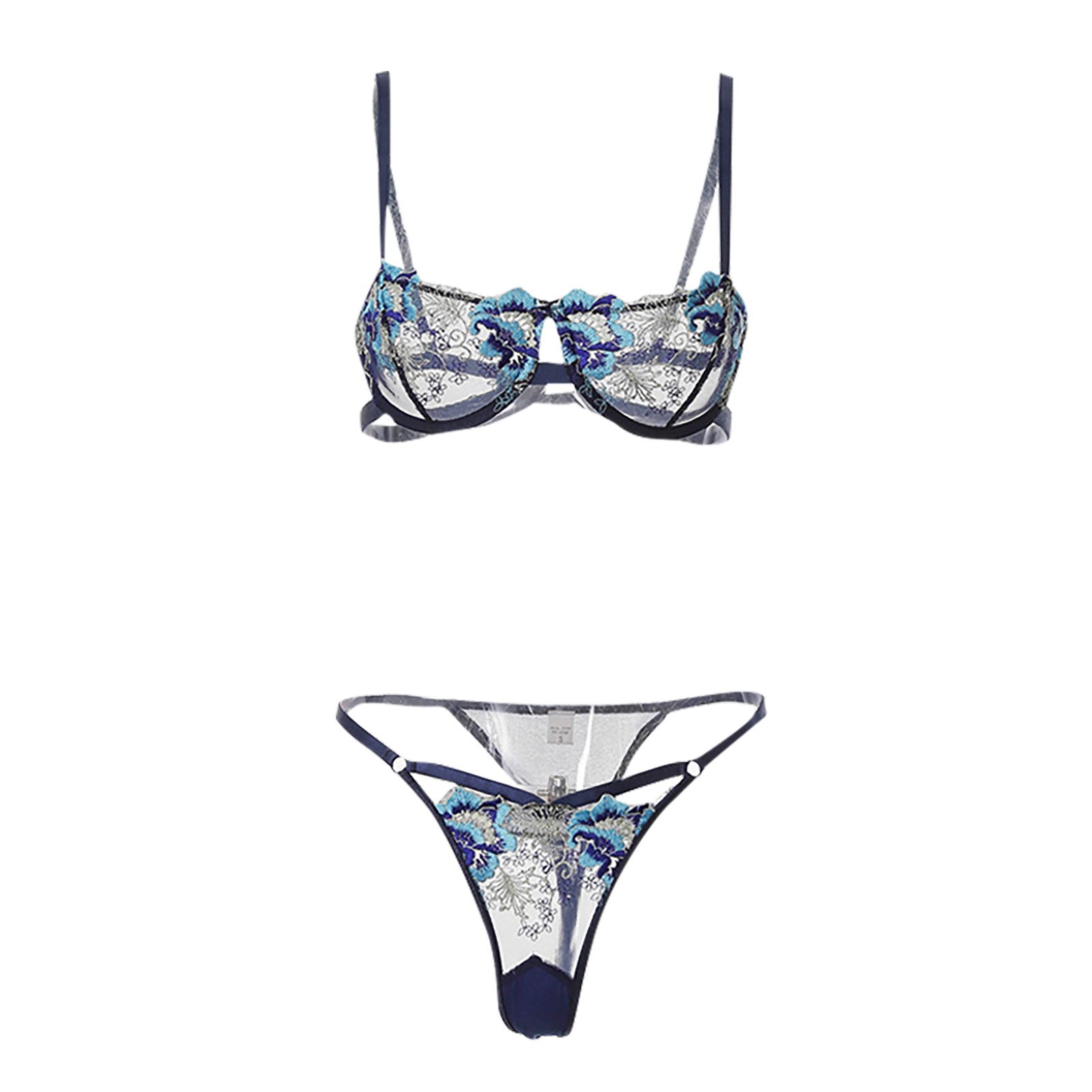 Women's Sexy Embroidery Lace Hollow See-through Underwear Two-piece Suit