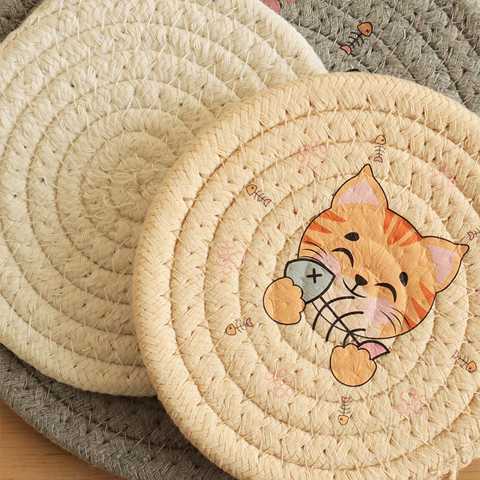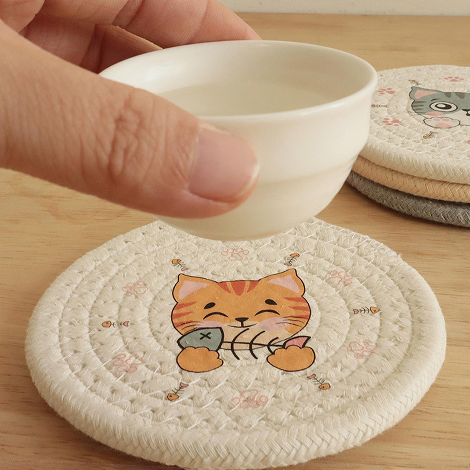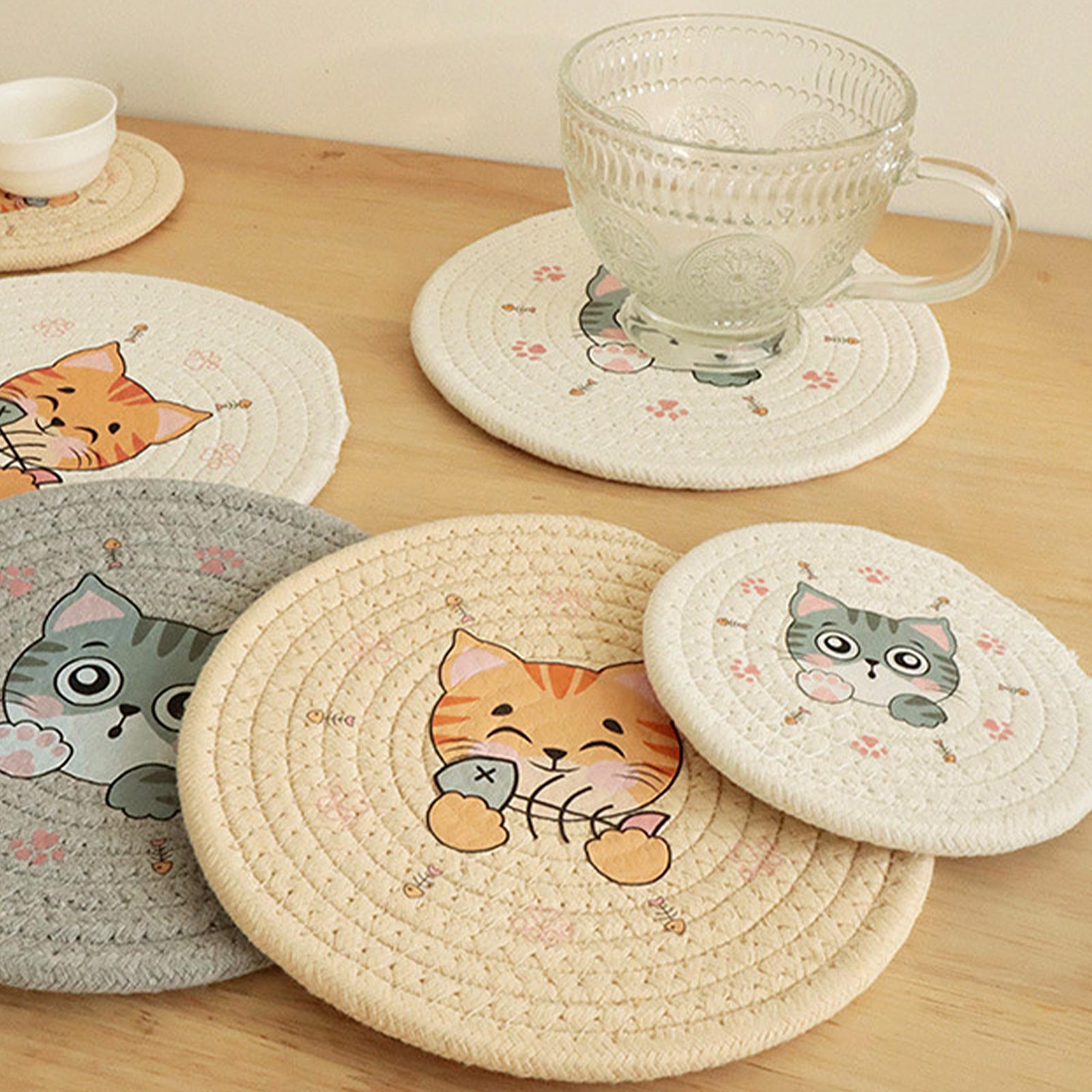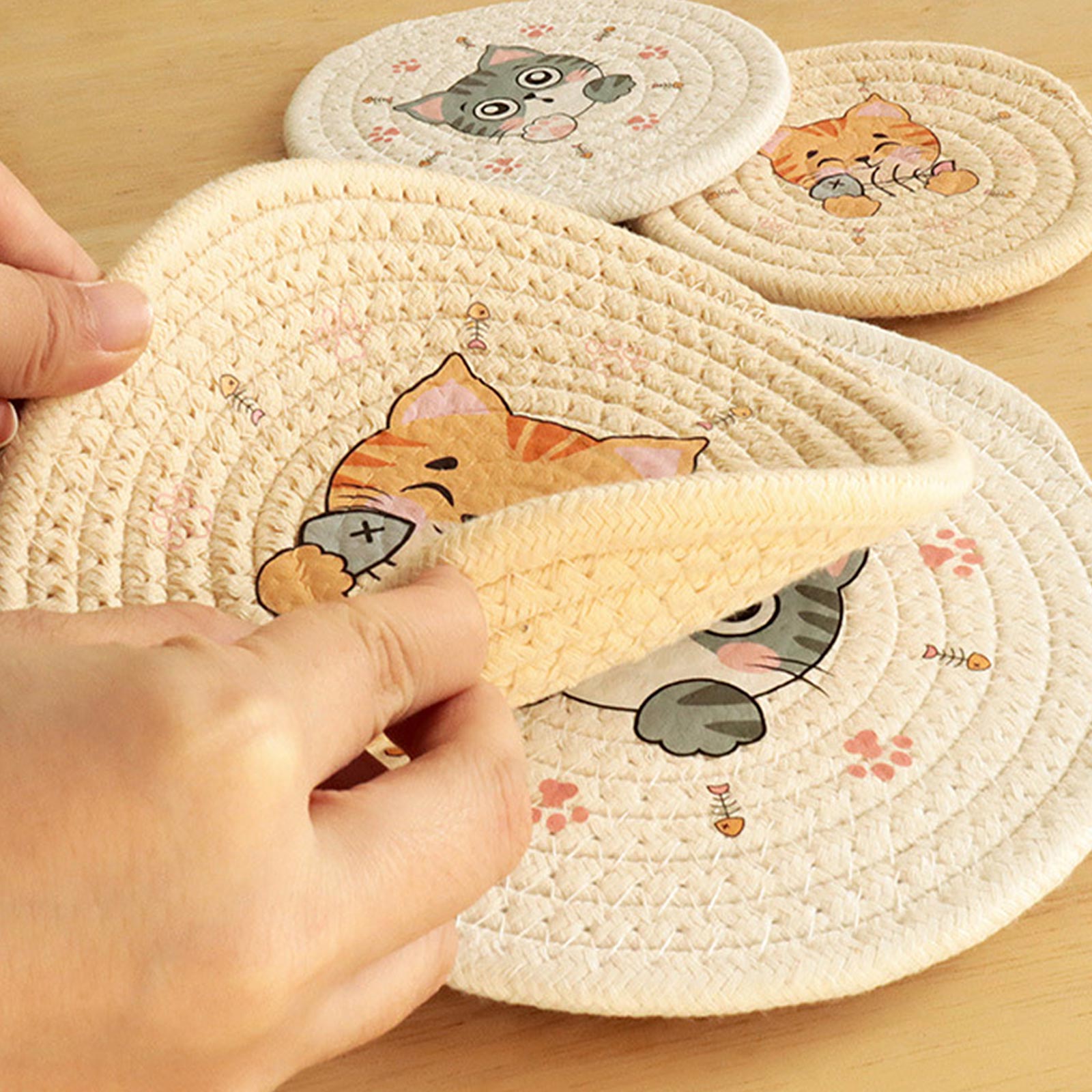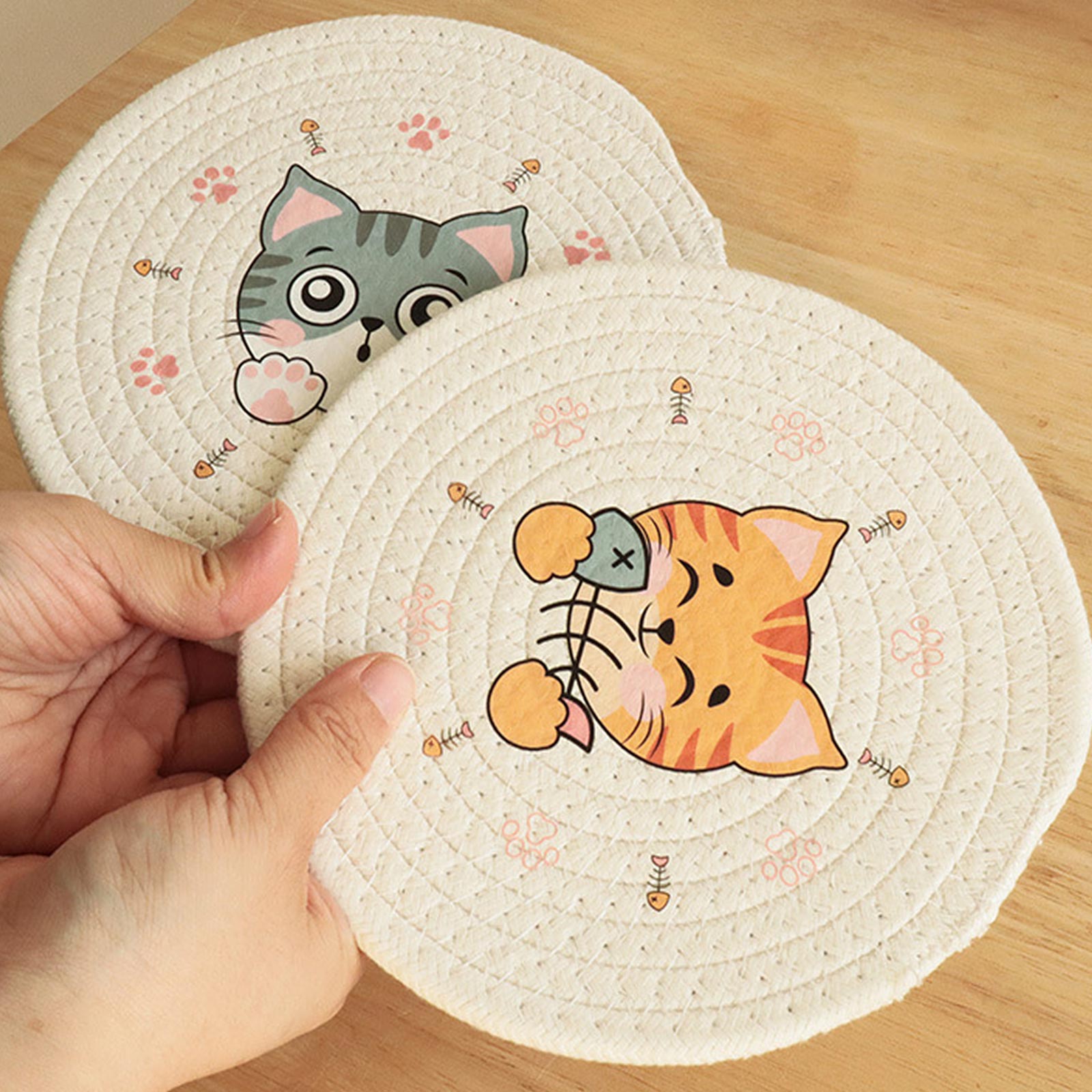 4. Милая форма кошки, красивая и универсальная, Салфетки достаточно толстые, чтобы изолировать и защитить ваш обеденный стол.