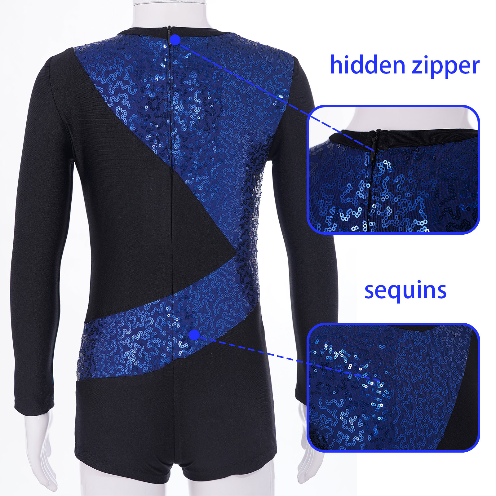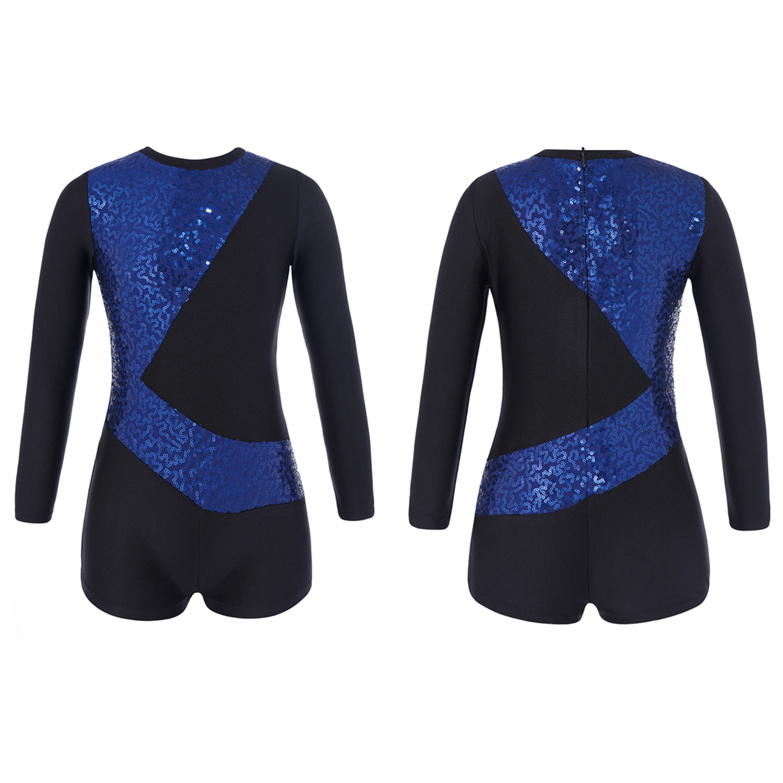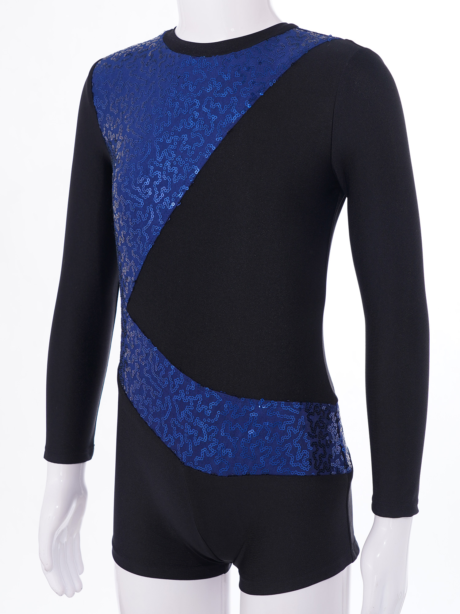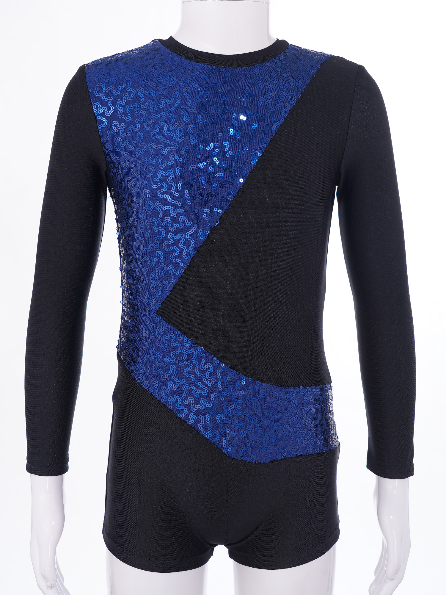 Купальник с длинными рукавами и круглым вырезом, украшенный блестящими блестками, модный дизайн в стиле пэчворк.
