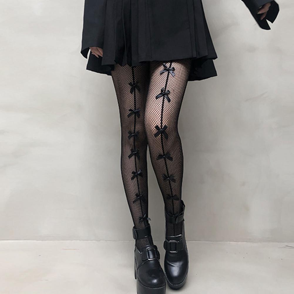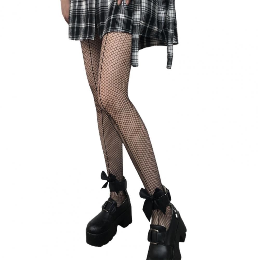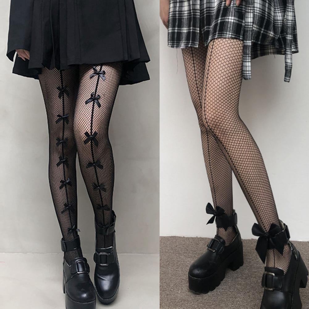 Женские чулки, сетчатые черные эластичные колготки в японском стиле на Рождество