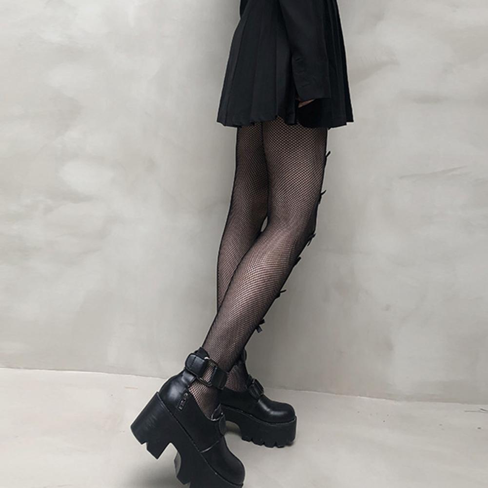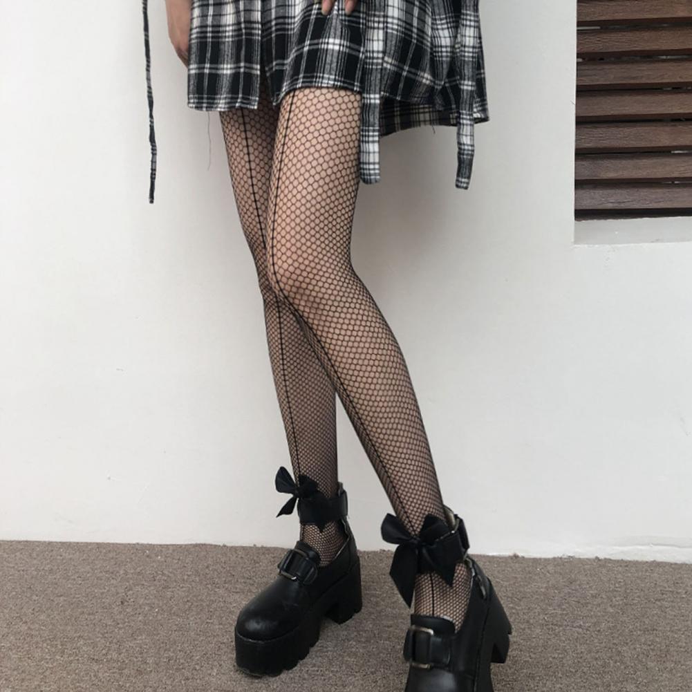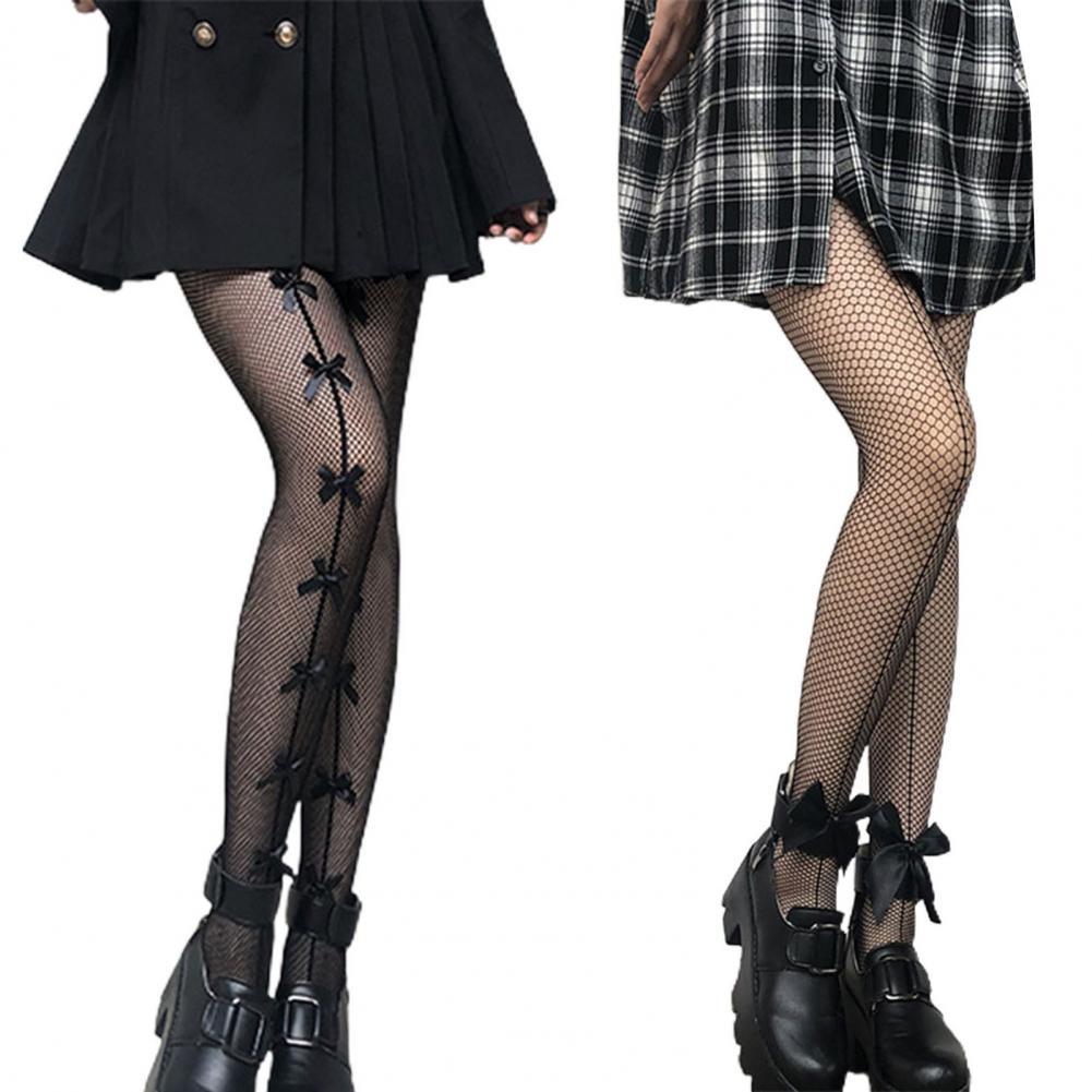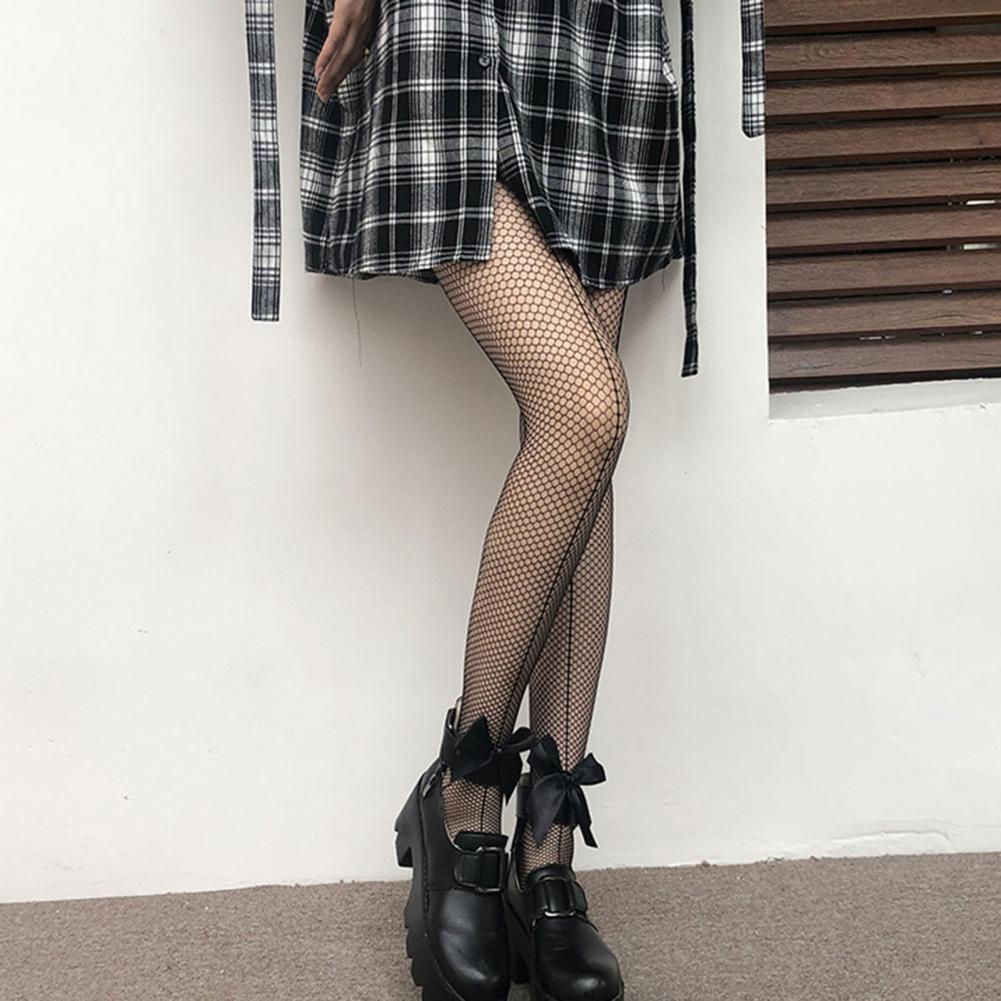 Женские чулки, сетчатые черные эластичные колготки в японском стиле на Рождество