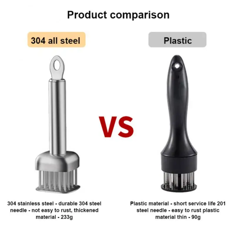 До свидания, жевательное жесткое резиновое мясо-Ультра острые игольчатые лезвия из нержавеющей стали спадают самые жесткие мясные порезы, чтобы вы могли насладиться вкусными аппетитными и вкусными профессиональными блюдами за небольшую часть стоимости. Превратите жесткие кусочки мяса в растопку во рту за считанные секунды. Идеально подходит для всех мясных порезов, сохраняя вкус и удовольствие для вас и всех ваших гостей каждый раз!