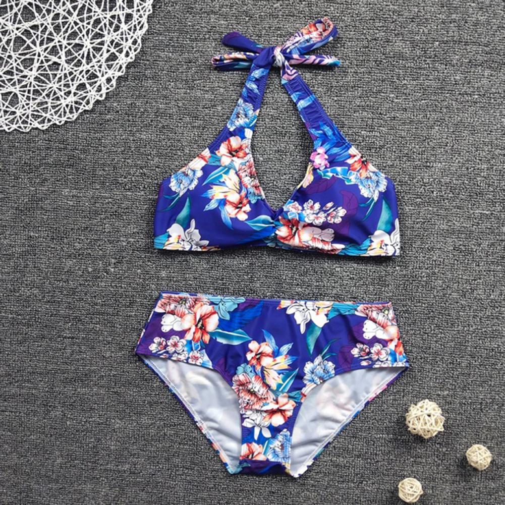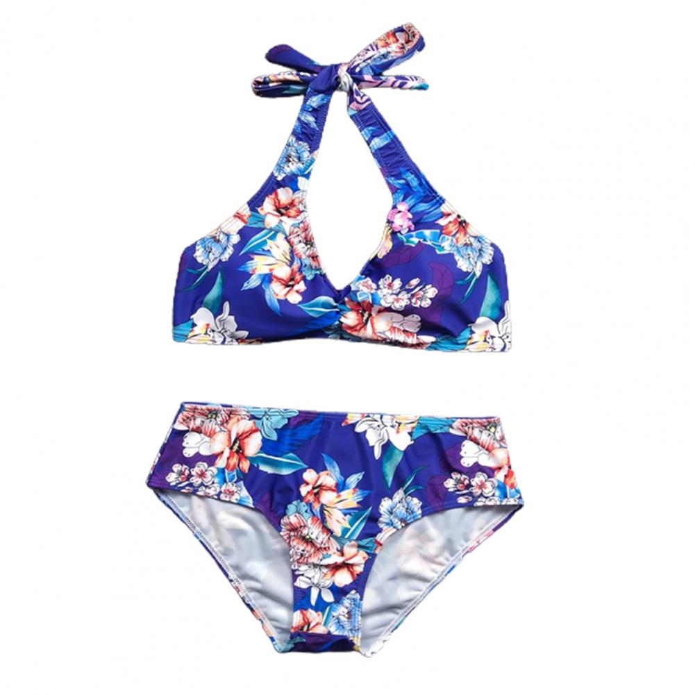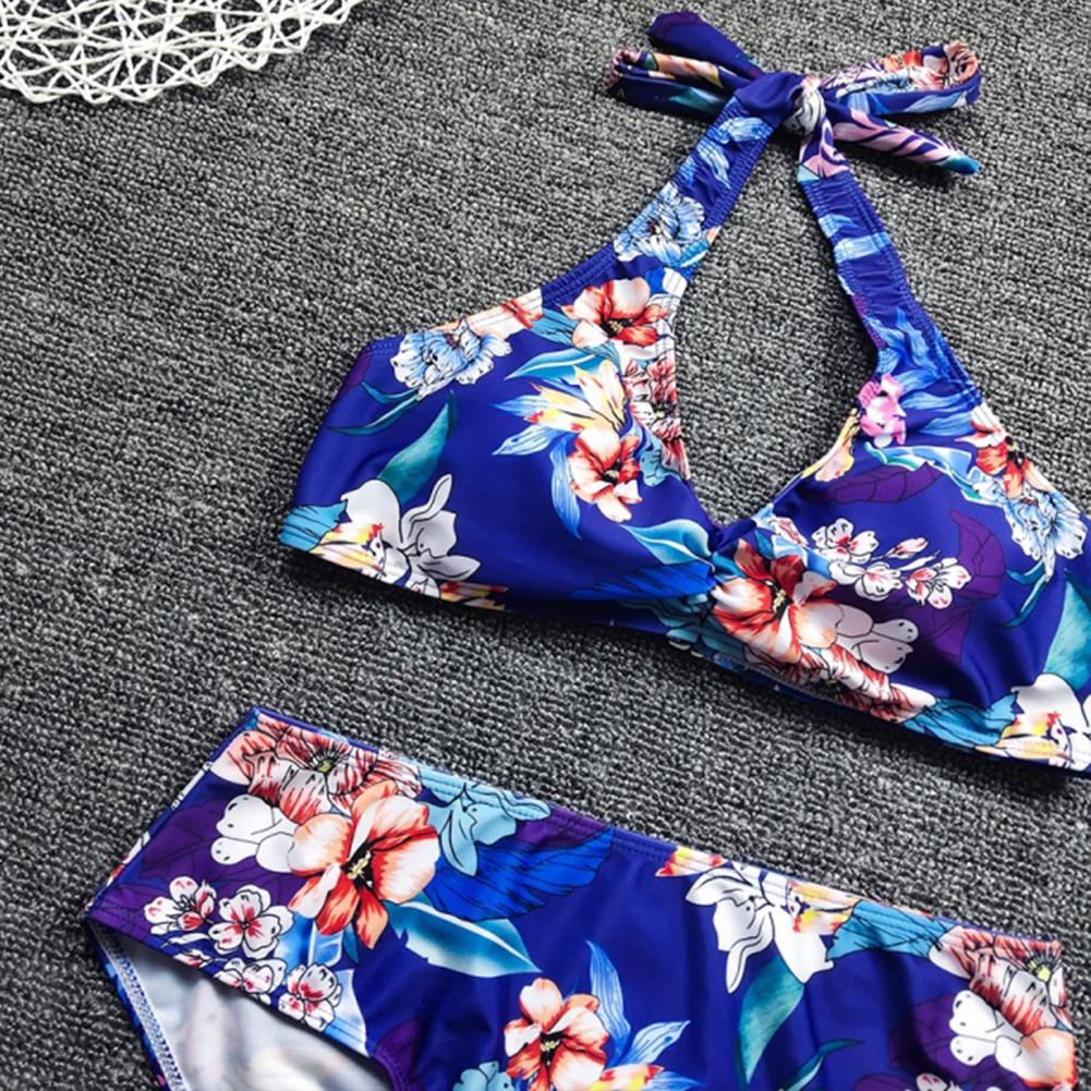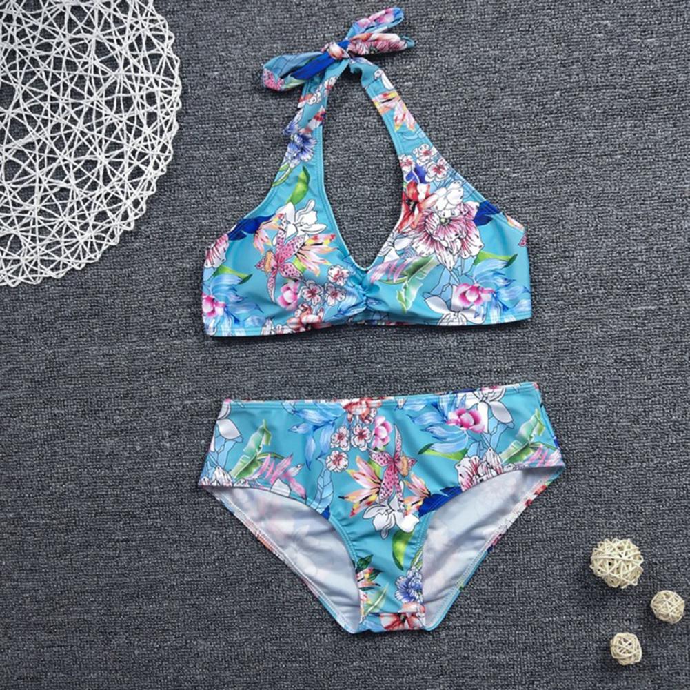 Женский комплект бикини с бюстгальтером с лямкой на шее и трусиками с цветочным принтом, быстро сохнет и свежий, что позволяет вам наслаждаться приятным праздником.